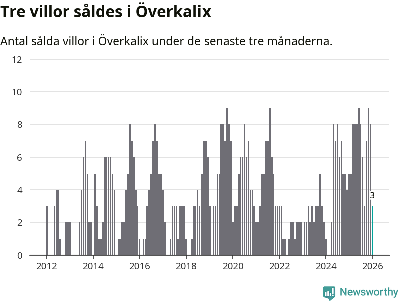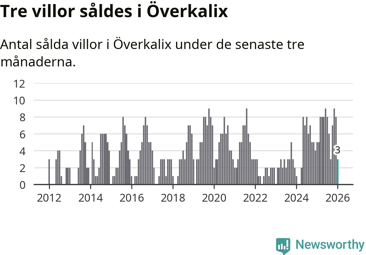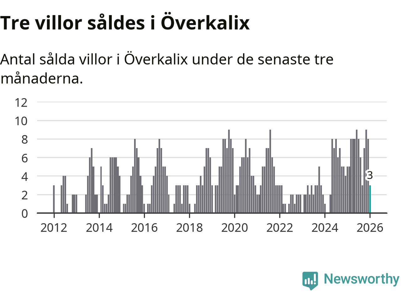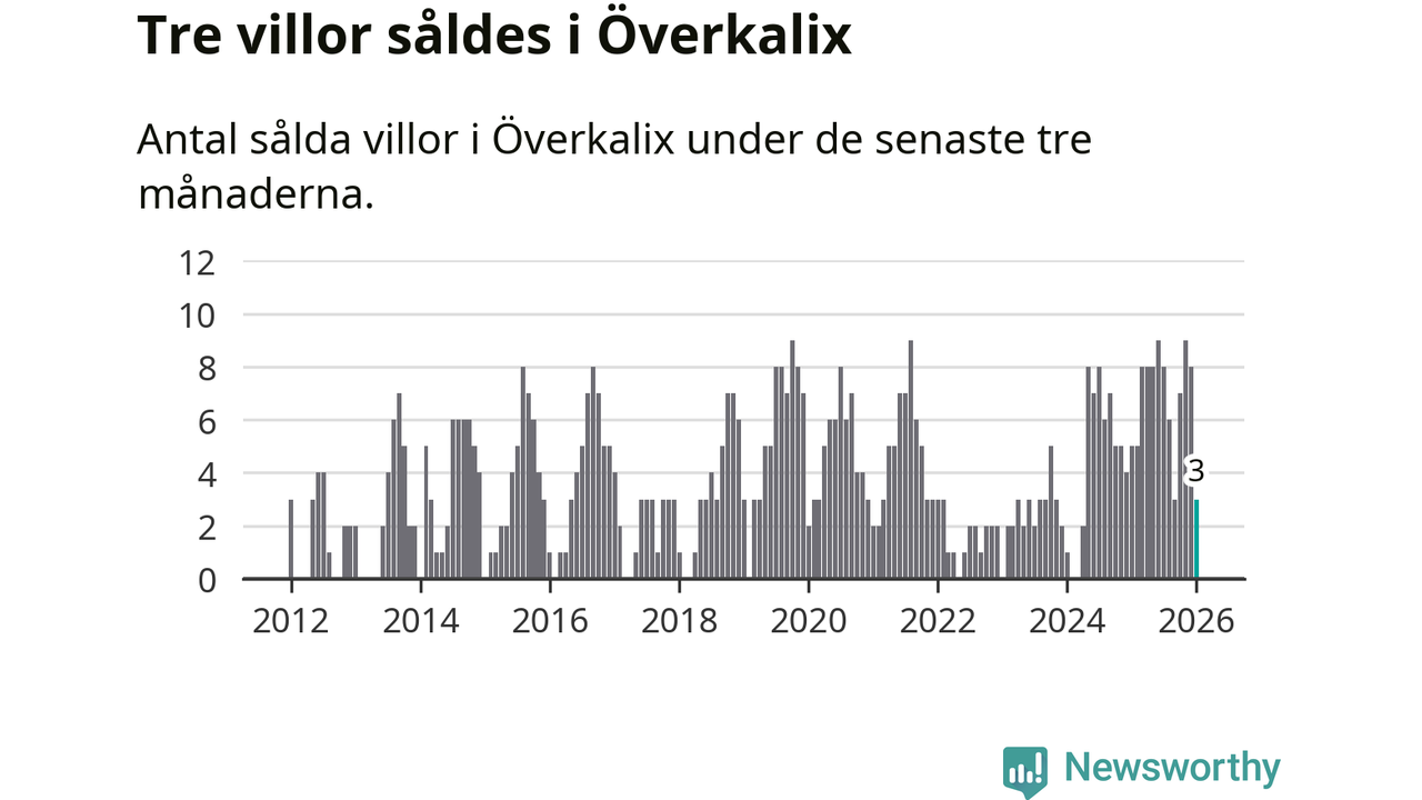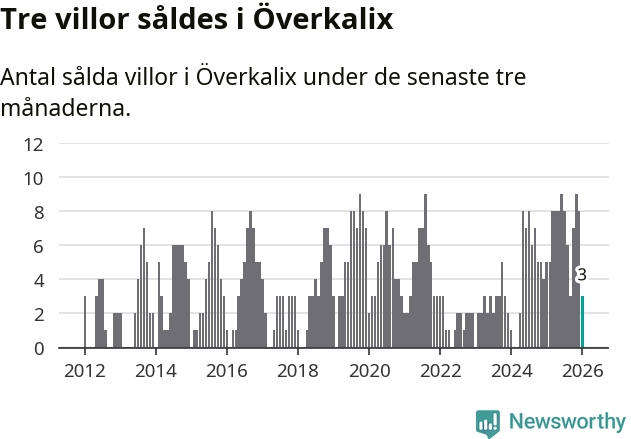 Mellan november och januari gjordes sammanlagt tre affärer med villor i Överkalix kommun. Det kan jämföras med fem vid motsvarande tid i fjol.