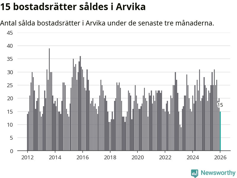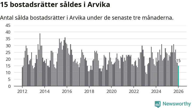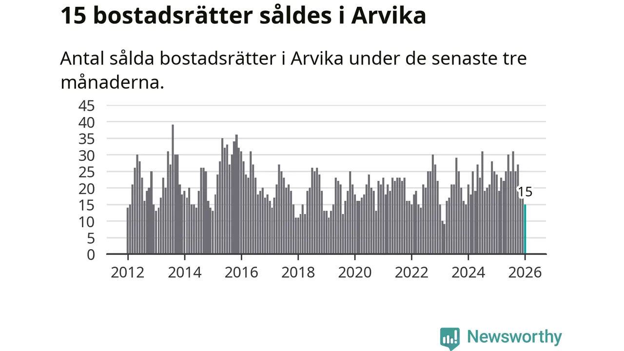 Mellan november och januari gjordes sammanlagt 15 affärer med bostadsrätter i Arvika kommun. Det kan jämföras med 24 vid motsvarande tid i fjol.
