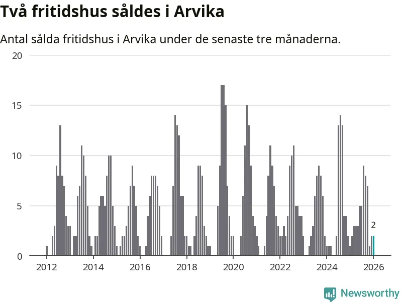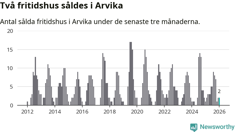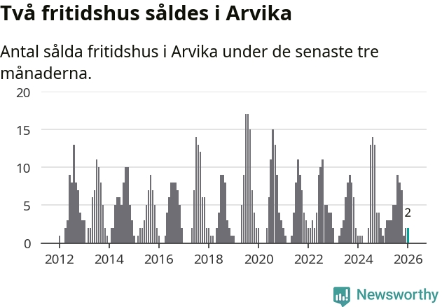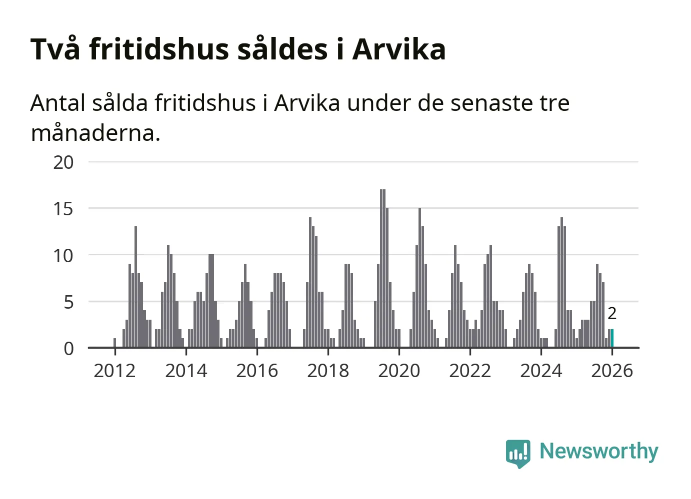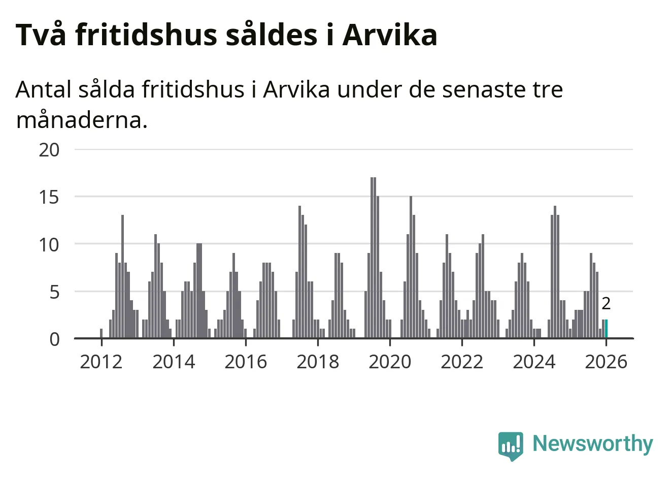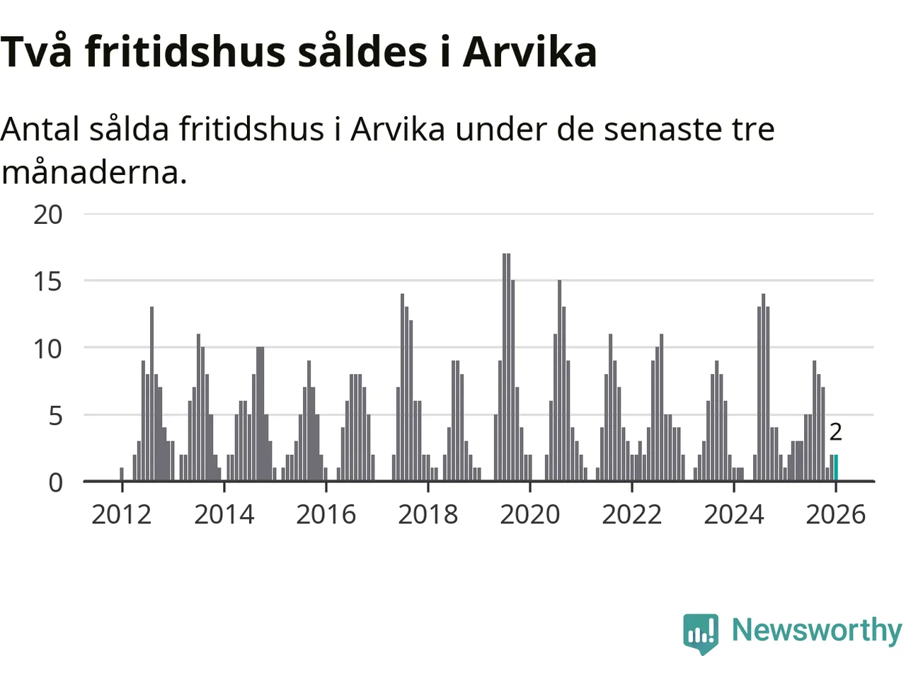 Mellan november och januari gjordes sammanlagt två affärer med fritidshus i Arvika kommun. Det kan jämföras med ett vid motsvarande tid i fjol.