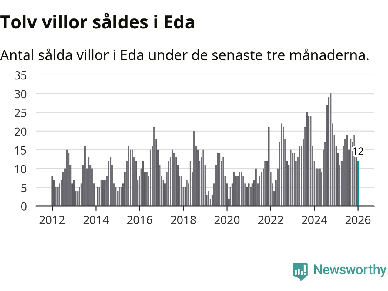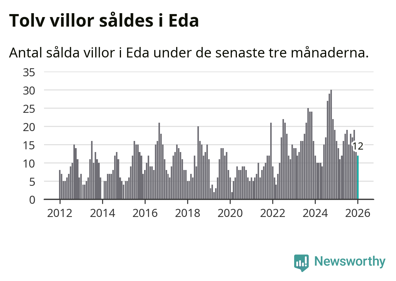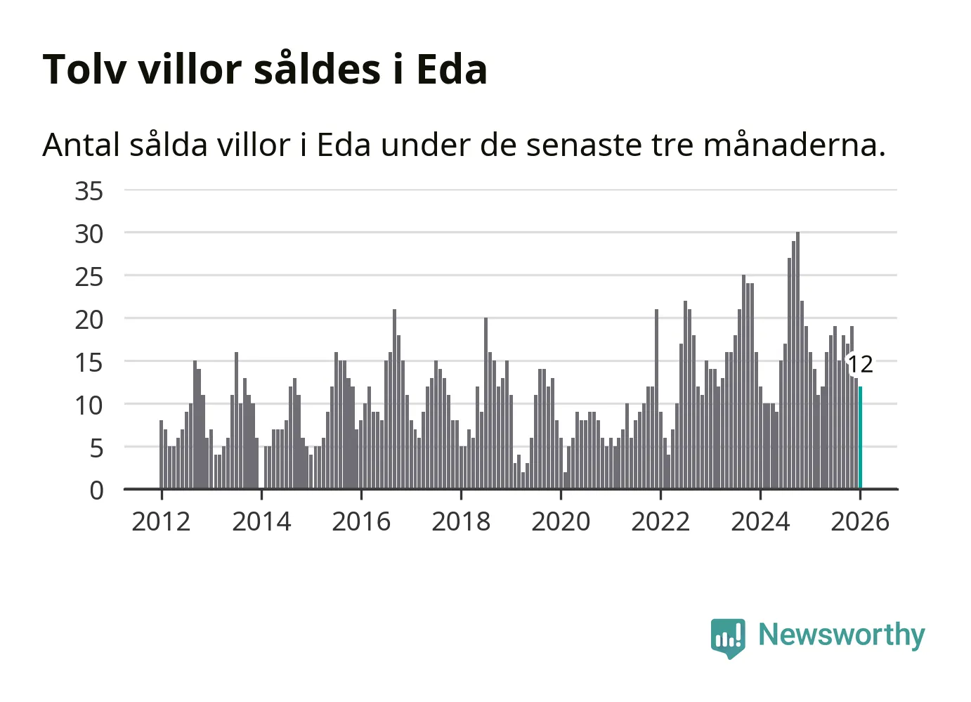 Mellan november och januari gjordes sammanlagt tolv affärer med villor i Eda kommun. Det kan jämföras med 16 vid motsvarande tid i fjol.