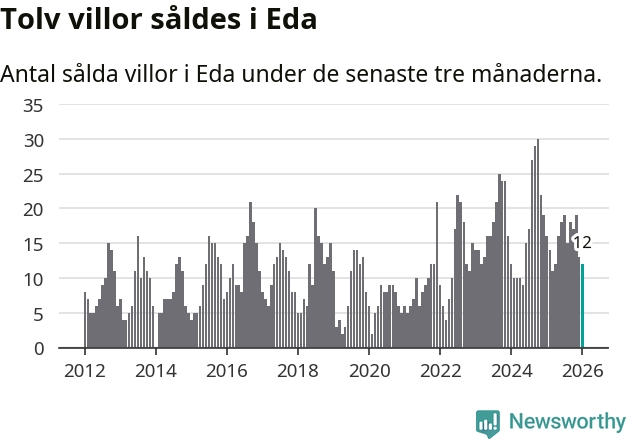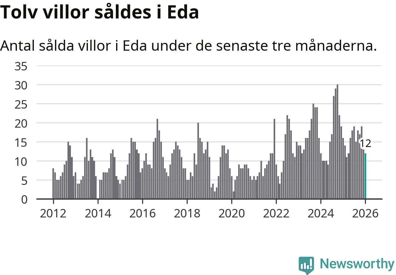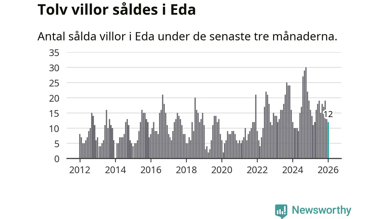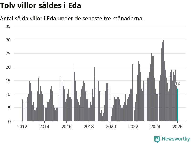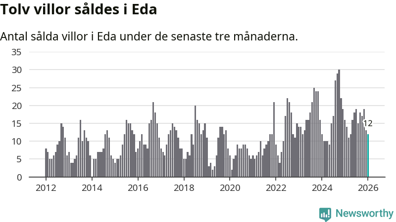 Mellan november och januari gjordes sammanlagt tolv affärer med villor i Eda kommun. Det kan jämföras med 16 vid motsvarande tid i fjol.