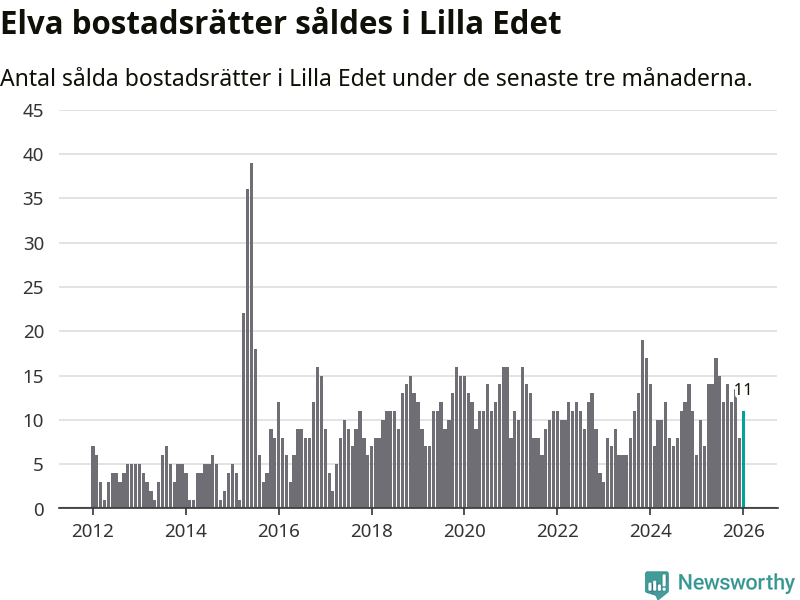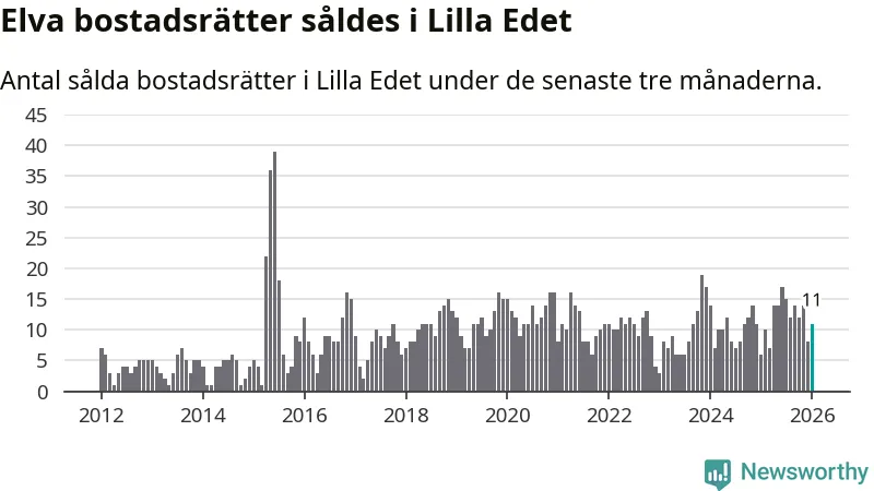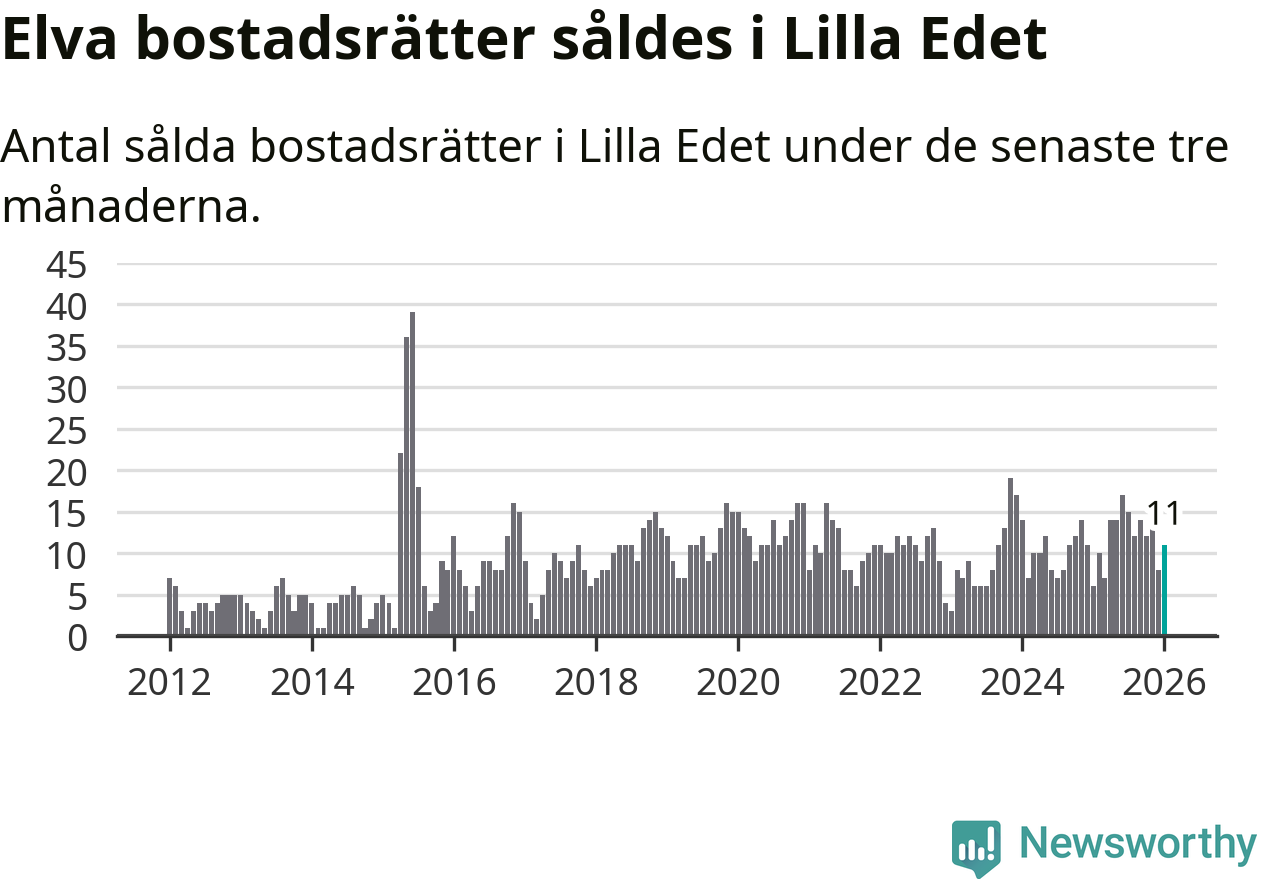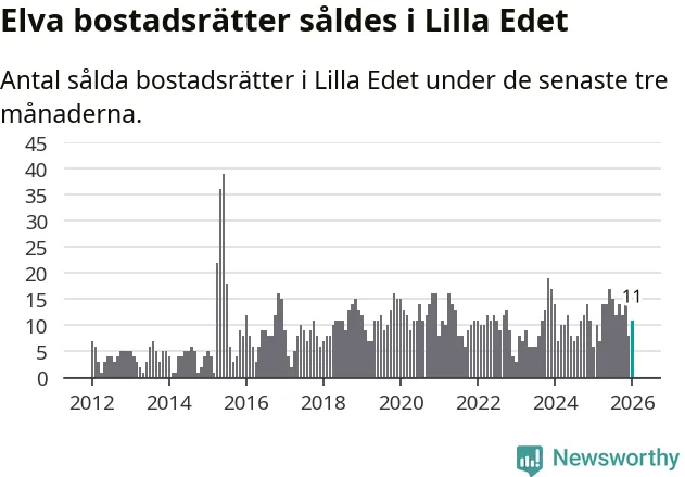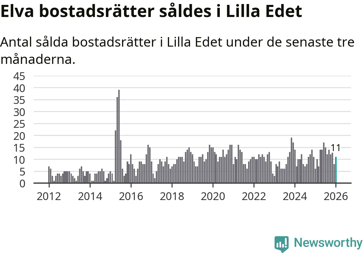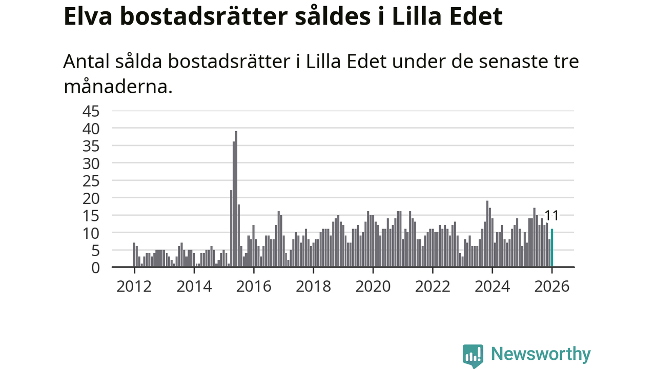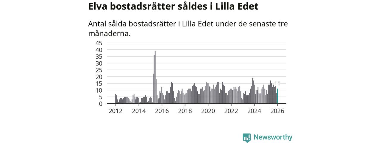 Mellan november och januari gjordes sammanlagt elva affärer med bostadsrätter i Lilla Edets kommun. Det kan jämföras med sex vid motsvarande tid i fjol.