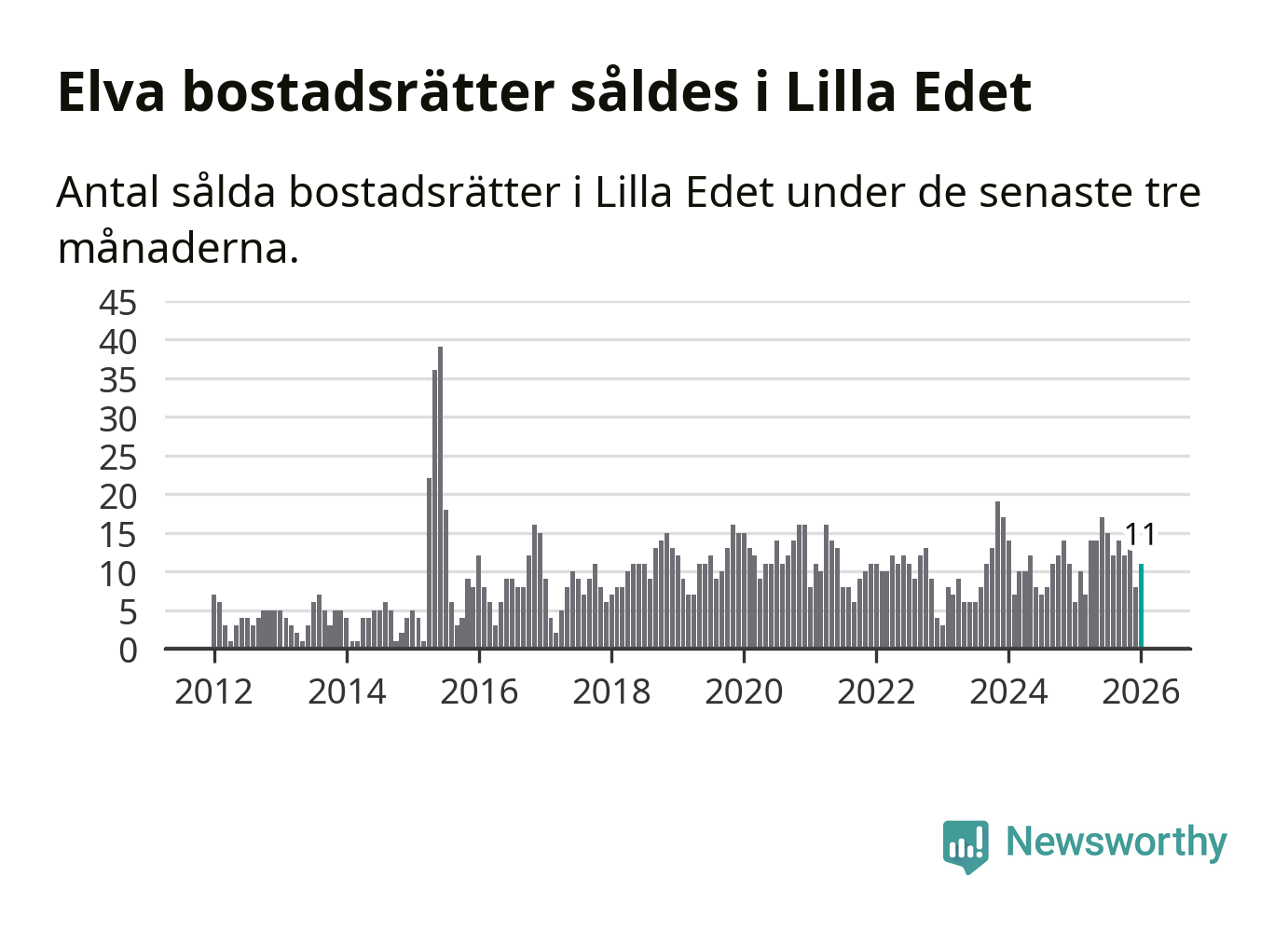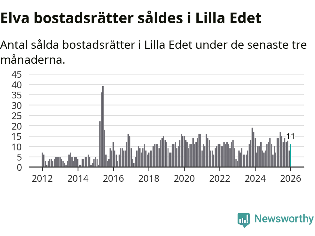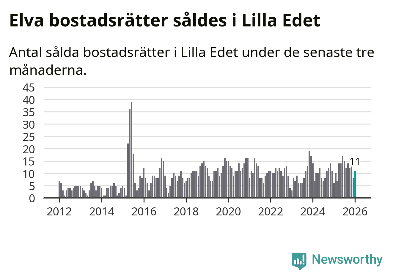 Graf: Antal sålda bostadsrätter i Lilla Edets kommun