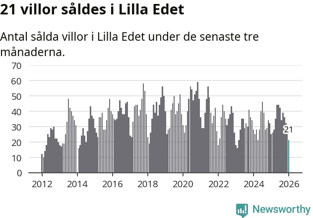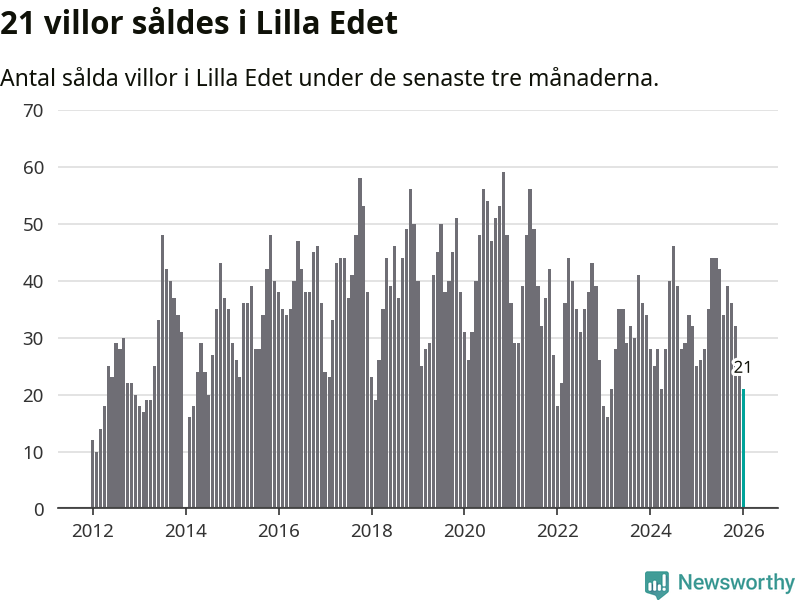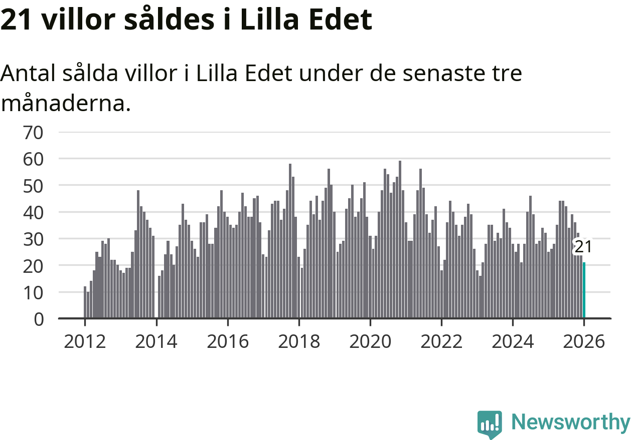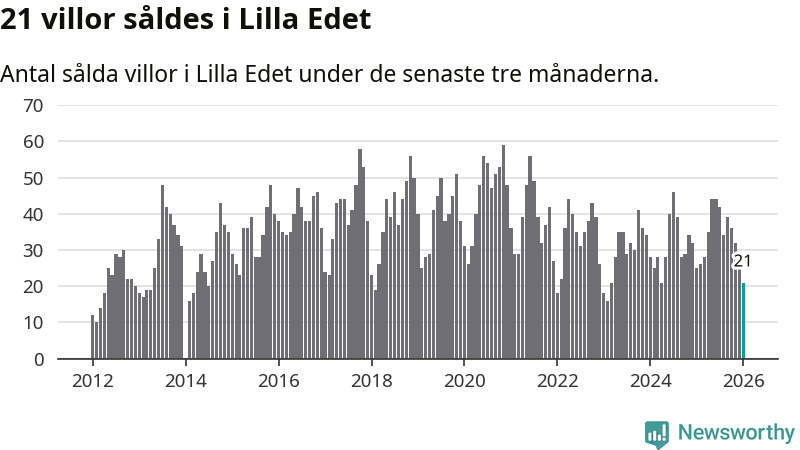 Mellan november och januari gjordes sammanlagt 21 affärer med villor i Lilla Edets kommun. Det kan jämföras med 25 vid motsvarande tid i fjol.