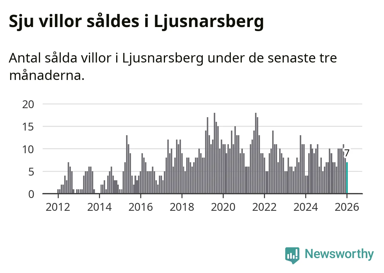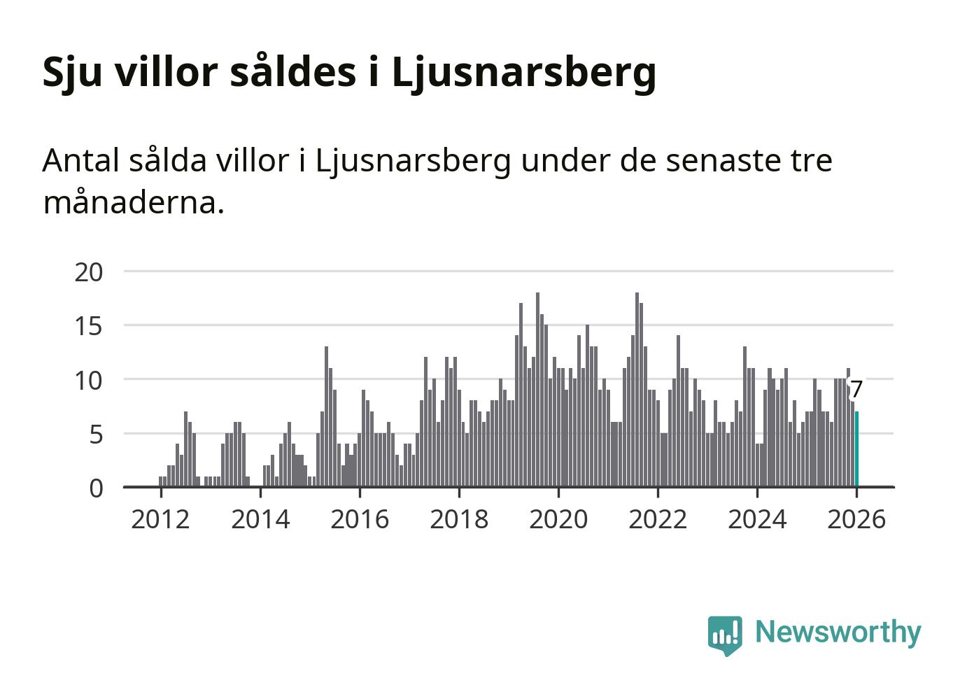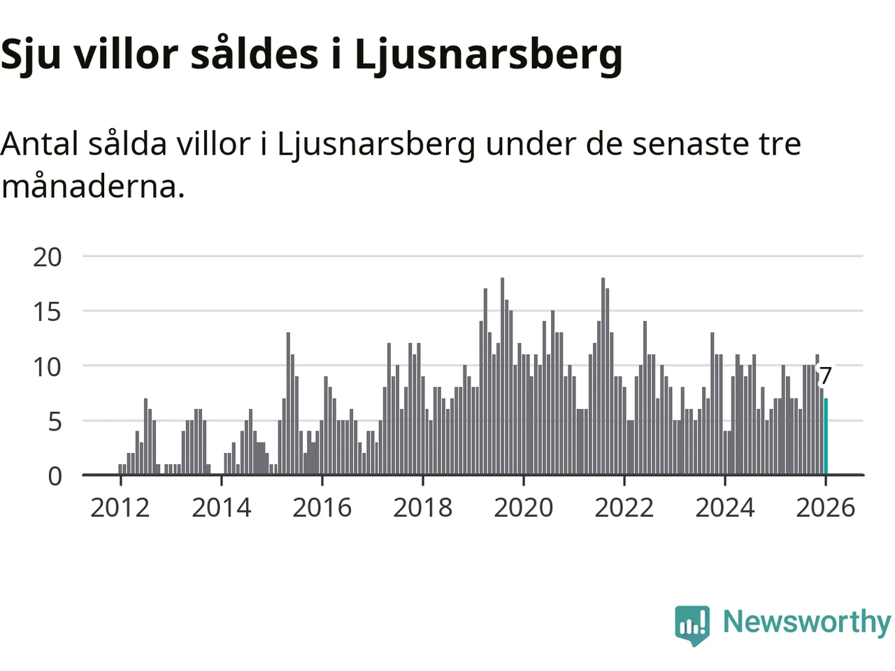 Mellan november och januari gjordes sammanlagt sju affärer med villor i Ljusnarsbergs kommun. Det är lika många affärer som vid motsvarande tid i fjol.
