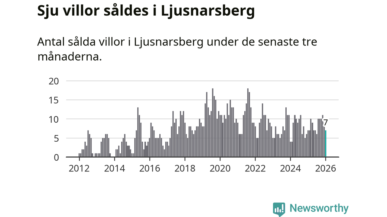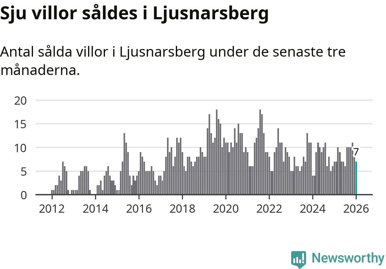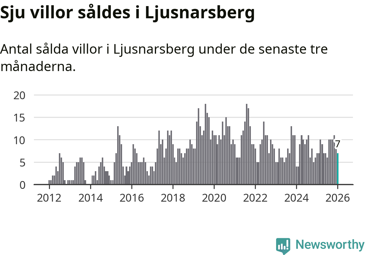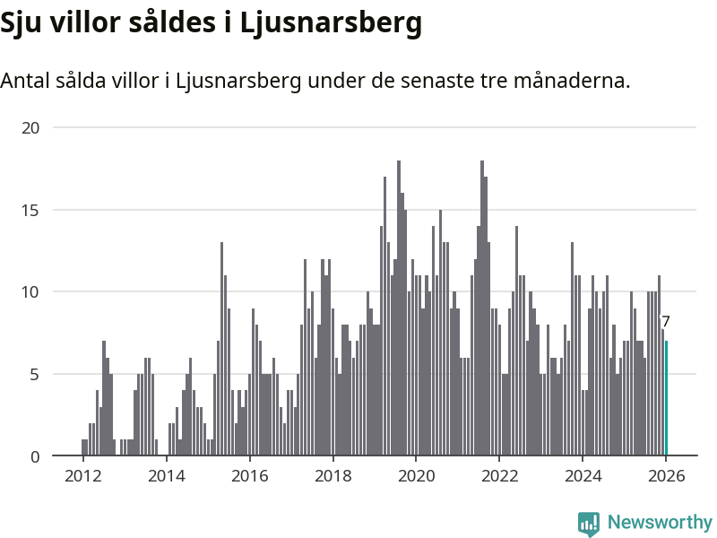 Mellan november och januari gjordes sammanlagt sju affärer med villor i Ljusnarsbergs kommun. Det är lika många affärer som vid motsvarande tid i fjol.