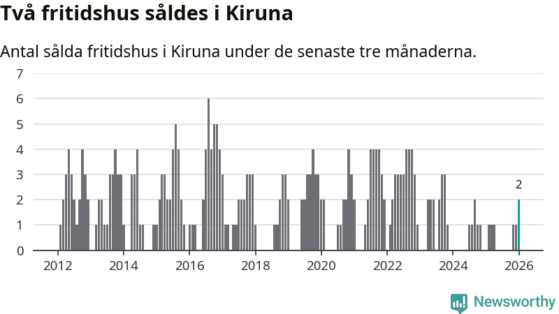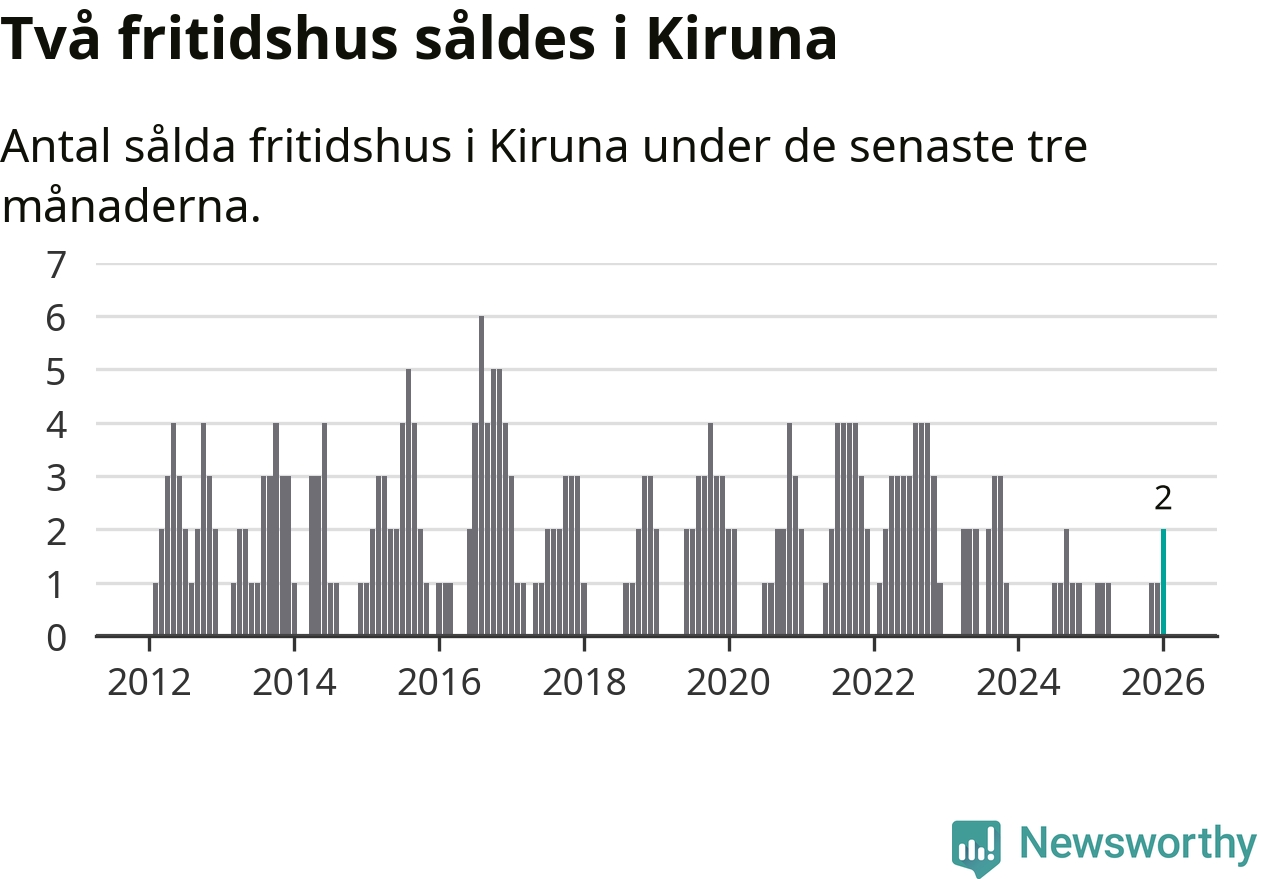 Mellan november och januari gjordes sammanlagt två affärer med fritidshus i Kiruna kommun.