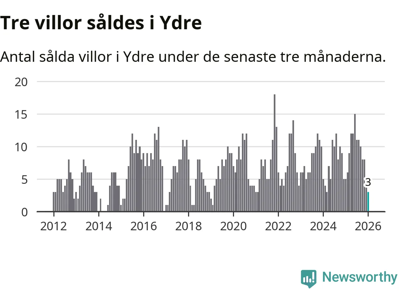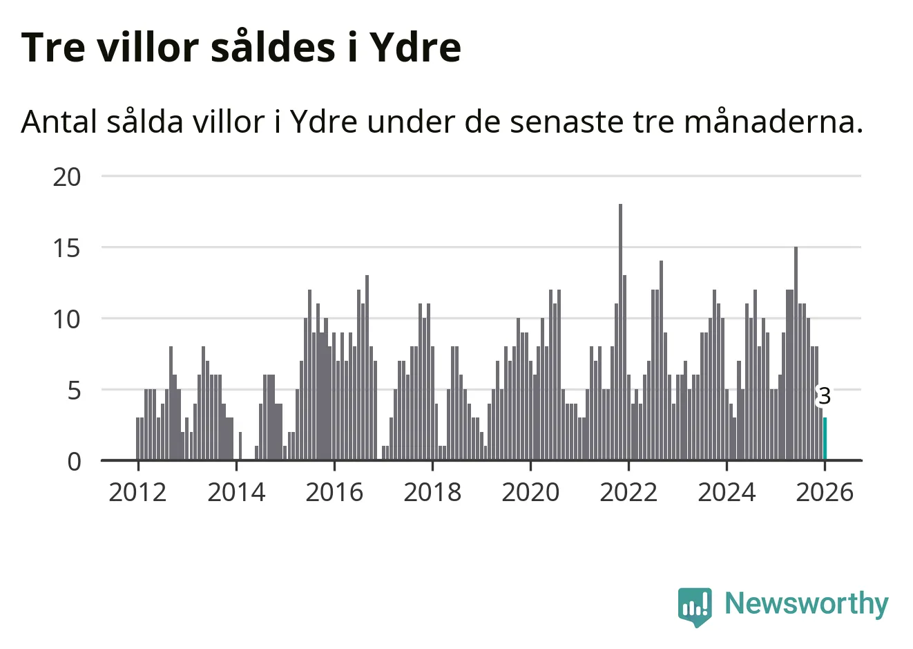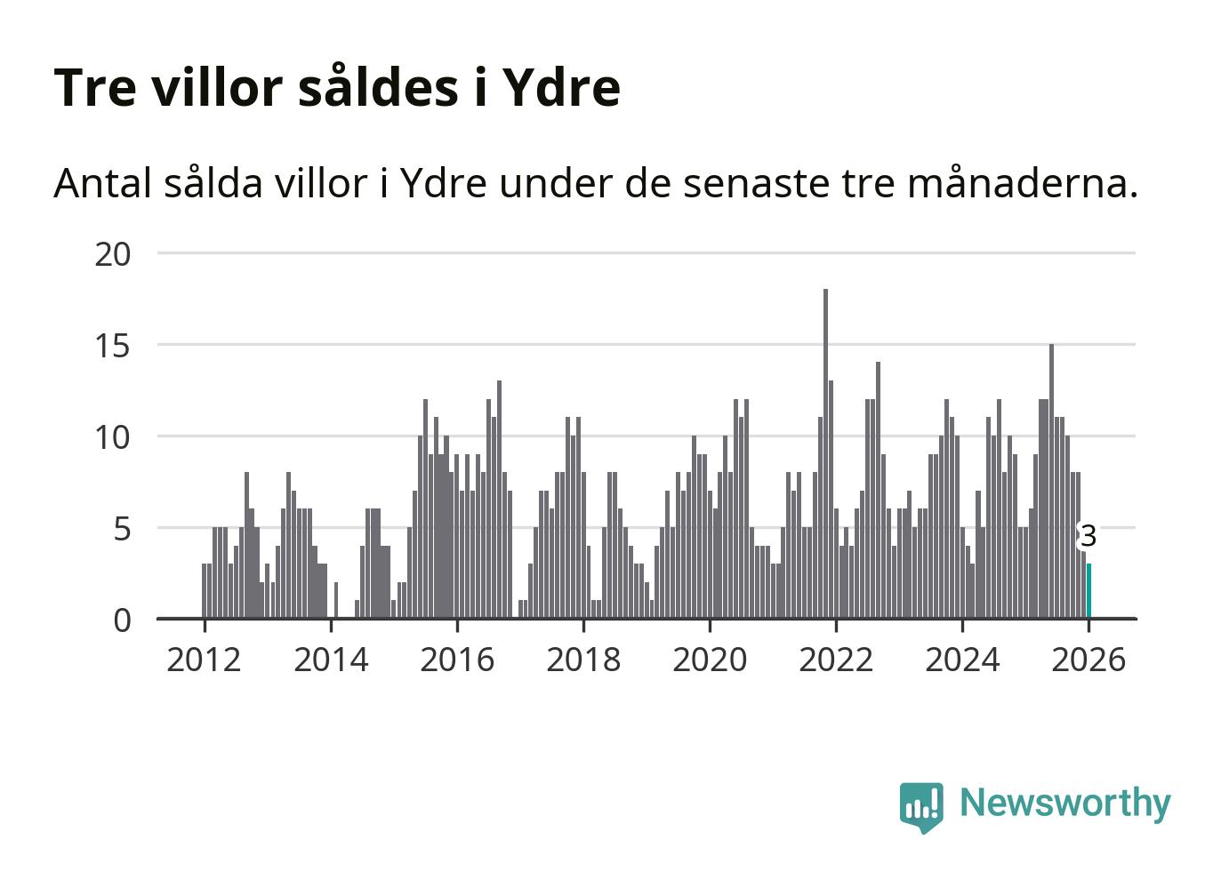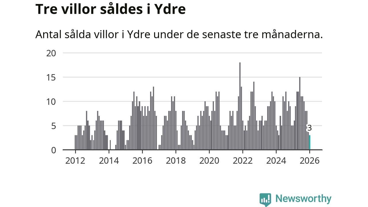Mellan november och januari gjordes sammanlagt tre affärer med villor i Ydre kommun. Det kan jämföras med fem vid motsvarande tid i fjol.