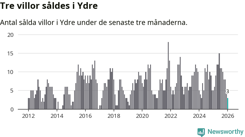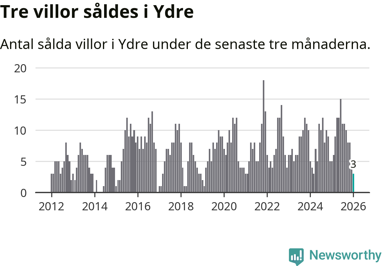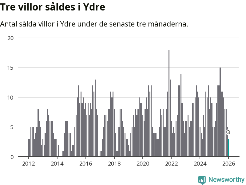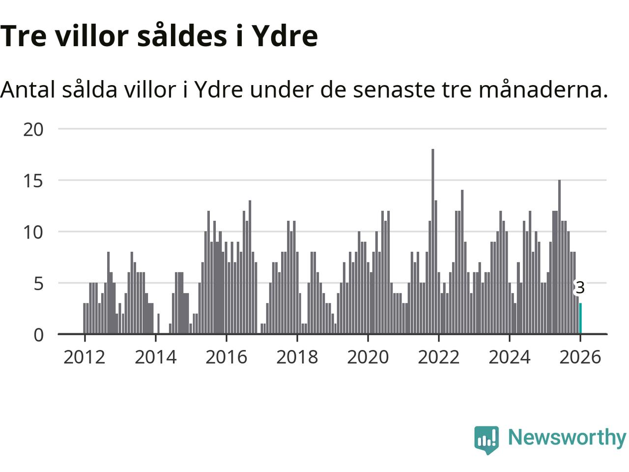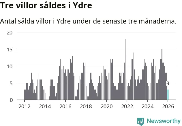 Mellan november och januari gjordes sammanlagt tre affärer med villor i Ydre kommun. Det kan jämföras med fem vid motsvarande tid i fjol.