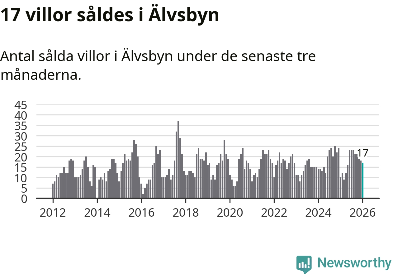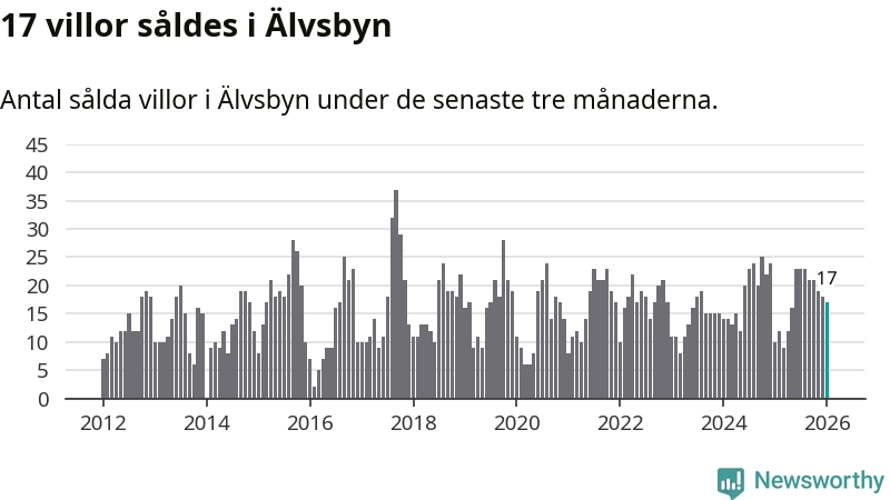 Mellan november och januari gjordes sammanlagt 17 affärer med villor i Älvsbyns kommun. Det kan jämföras med tio vid motsvarande tid i fjol.