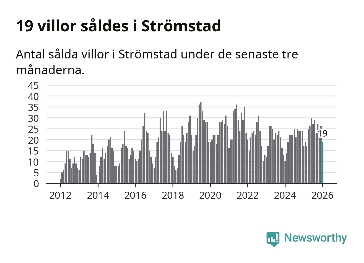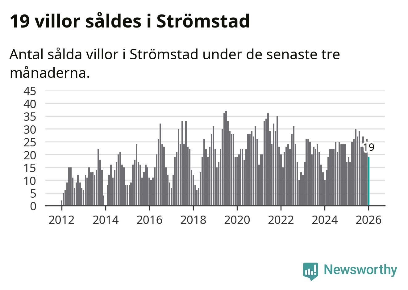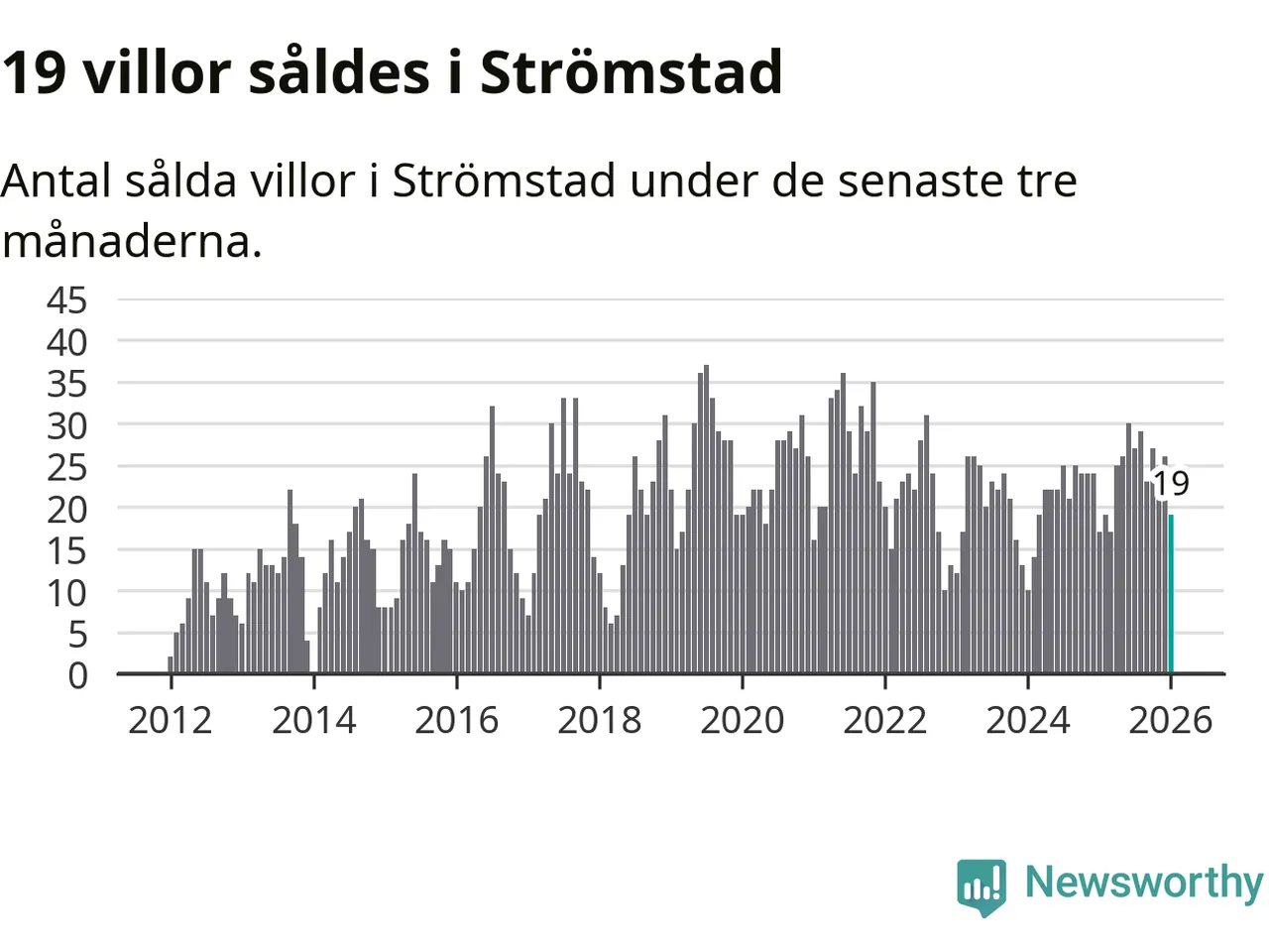 Mellan november och januari gjordes sammanlagt 19 affärer med villor i Strömstads kommun. Det kan jämföras med 17 vid motsvarande tid i fjol.