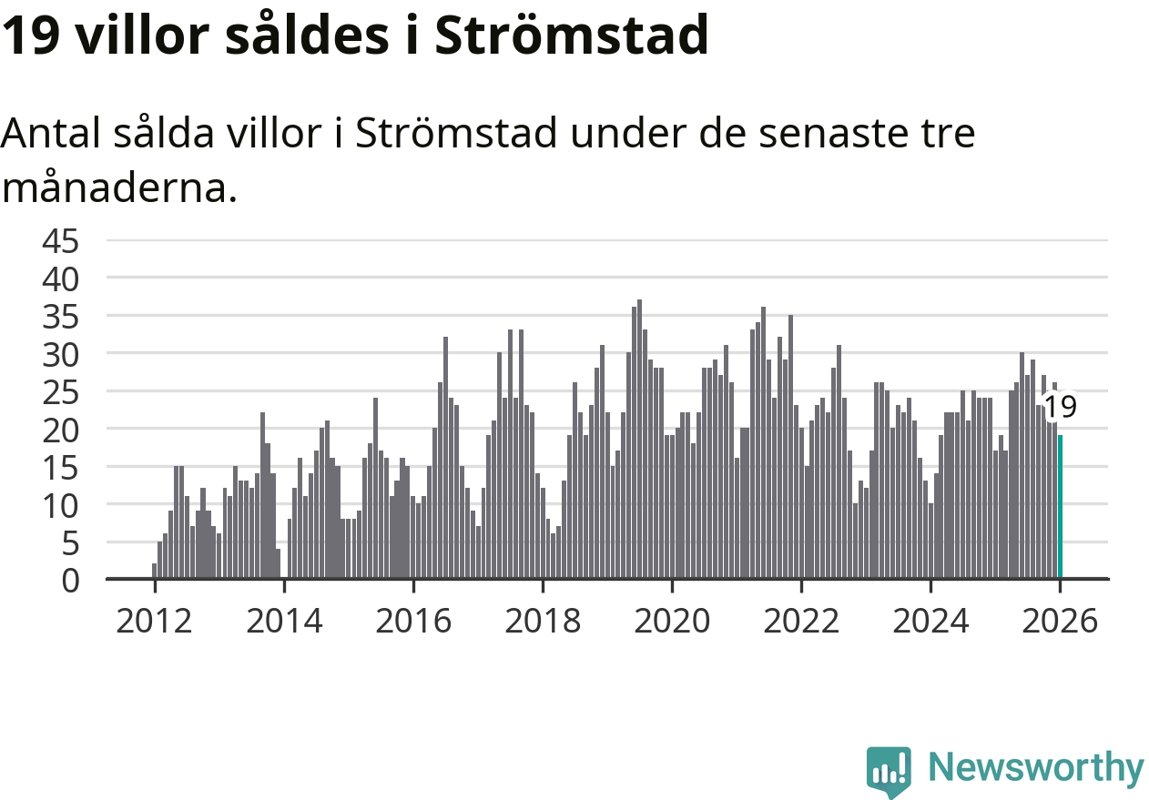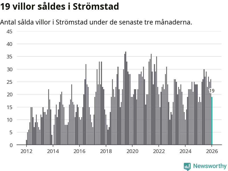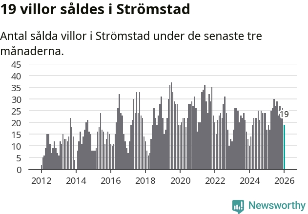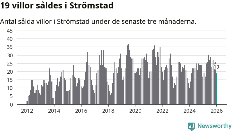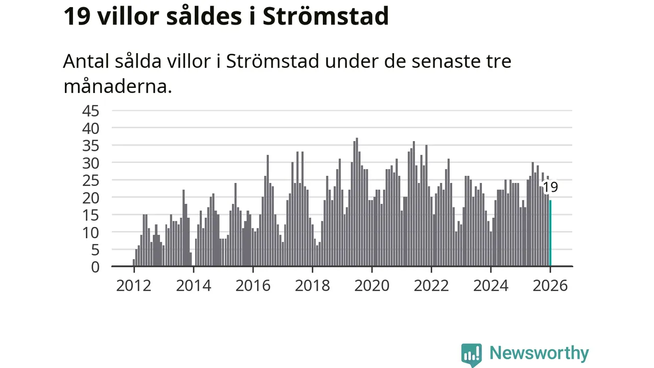 Mellan november och januari gjordes sammanlagt 19 affärer med villor i Strömstads kommun. Det kan jämföras med 17 vid motsvarande tid i fjol.