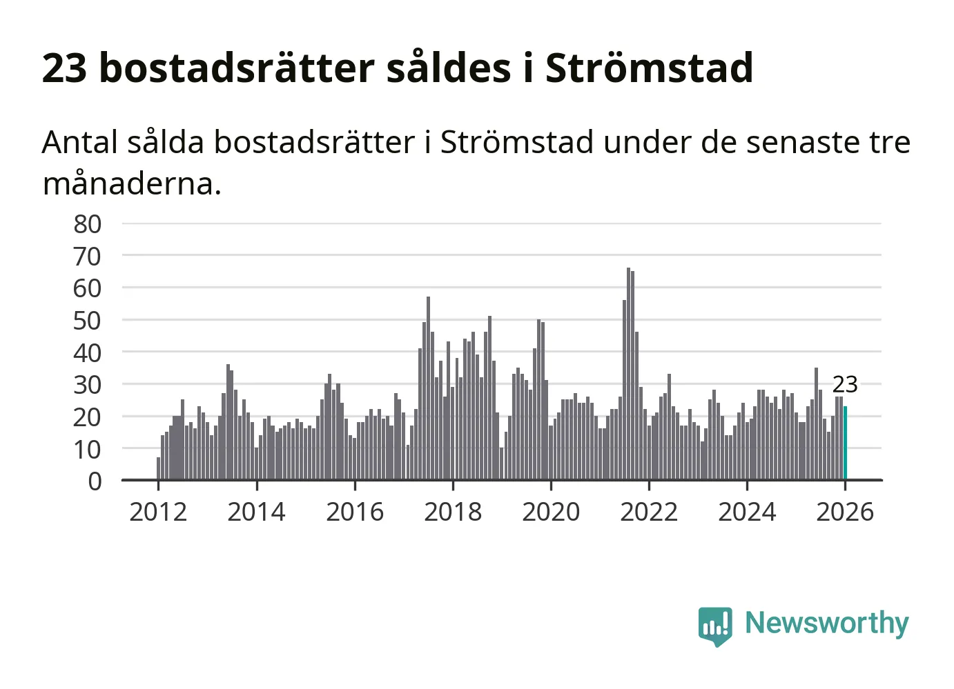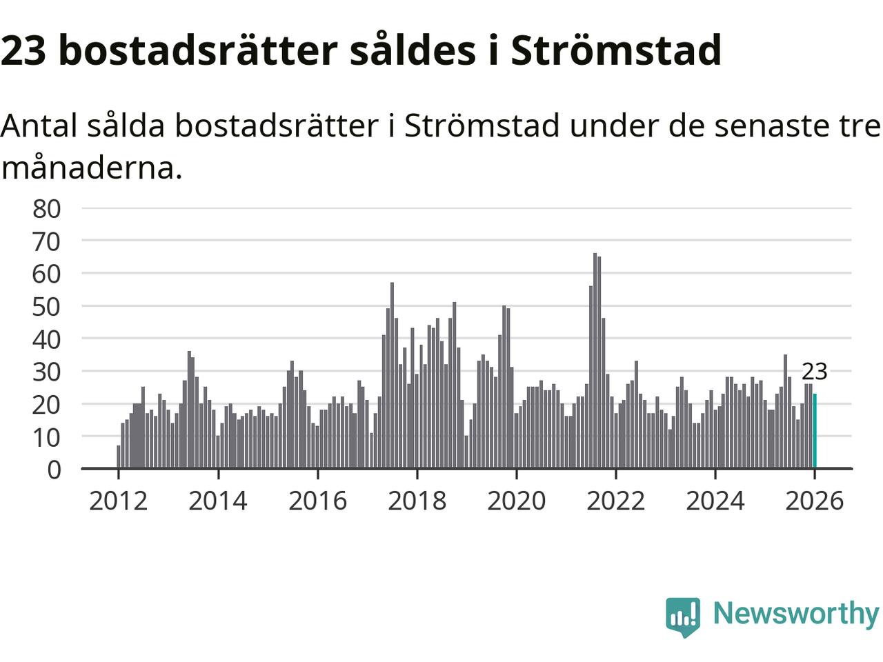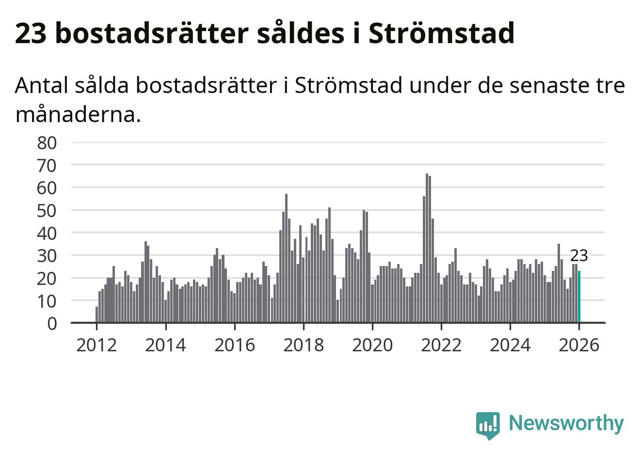 Mellan november och januari gjordes sammanlagt 23 affärer med bostadsrätter i Strömstads kommun. Det kan jämföras med 21 vid motsvarande tid i fjol.