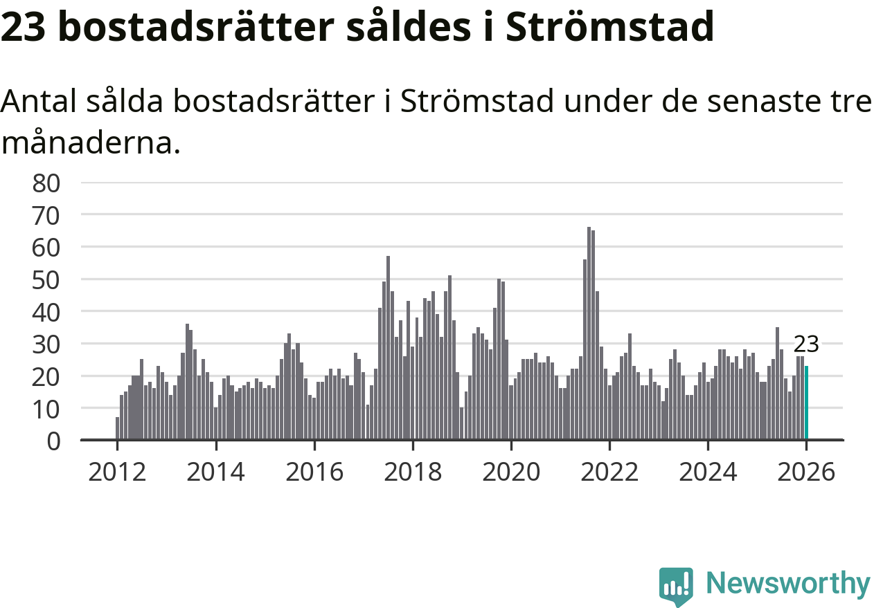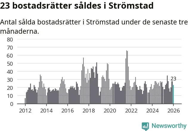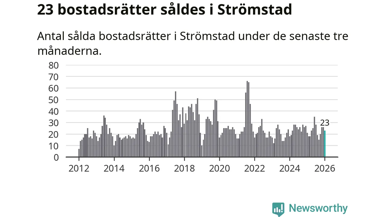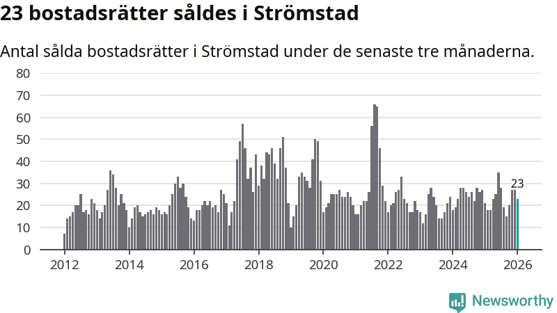 Mellan november och januari gjordes sammanlagt 23 affärer med bostadsrätter i Strömstads kommun. Det kan jämföras med 21 vid motsvarande tid i fjol.