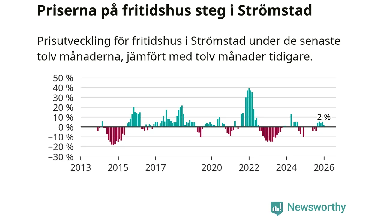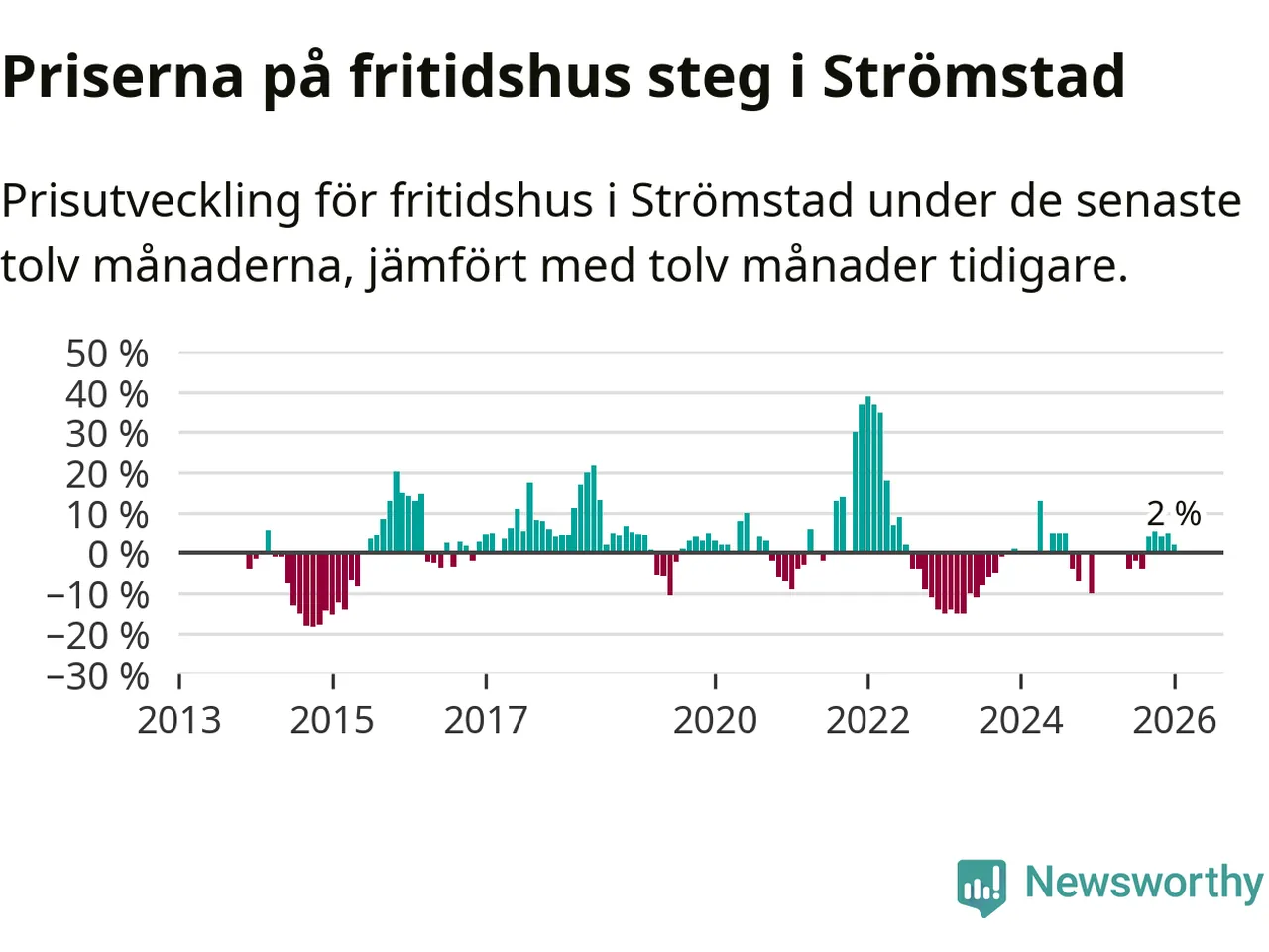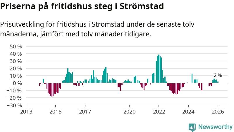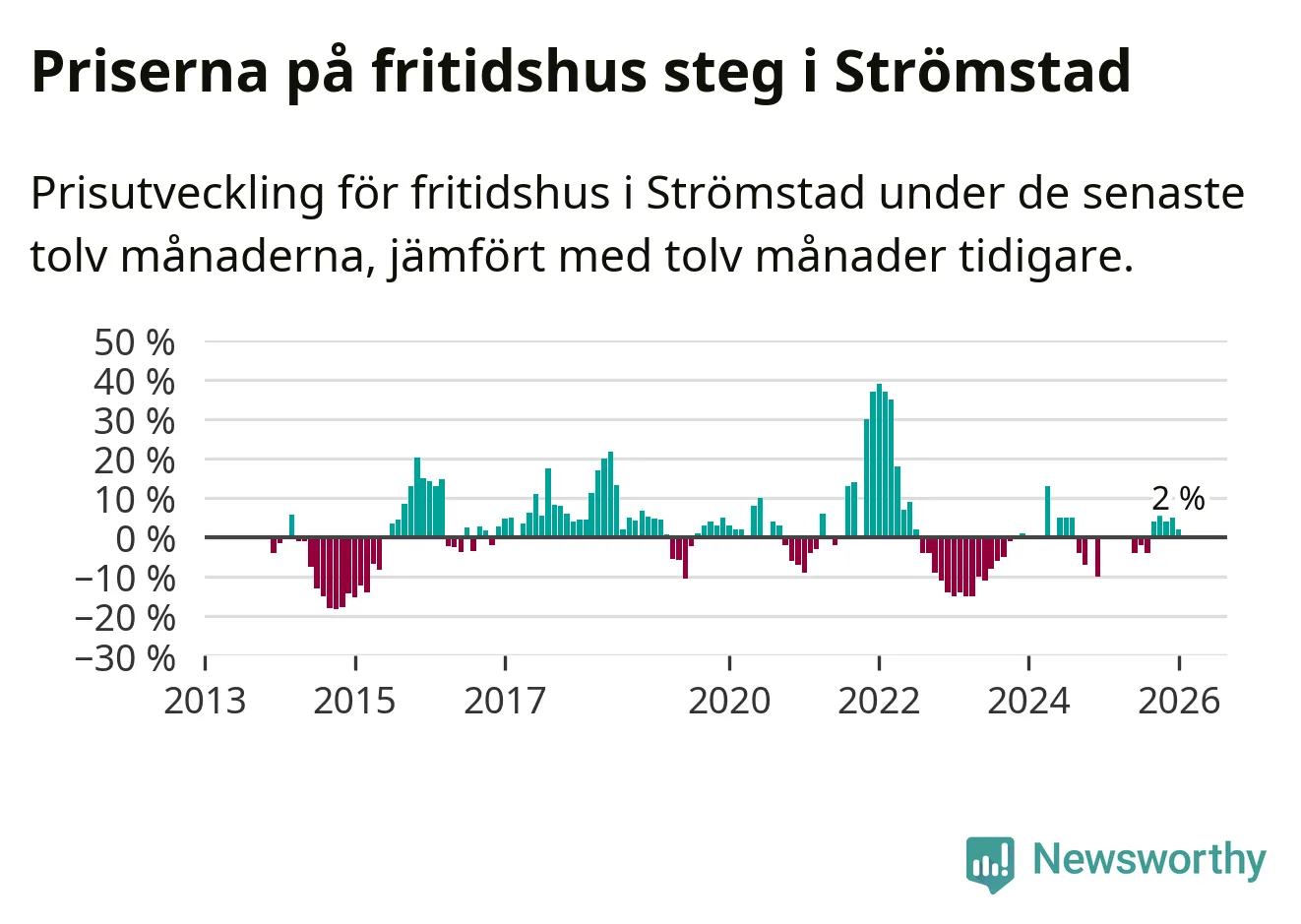 Priserna på fritidshus har gått upp i Strömstads kommun. Medelpriset på försäljningarna under de senaste tolv månaderna visar på en uppgång med 2 procent.
