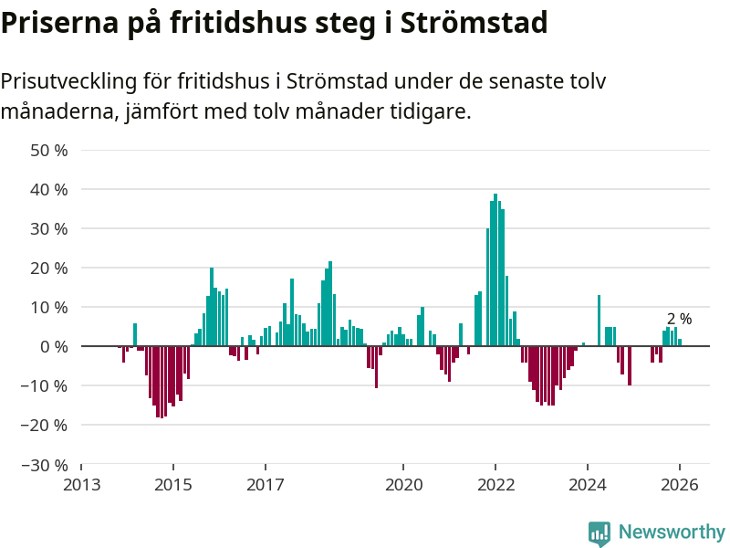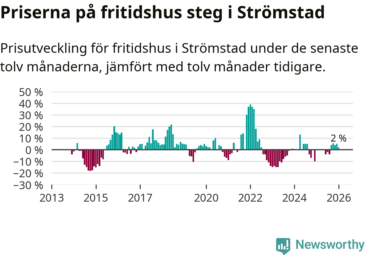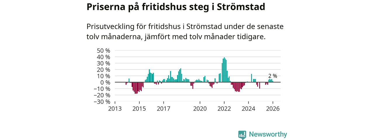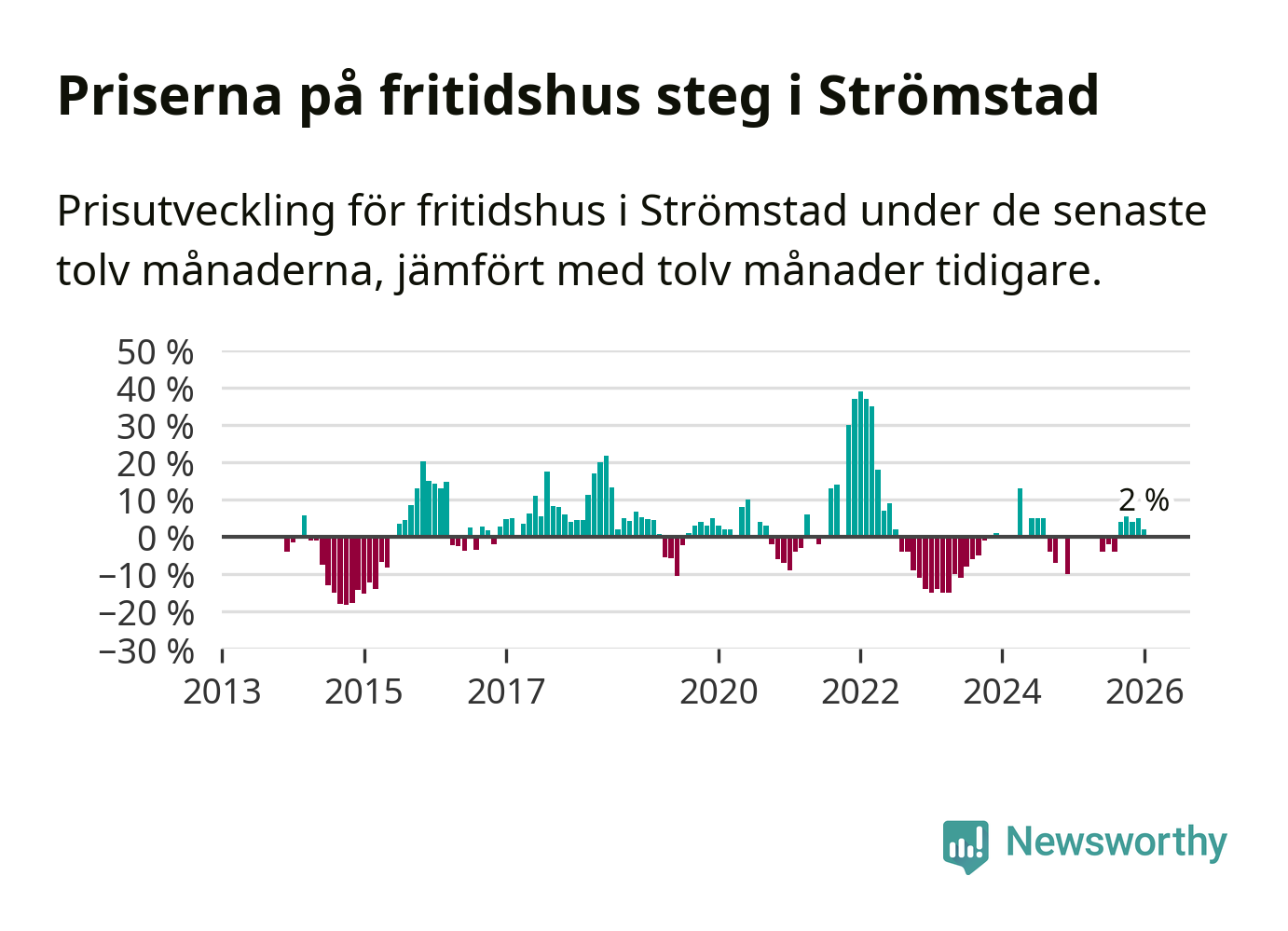 Priserna på fritidshus har gått upp i Strömstads kommun. Medelpriset på försäljningarna under de senaste tolv månaderna visar på en uppgång med 2 procent.