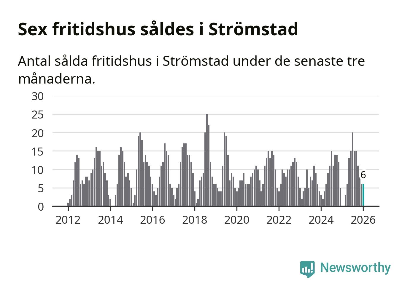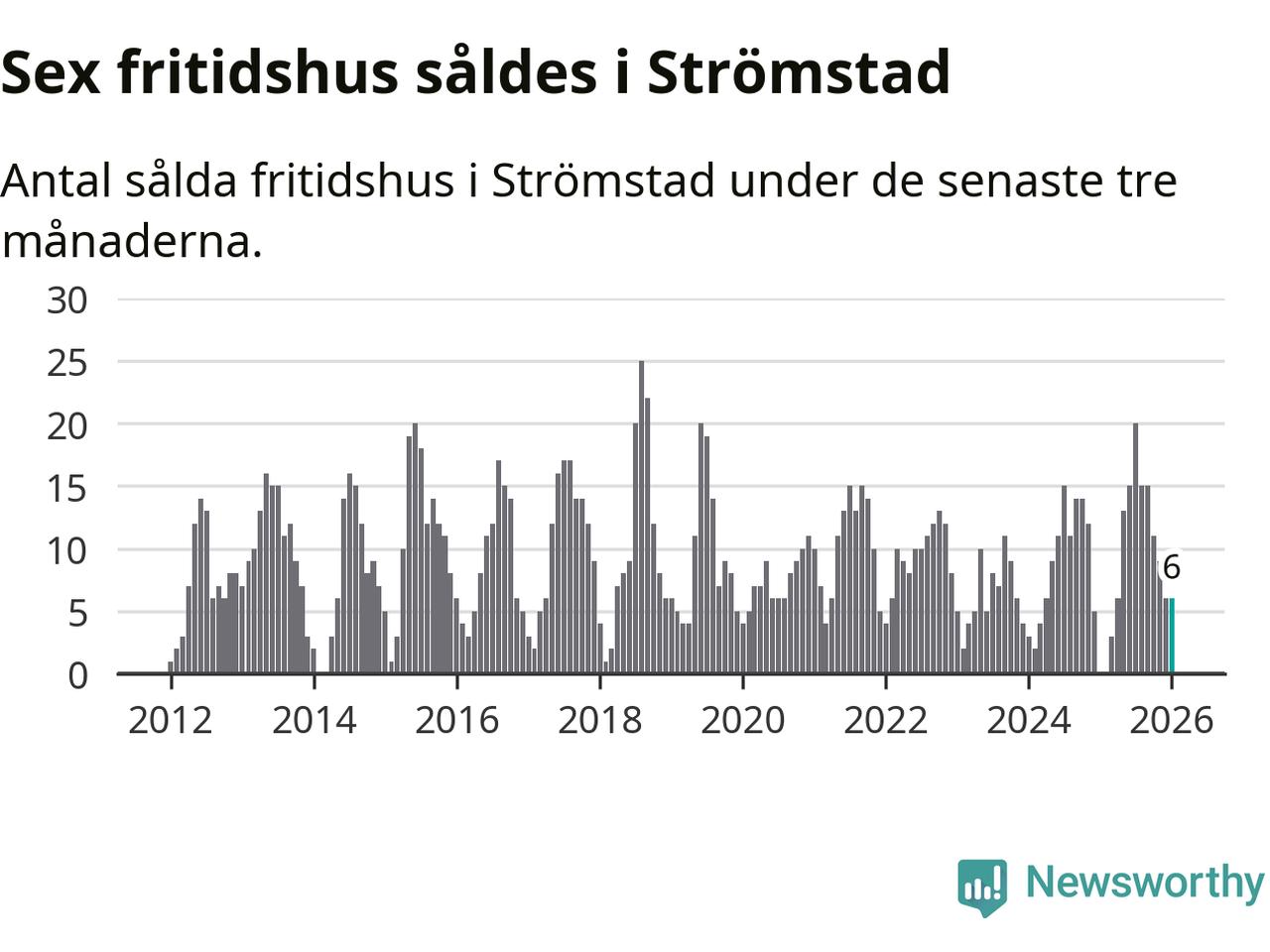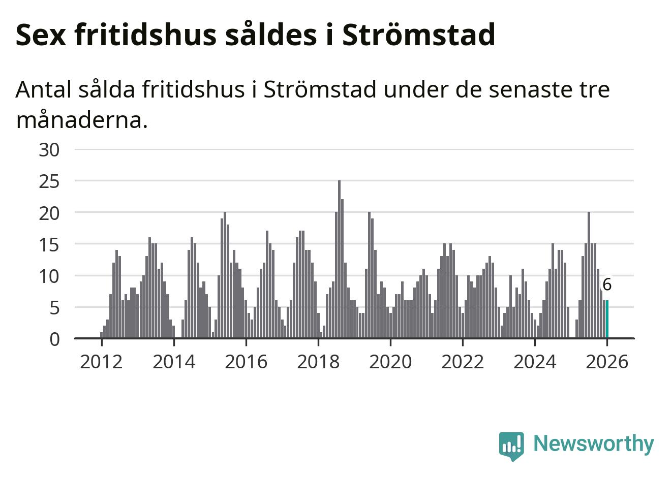Sammanlagt såldes sex fritidshus i Strömstads kommun mellan november 2025 och januari till ett genomsnittligt pris på 4,7 miljoner kronor. I fjol gjordes inga affärer vid den här tiden på året.