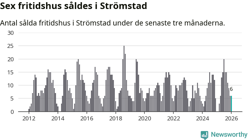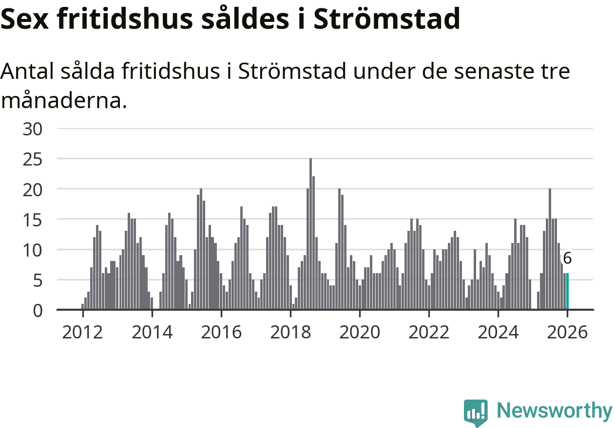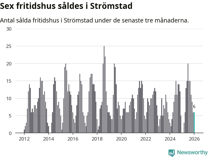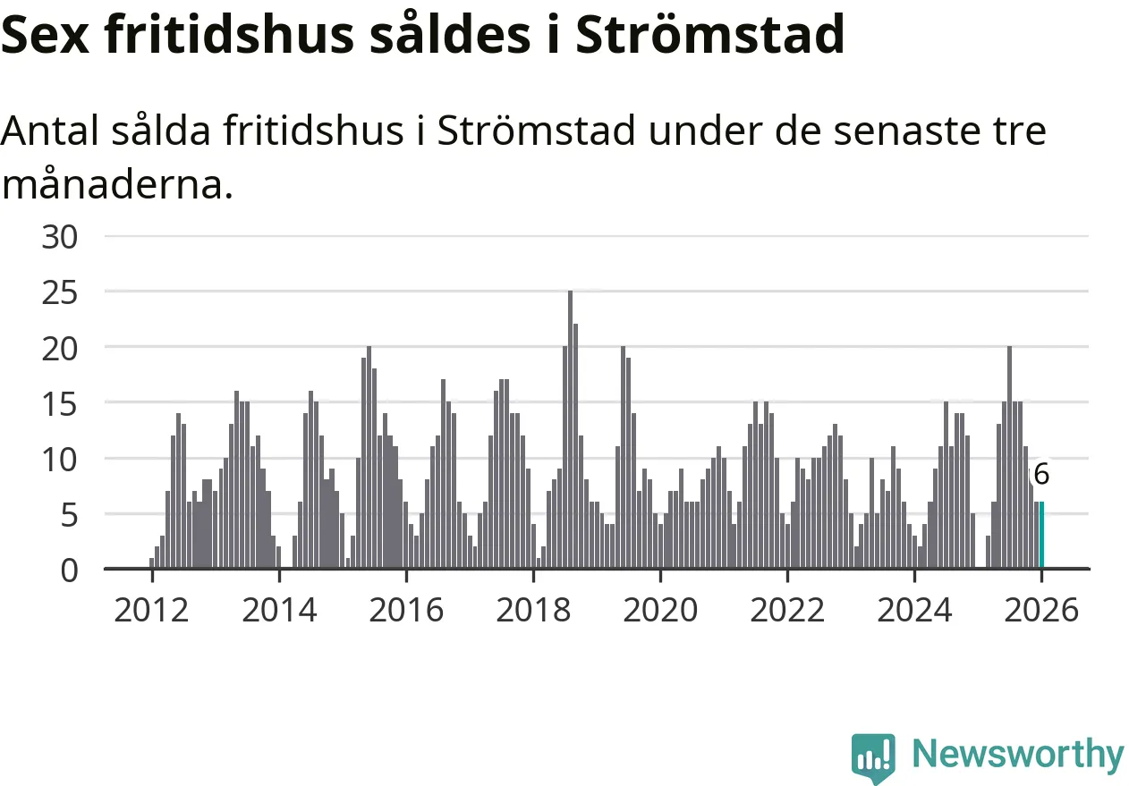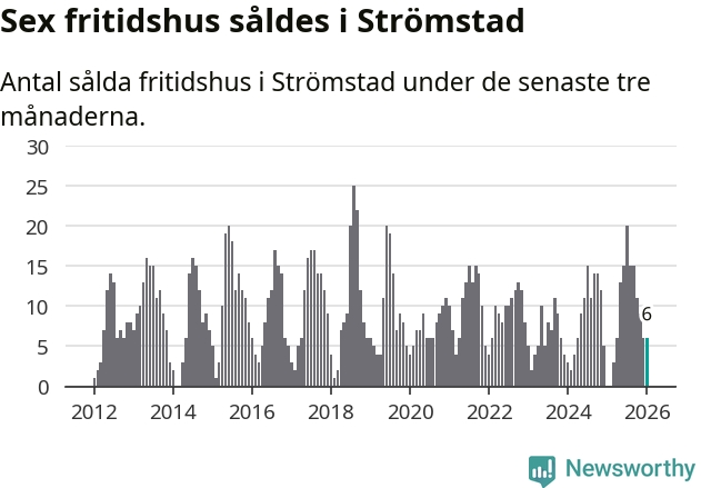 Sammanlagt såldes sex fritidshus i Strömstads kommun mellan november 2025 och januari till ett genomsnittligt pris på 4,7 miljoner kronor. I fjol gjordes inga affärer vid den här tiden på året.