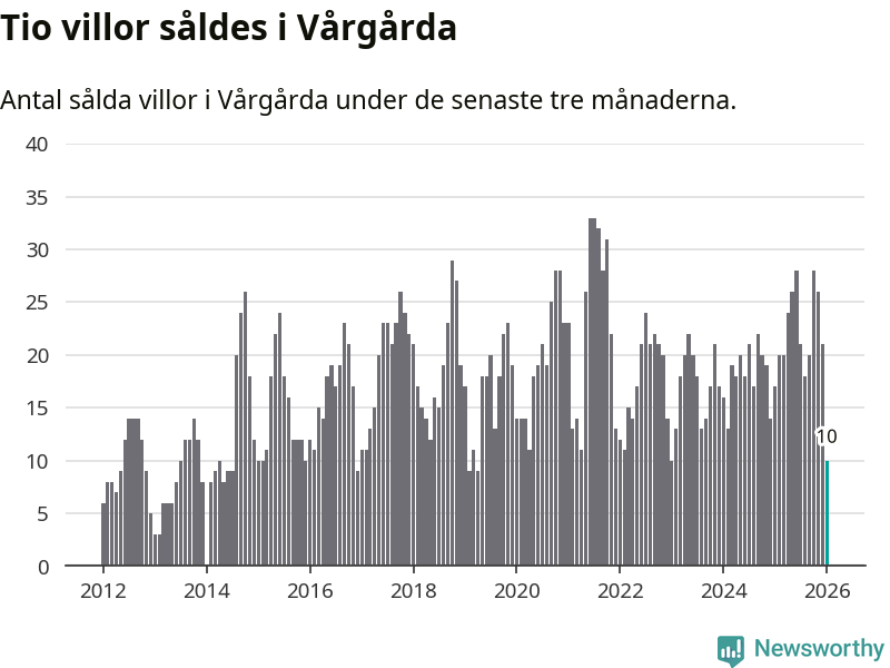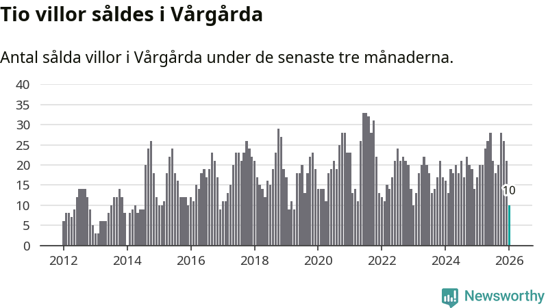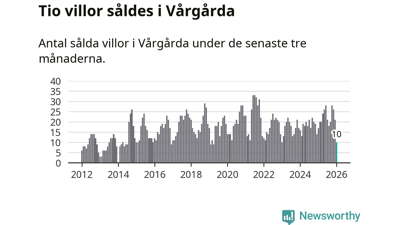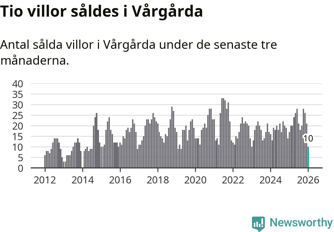 Mellan november och januari gjordes sammanlagt tio affärer med villor i Vårgårda kommun. Det kan jämföras med 17 vid motsvarande tid i fjol.