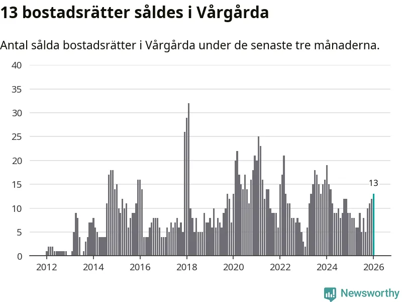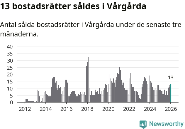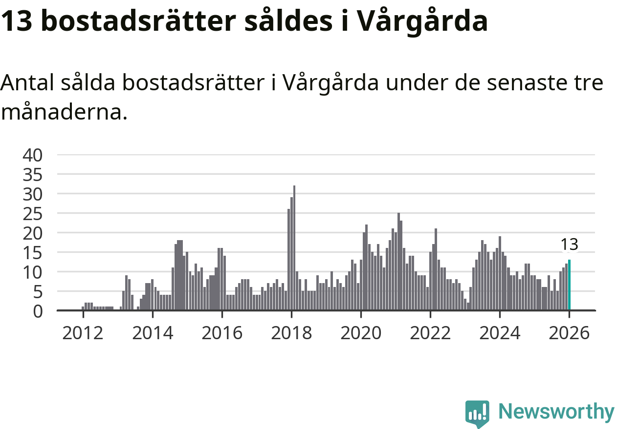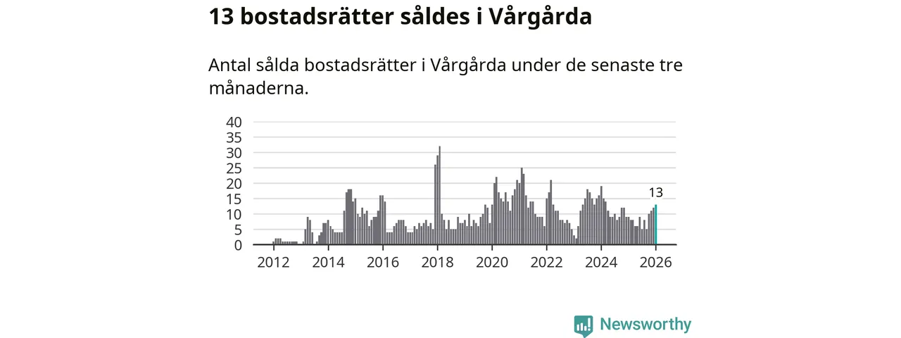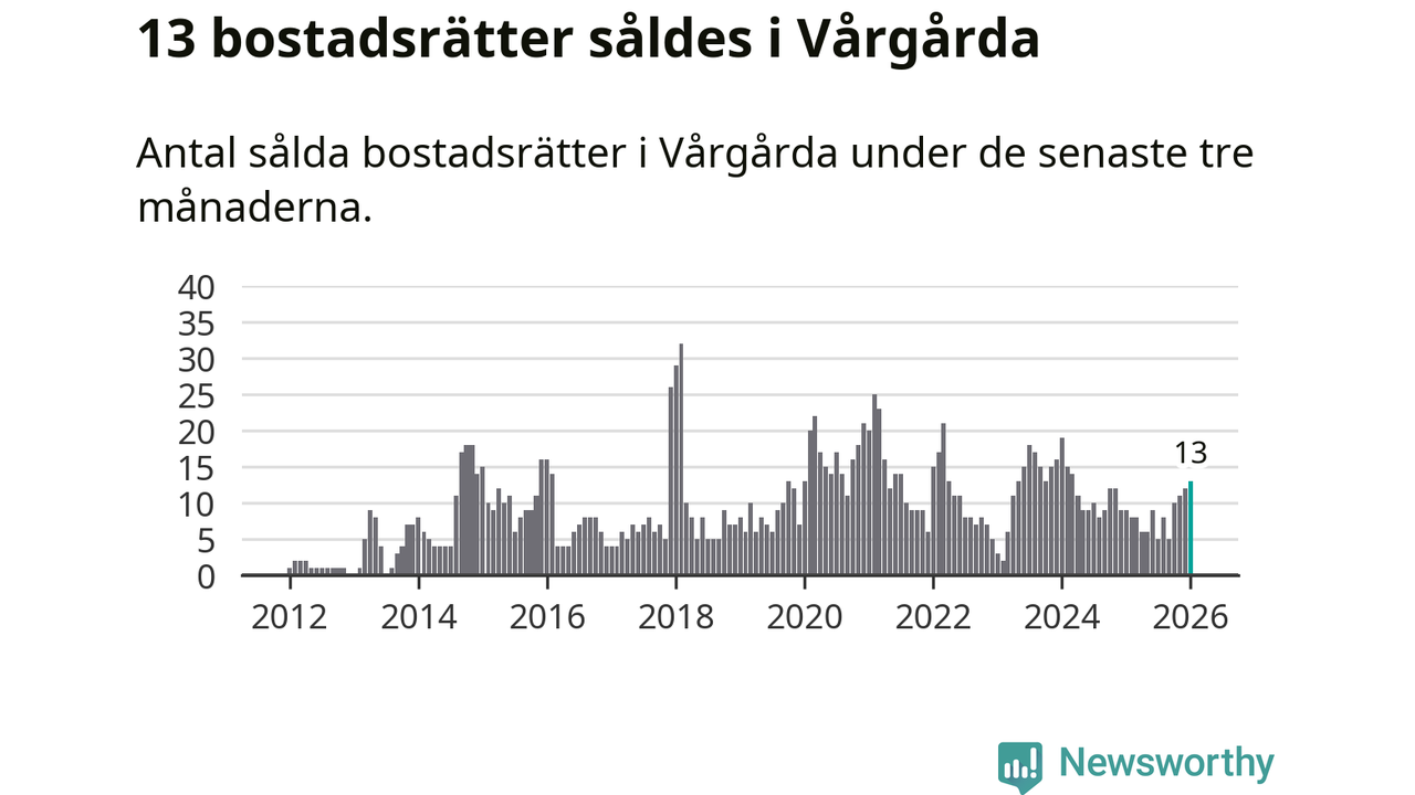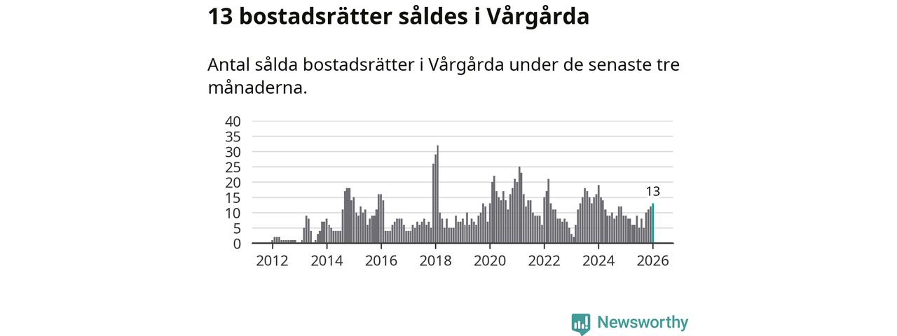 Mellan november och januari gjordes sammanlagt 13 affärer med bostadsrätter i Vårgårda kommun. Det kan jämföras med nio vid motsvarande tid i fjol.