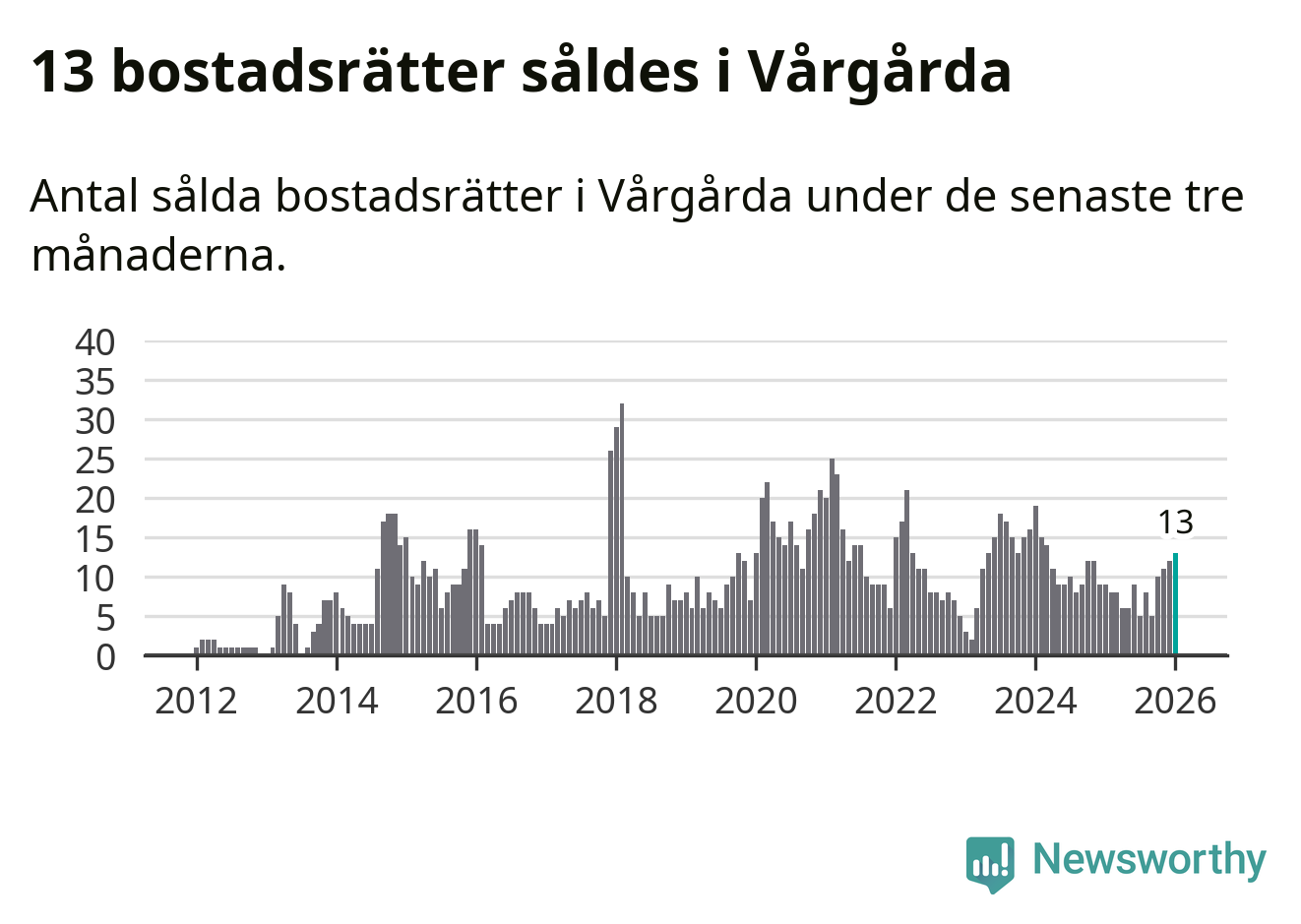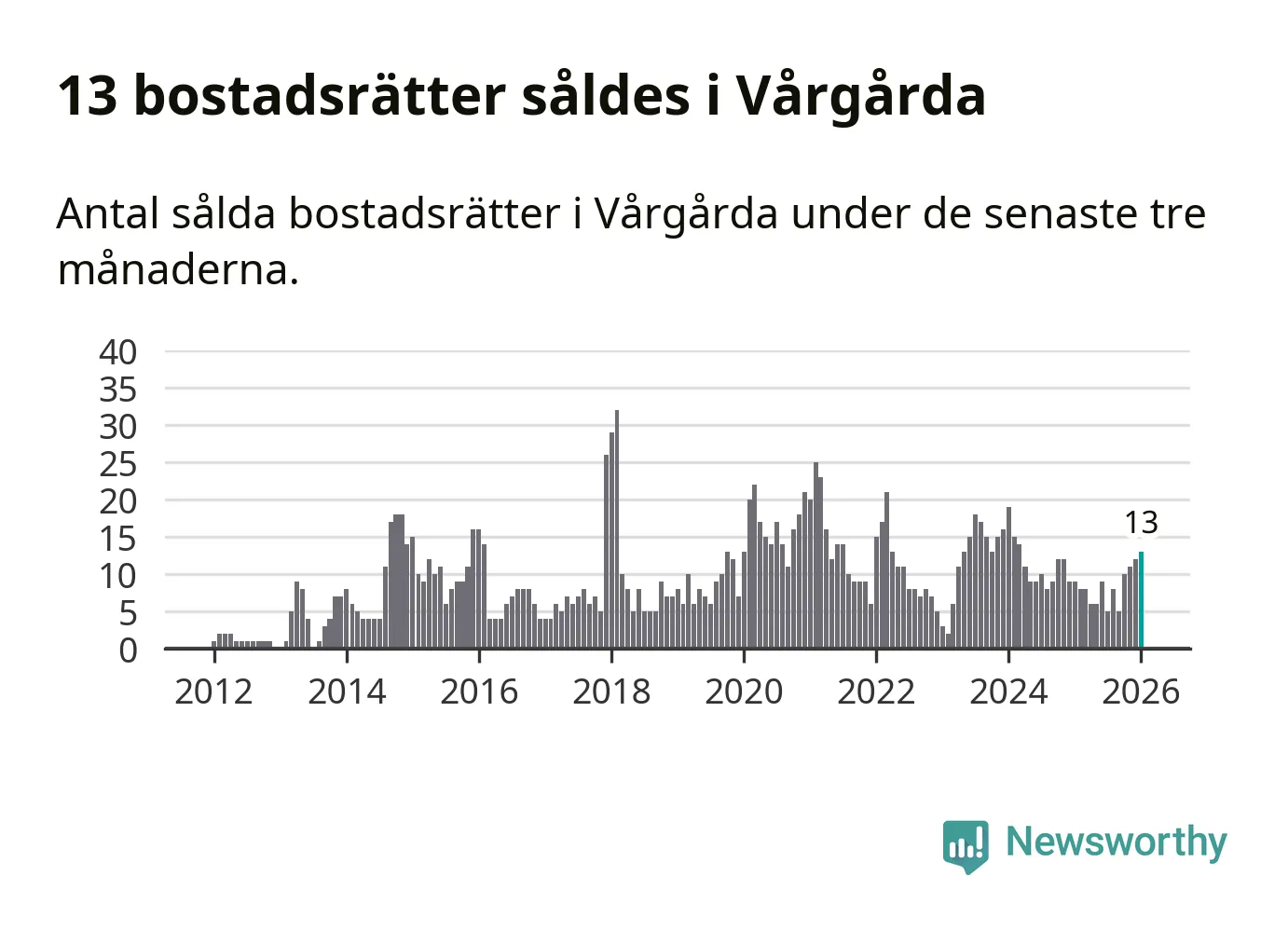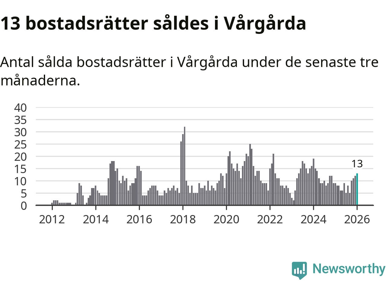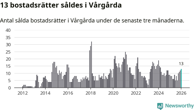 Mellan november och januari gjordes sammanlagt 13 affärer med bostadsrätter i Vårgårda kommun. Det kan jämföras med nio vid motsvarande tid i fjol.