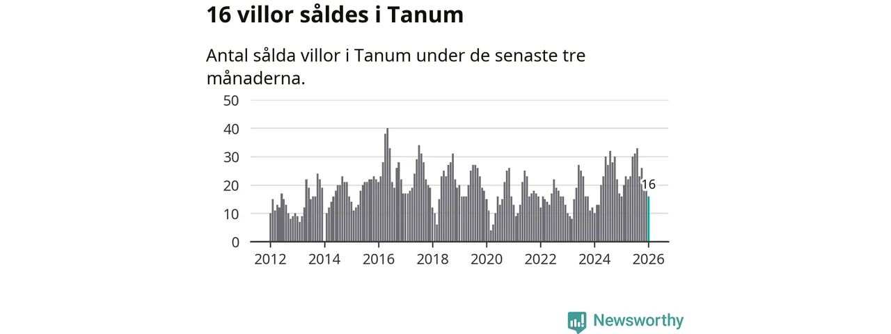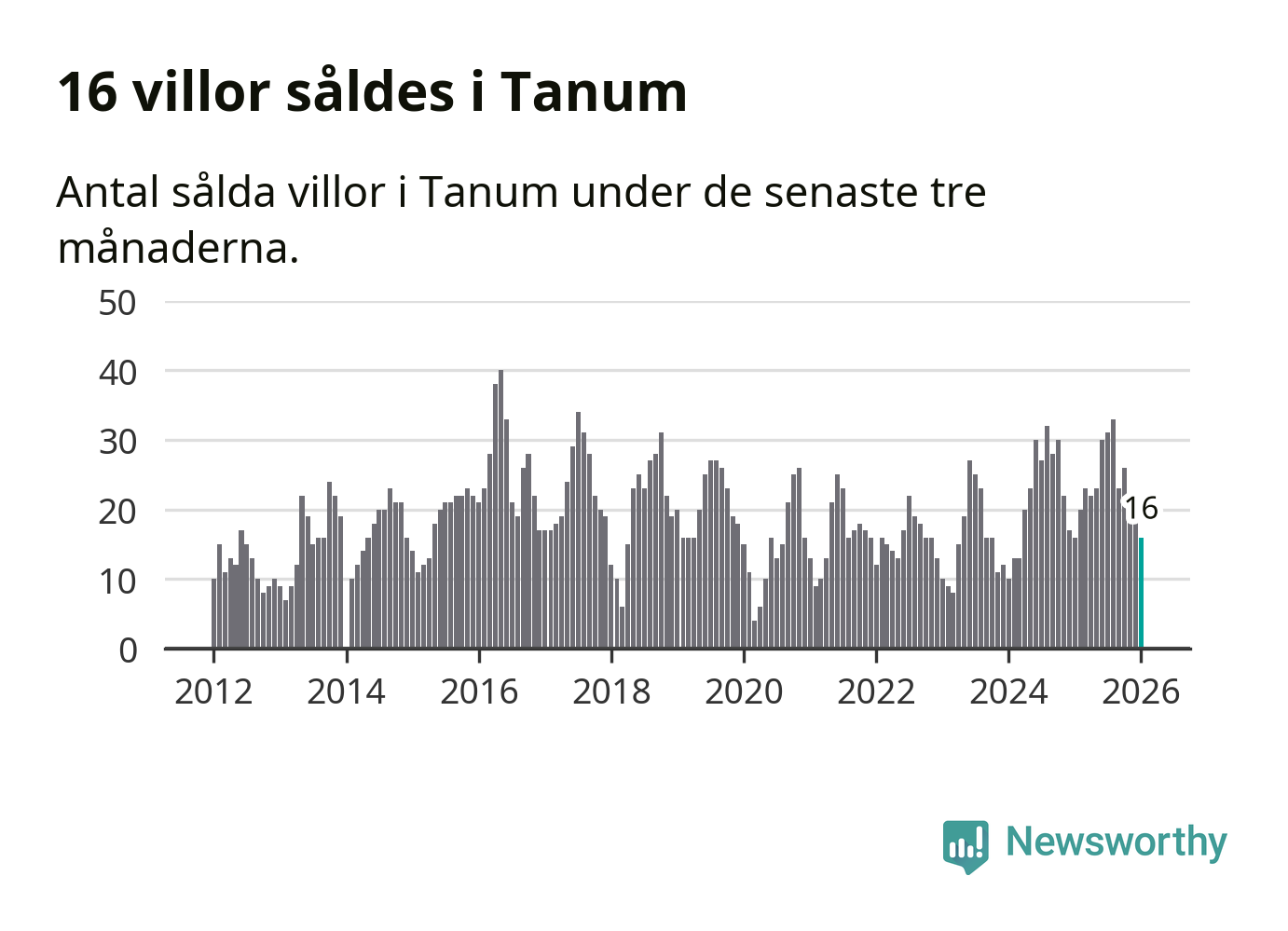 Mellan november och januari gjordes sammanlagt 16 affärer med villor i Tanums kommun. Det är lika många affärer som vid motsvarande tid i fjol.