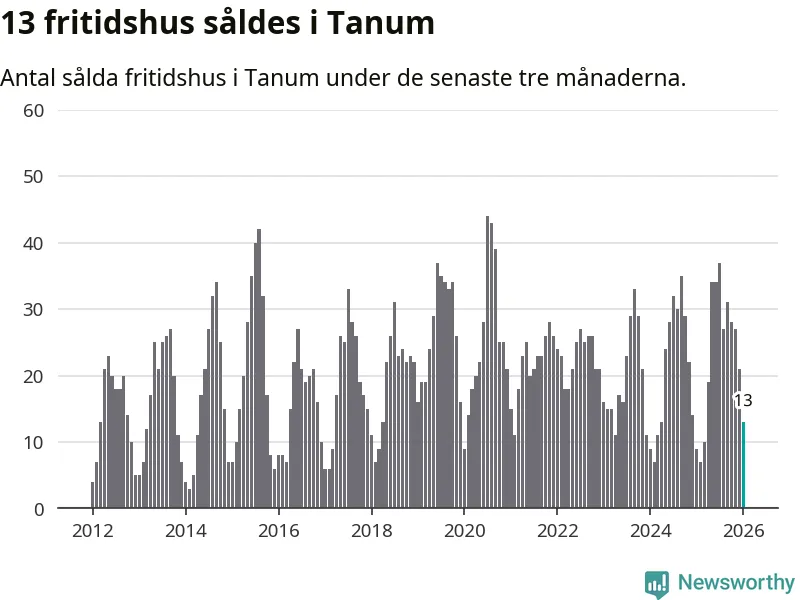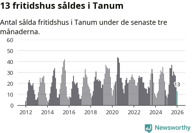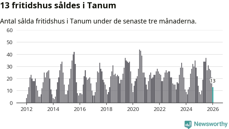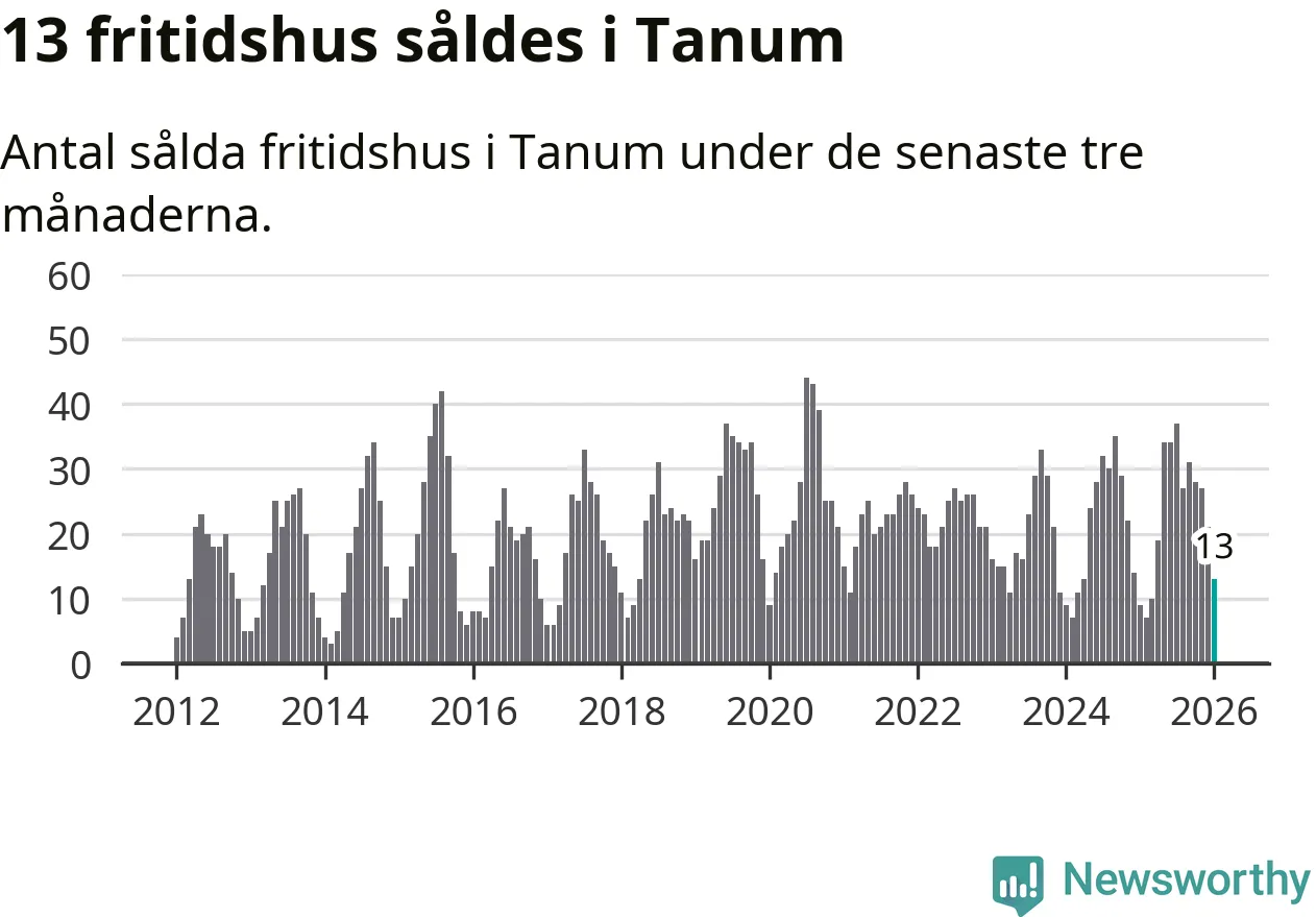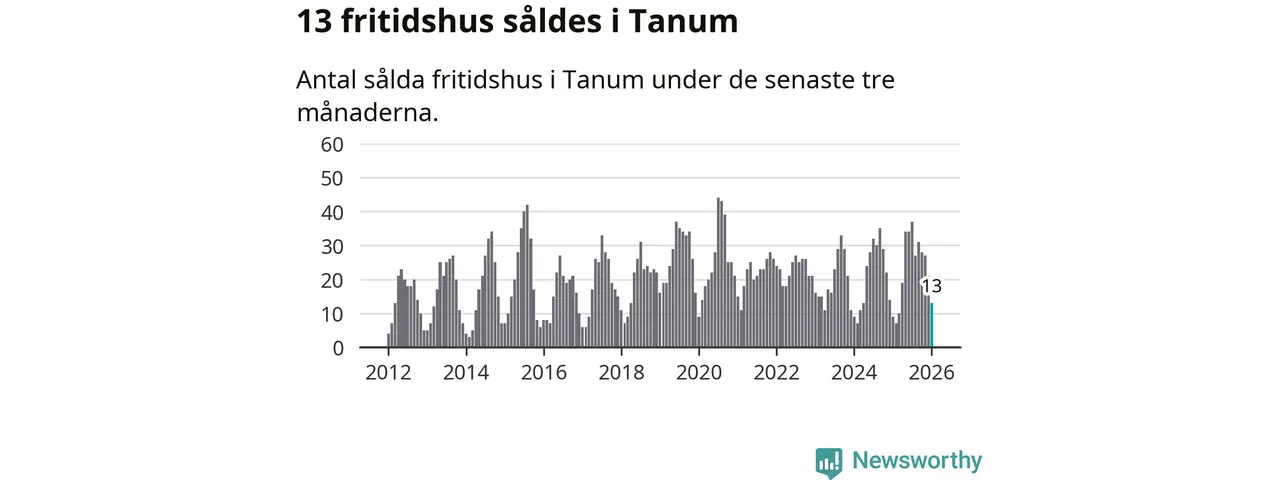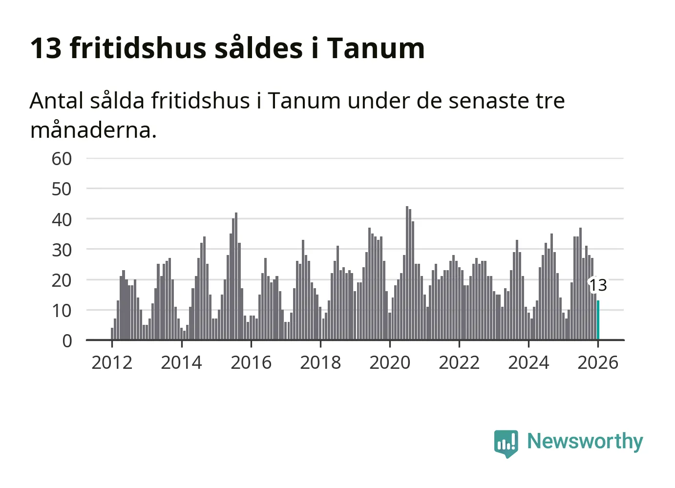 Sammanlagt såldes 13 fritidshus i Tanums kommun mellan november 2025 och januari till ett genomsnittligt pris på 6,3 miljoner kronor. I fjol gjordes nio affärer vid den här tiden på året.