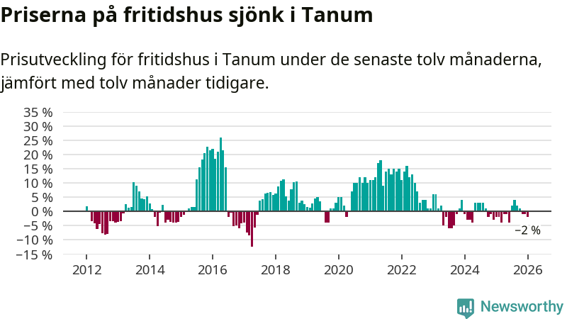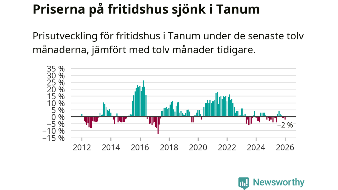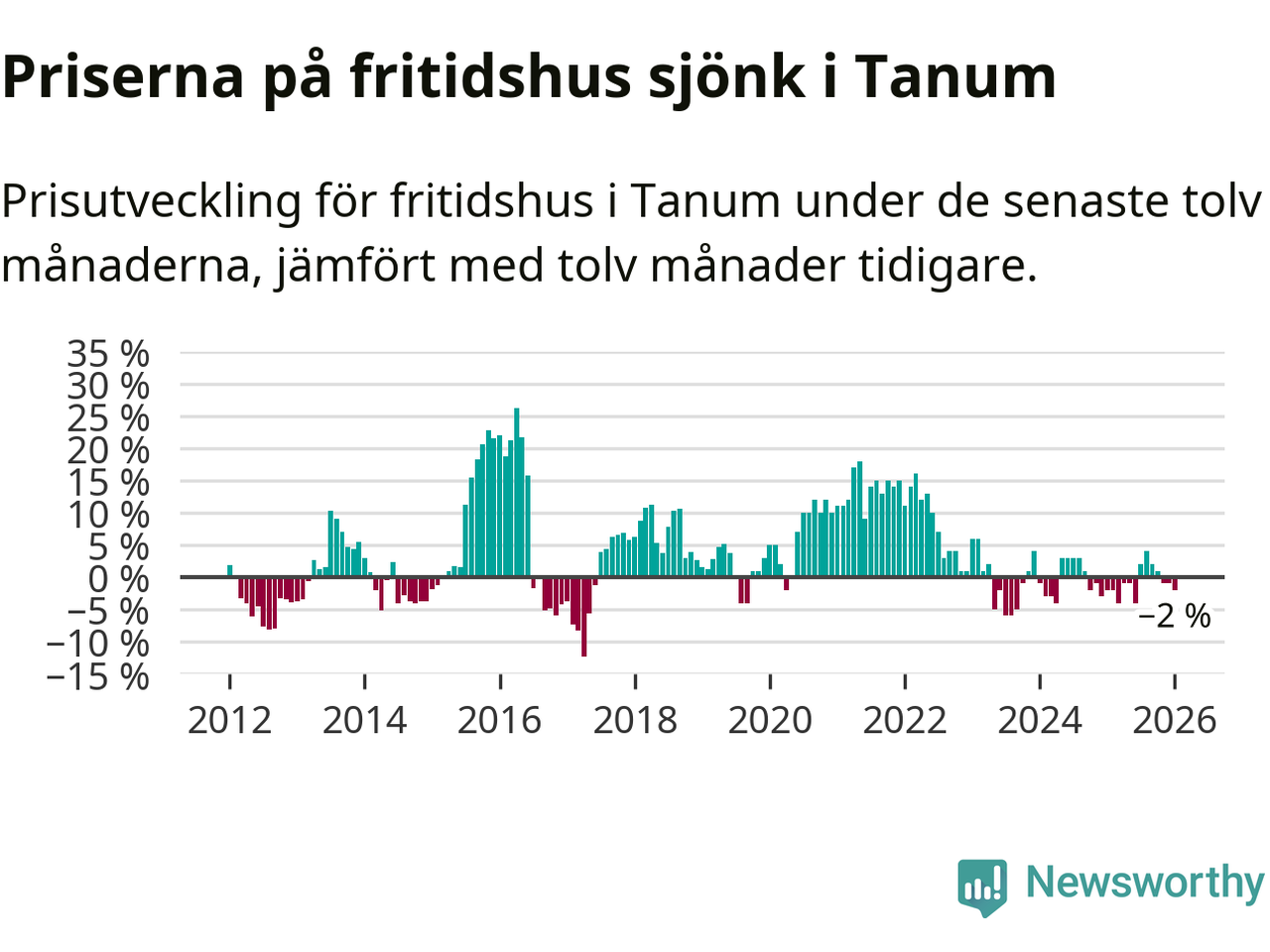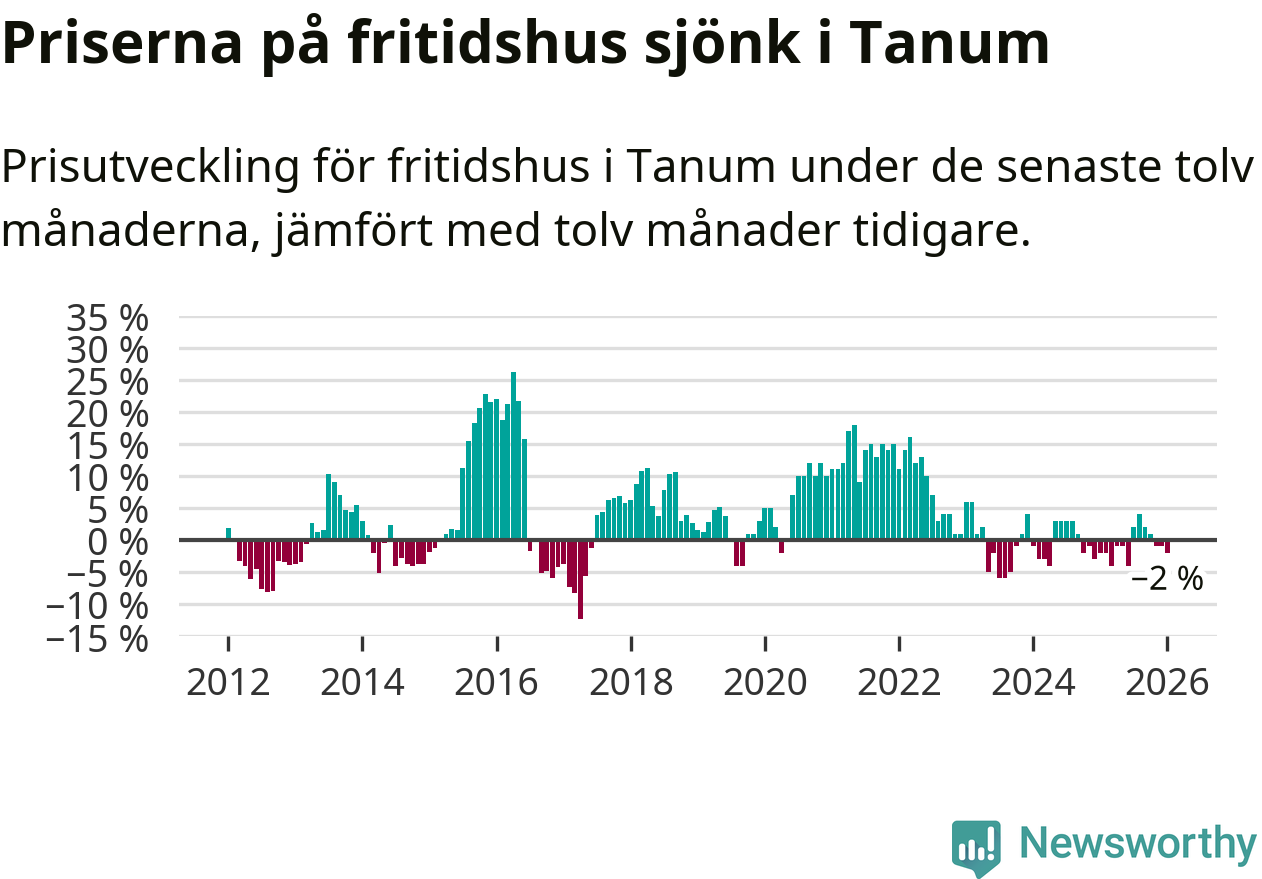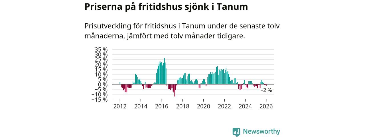 Sammanlagt såldes 13 fritidshus i Tanums kommun mellan november 2025 och januari till ett genomsnittligt pris på 6,3 miljoner kronor. I fjol gjordes nio affärer vid den här tiden på året.