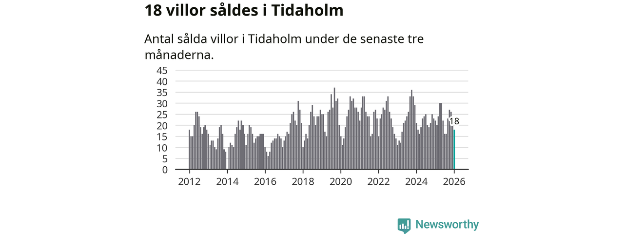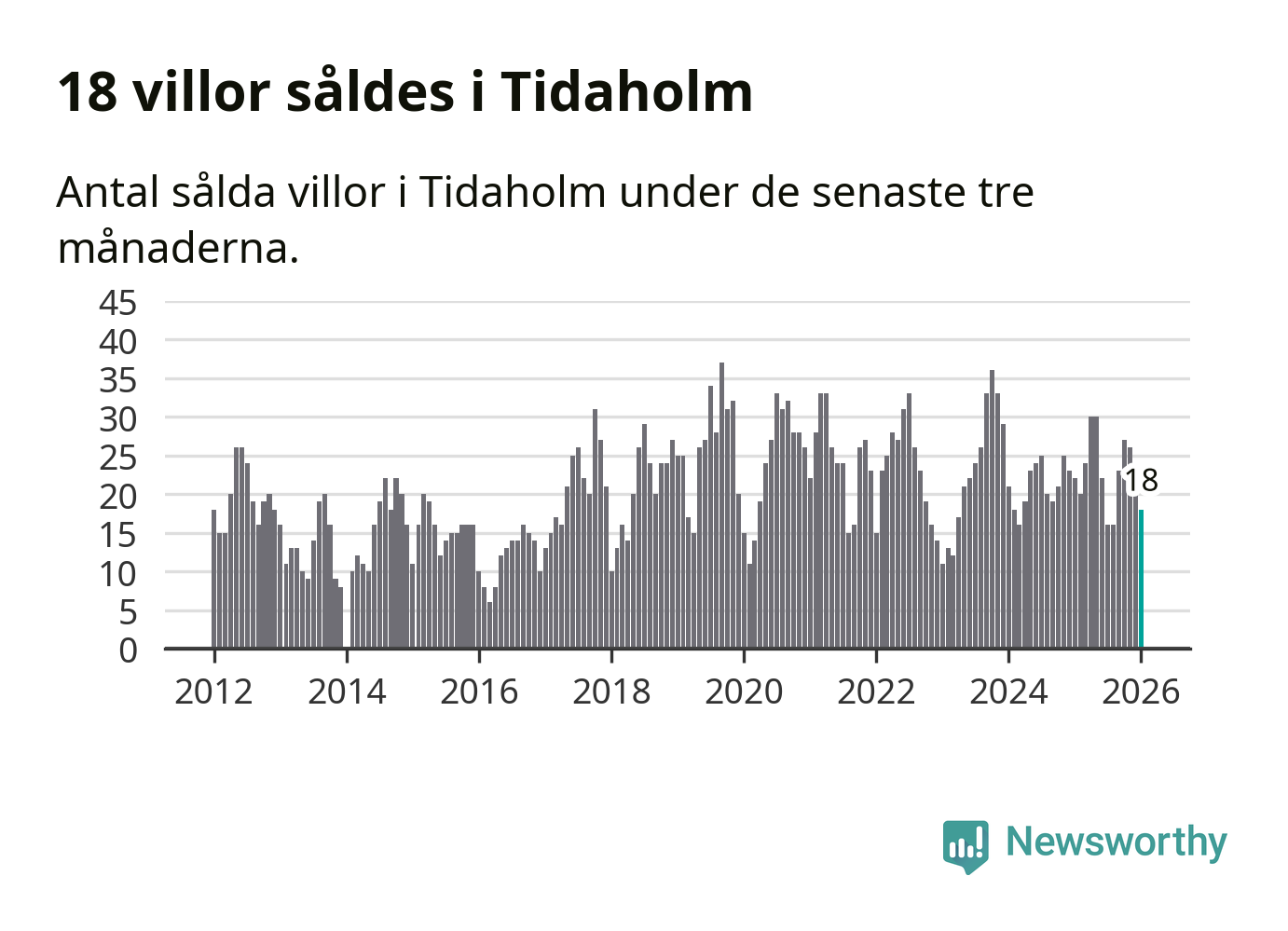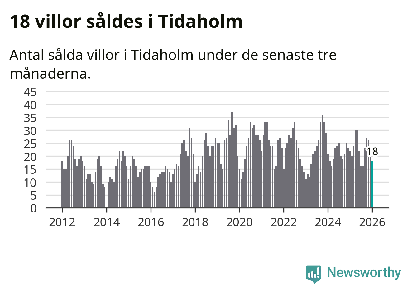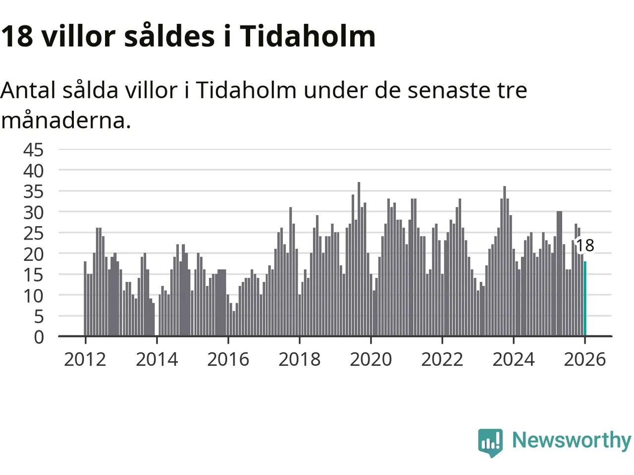 Mellan november och januari gjordes sammanlagt 18 affärer med villor i Tidaholms kommun. Det kan jämföras med 22 vid motsvarande tid i fjol.