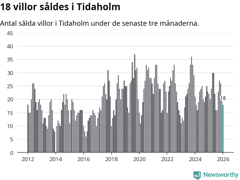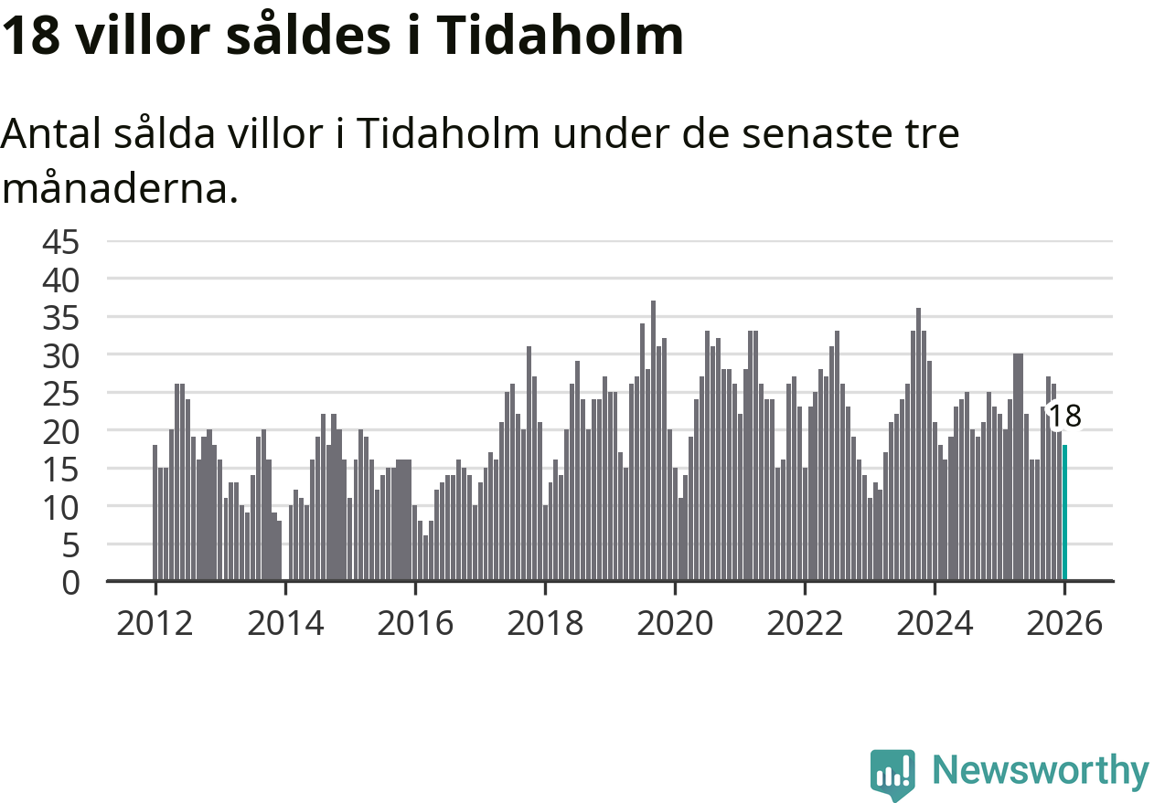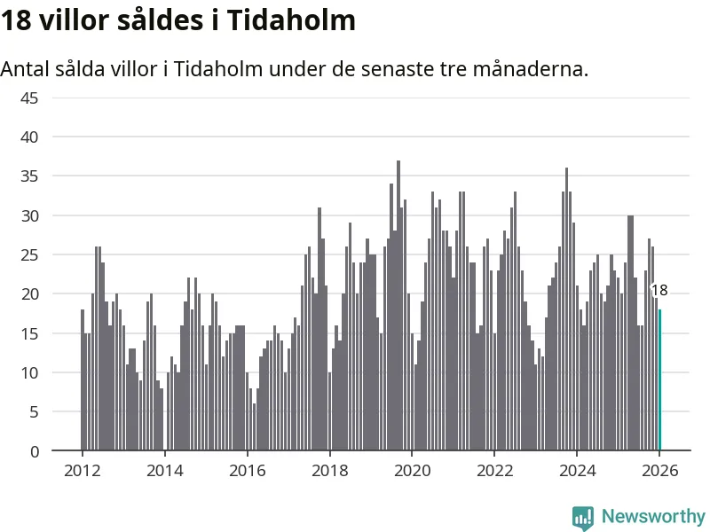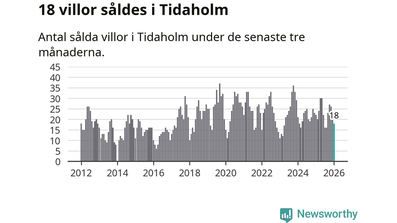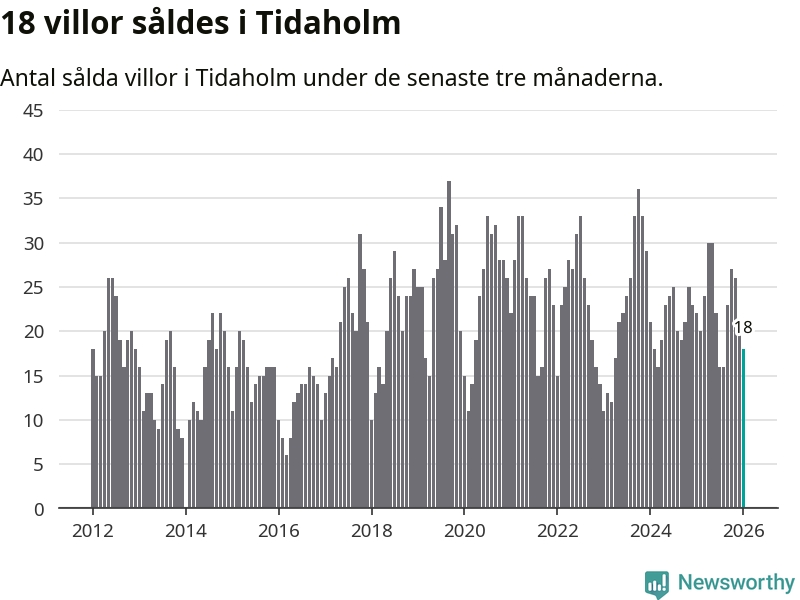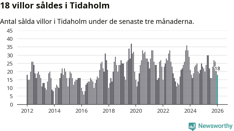Mellan november och januari gjordes sammanlagt 18 affärer med villor i Tidaholms kommun. Det kan jämföras med 22 vid motsvarande tid i fjol.