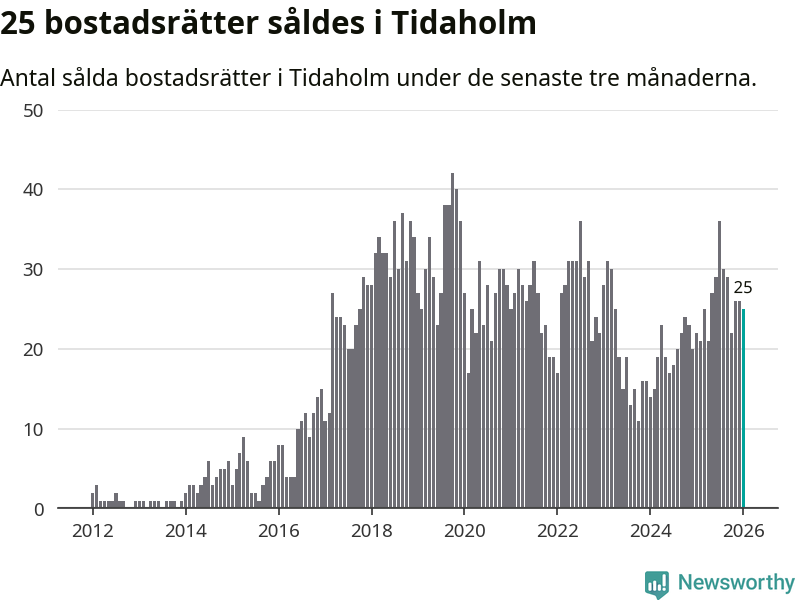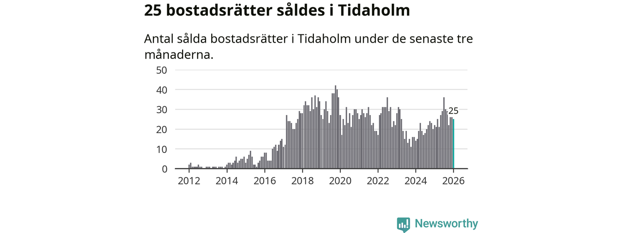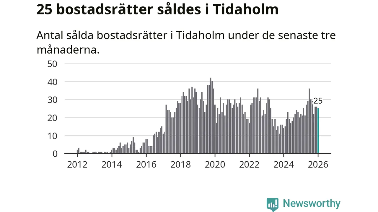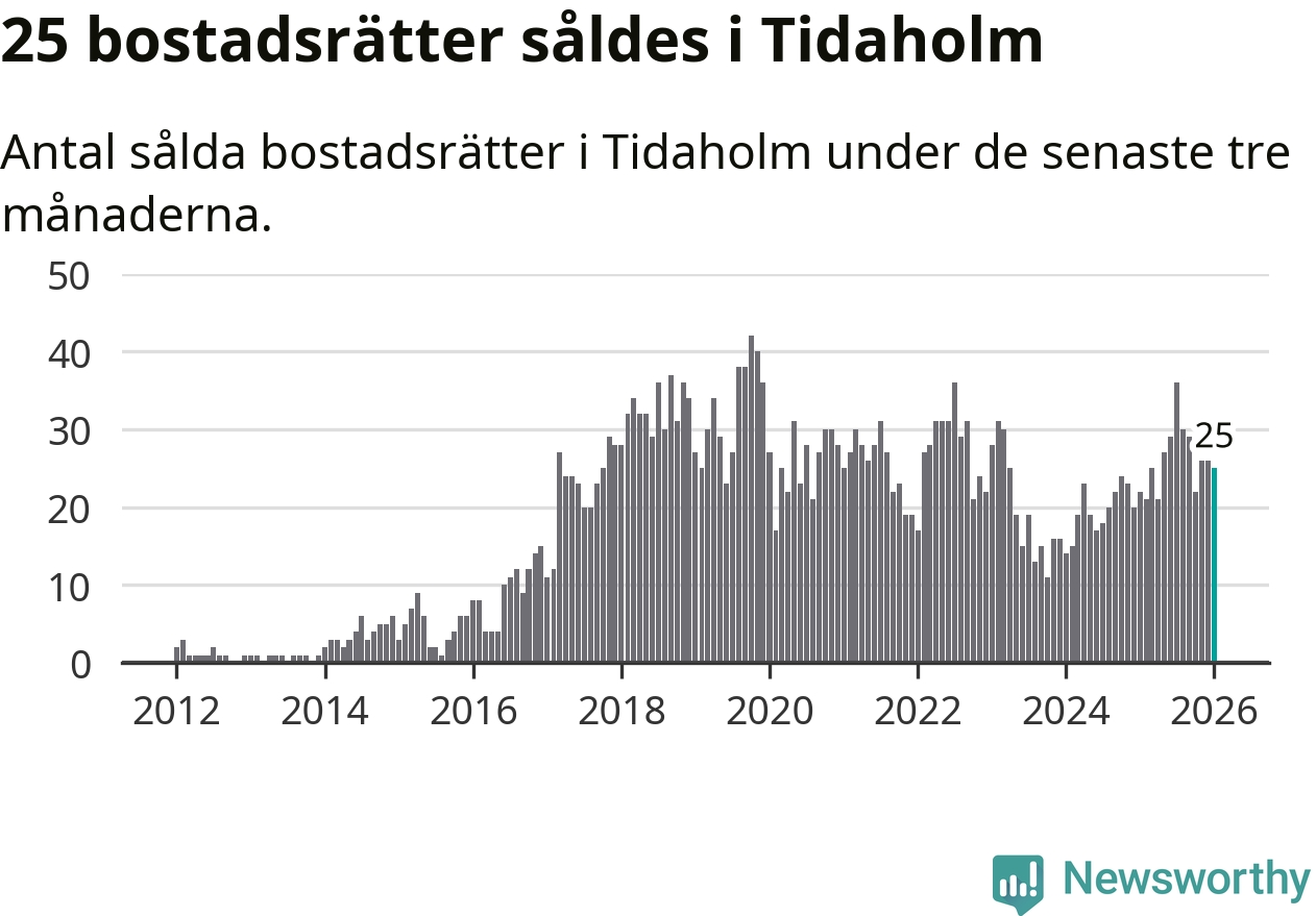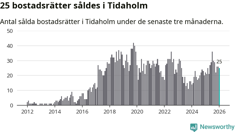 Mellan november och januari gjordes sammanlagt 25 affärer med bostadsrätter i Tidaholms kommun. Det kan jämföras med 22 vid motsvarande tid i fjol.