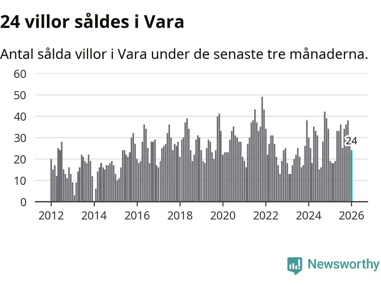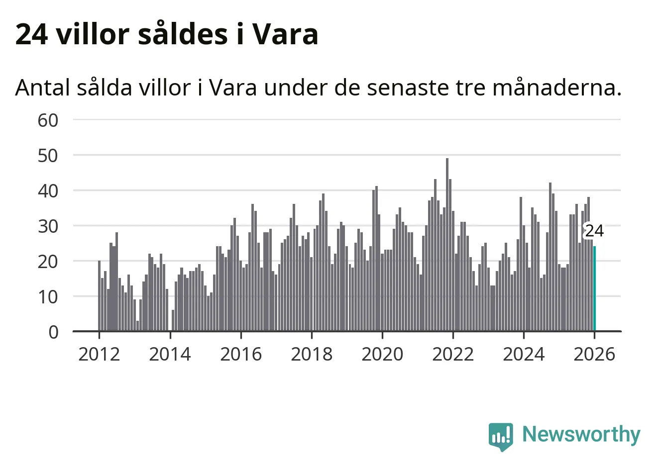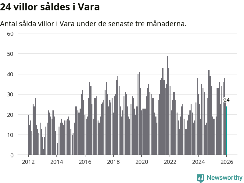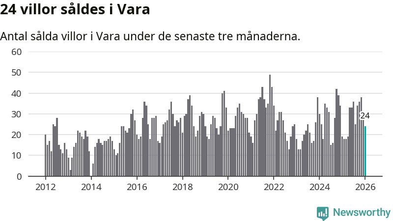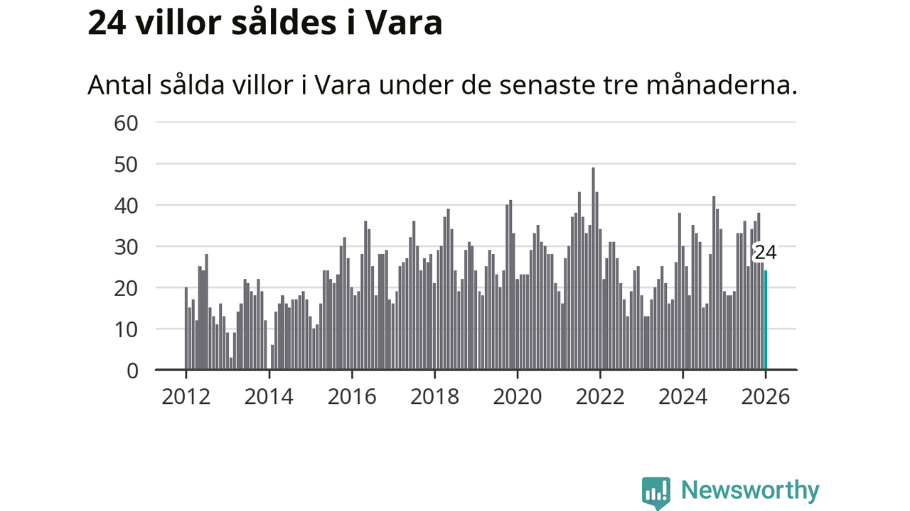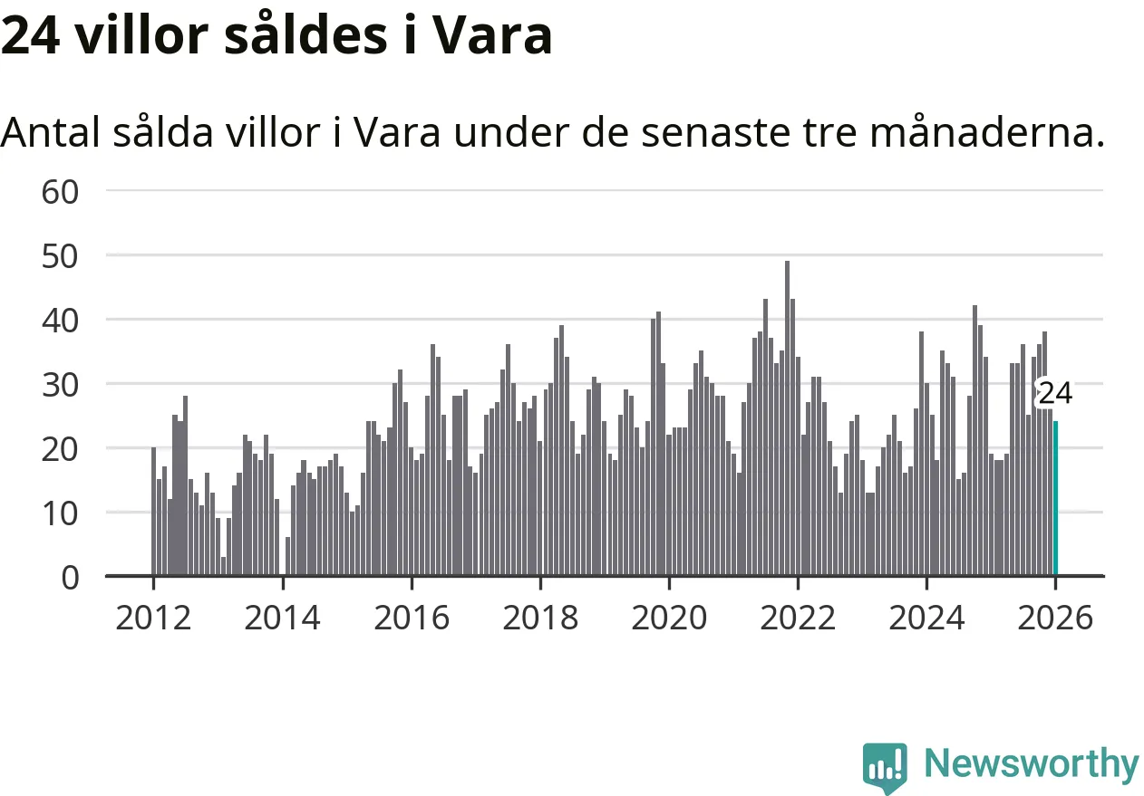 Mellan november och januari gjordes sammanlagt 24 affärer med villor i Vara kommun. Det kan jämföras med 19 vid motsvarande tid i fjol.