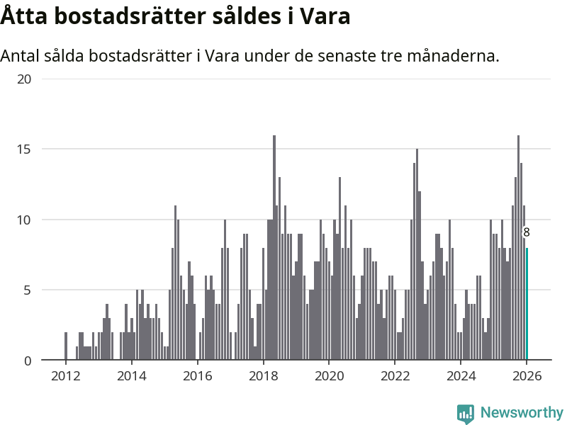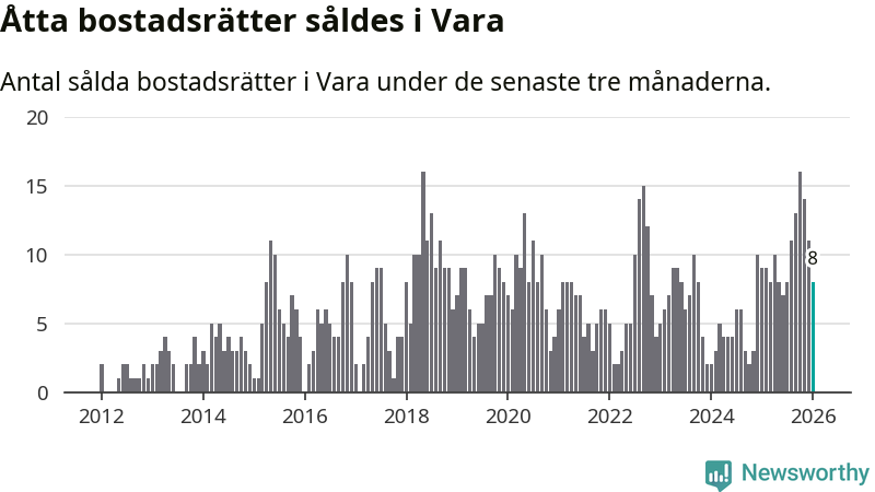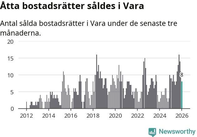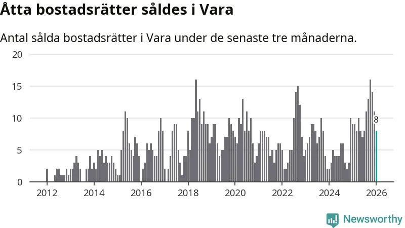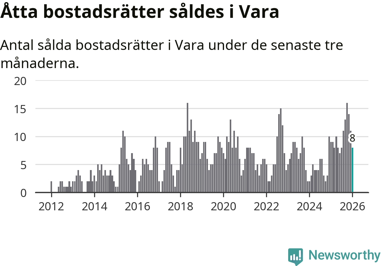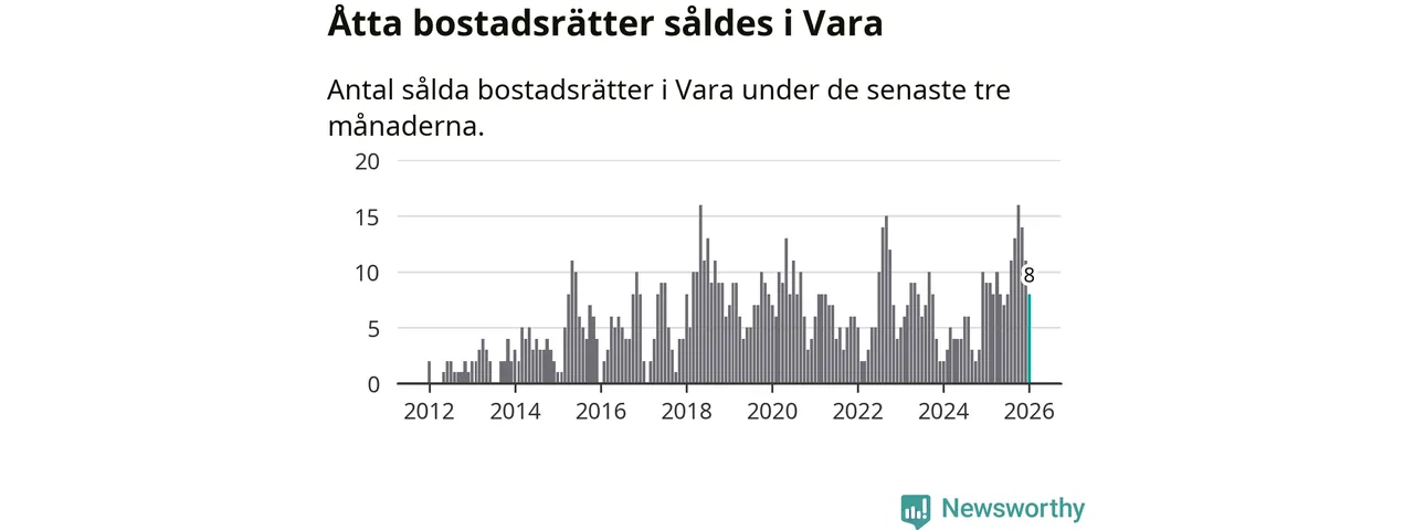 Mellan november och januari gjordes sammanlagt åtta affärer med bostadsrätter i Vara kommun. Det kan jämföras med nio vid motsvarande tid i fjol.