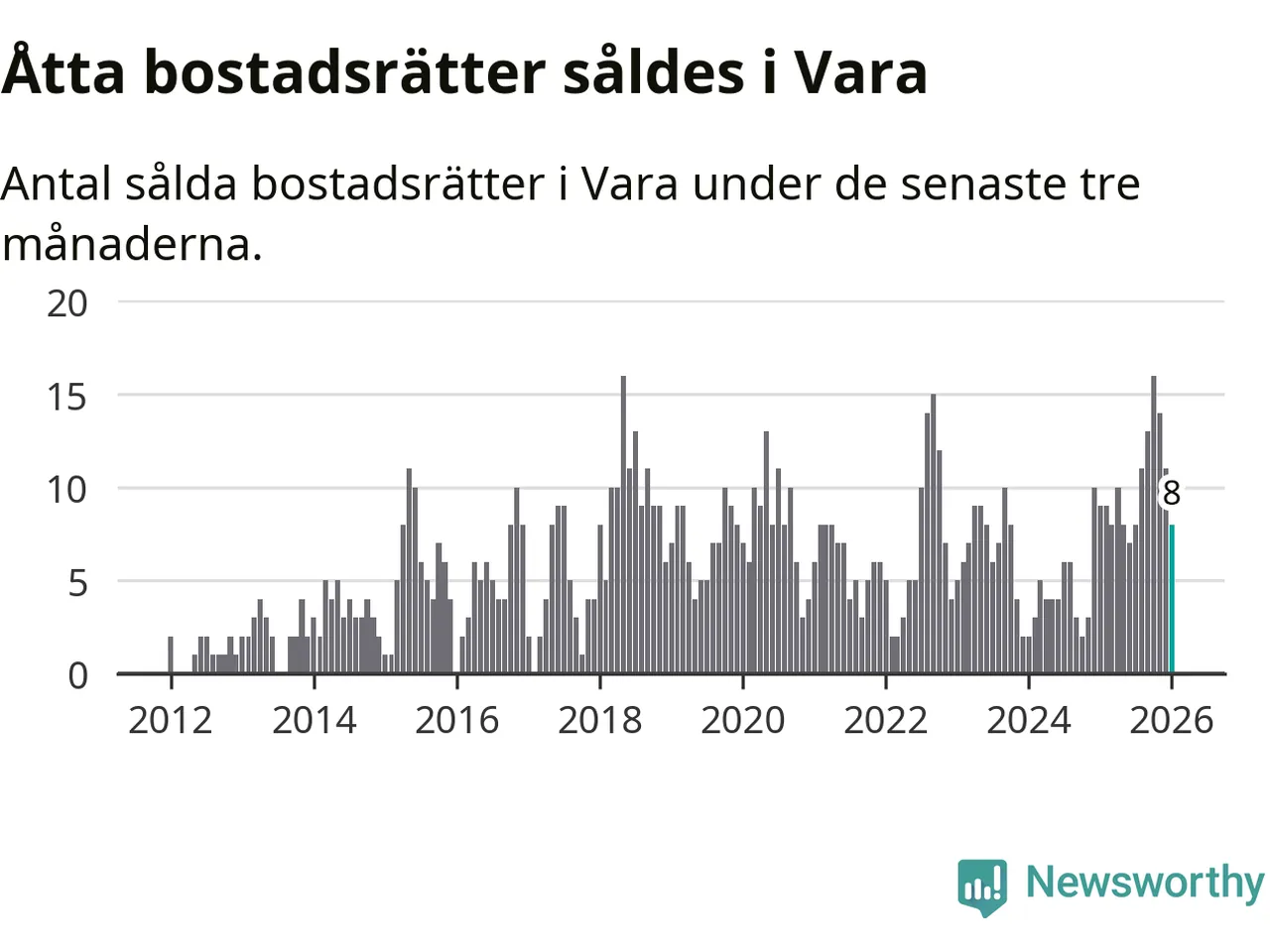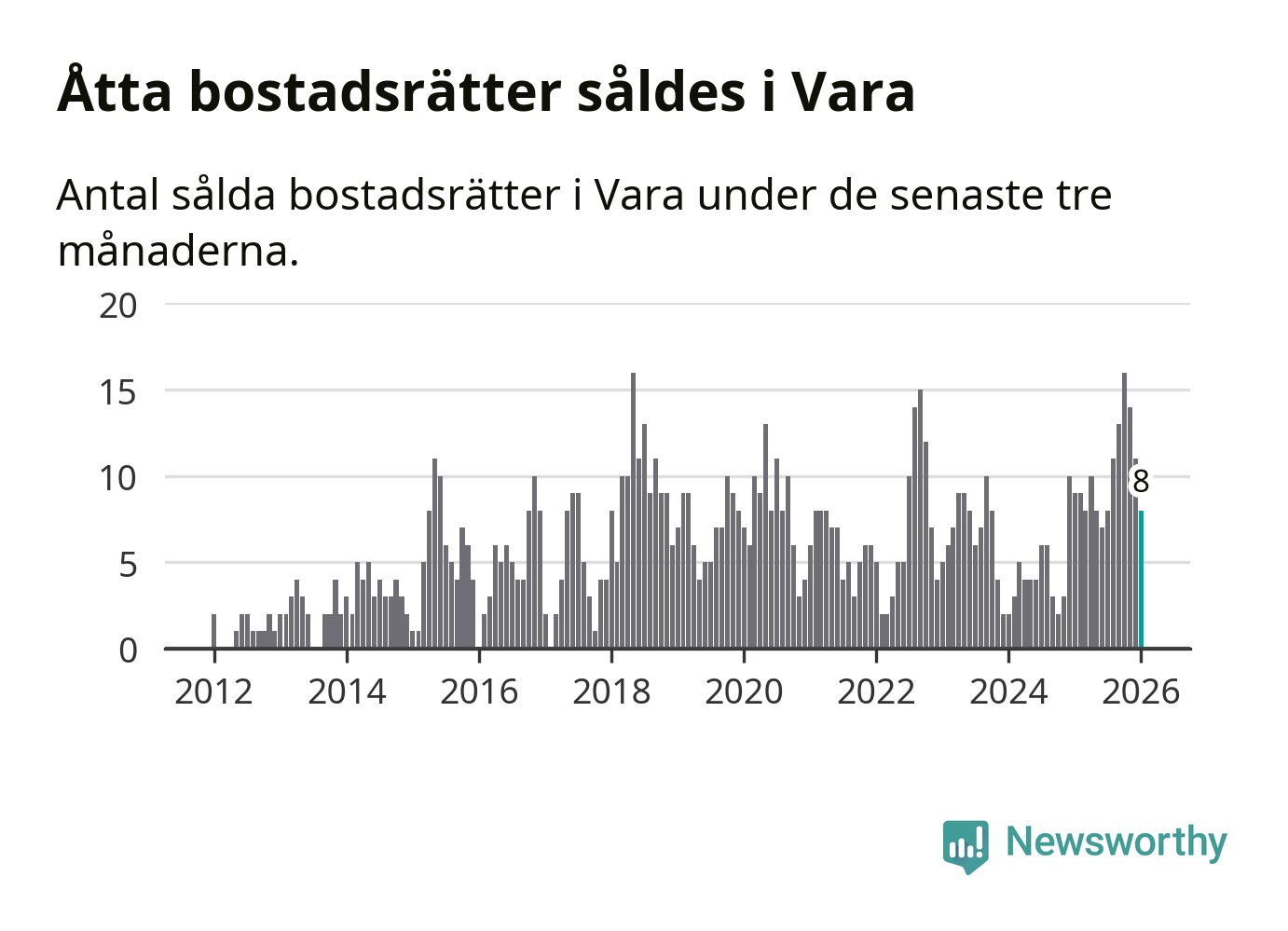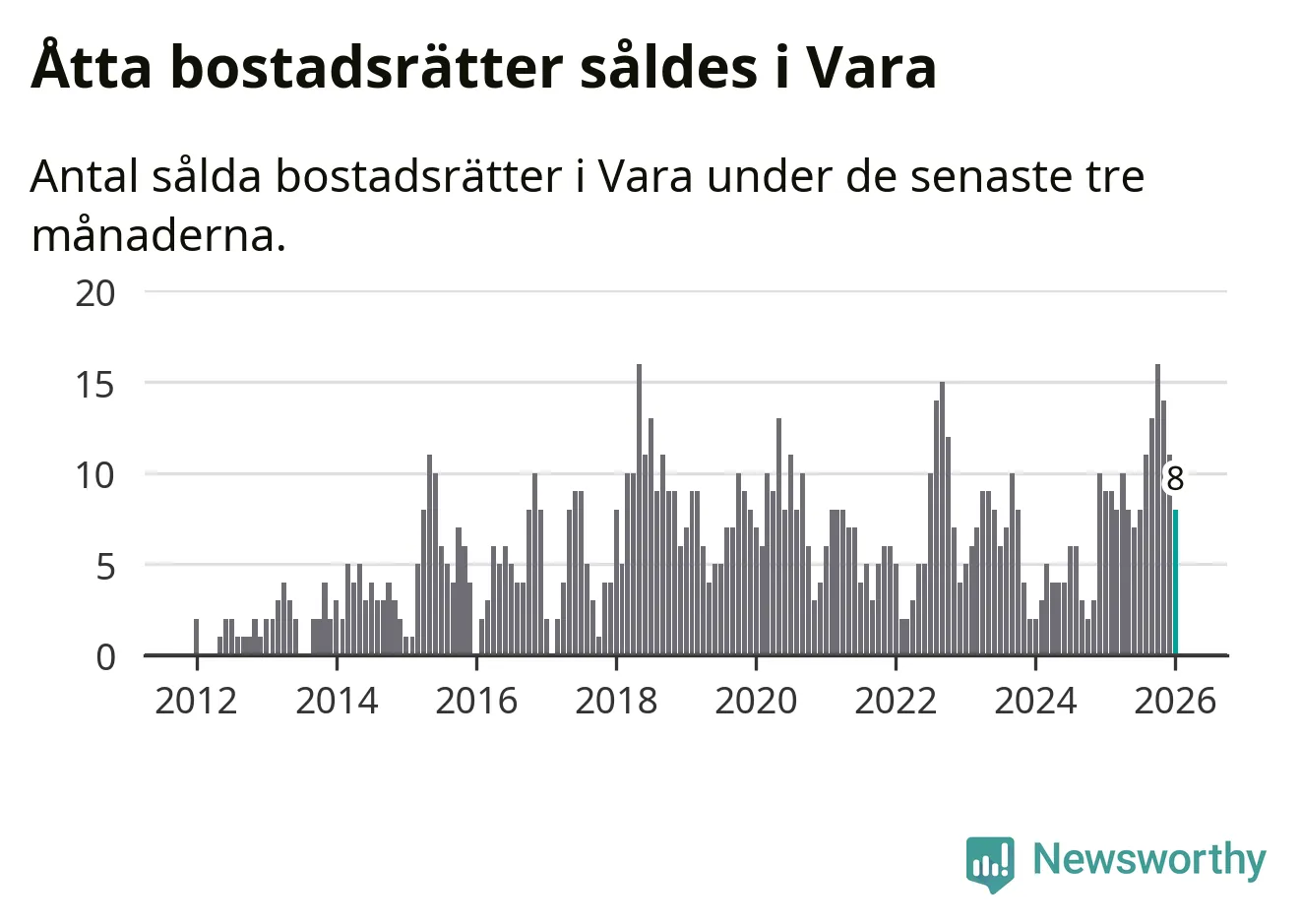 Mellan november och januari gjordes sammanlagt åtta affärer med bostadsrätter i Vara kommun. Det kan jämföras med nio vid motsvarande tid i fjol.