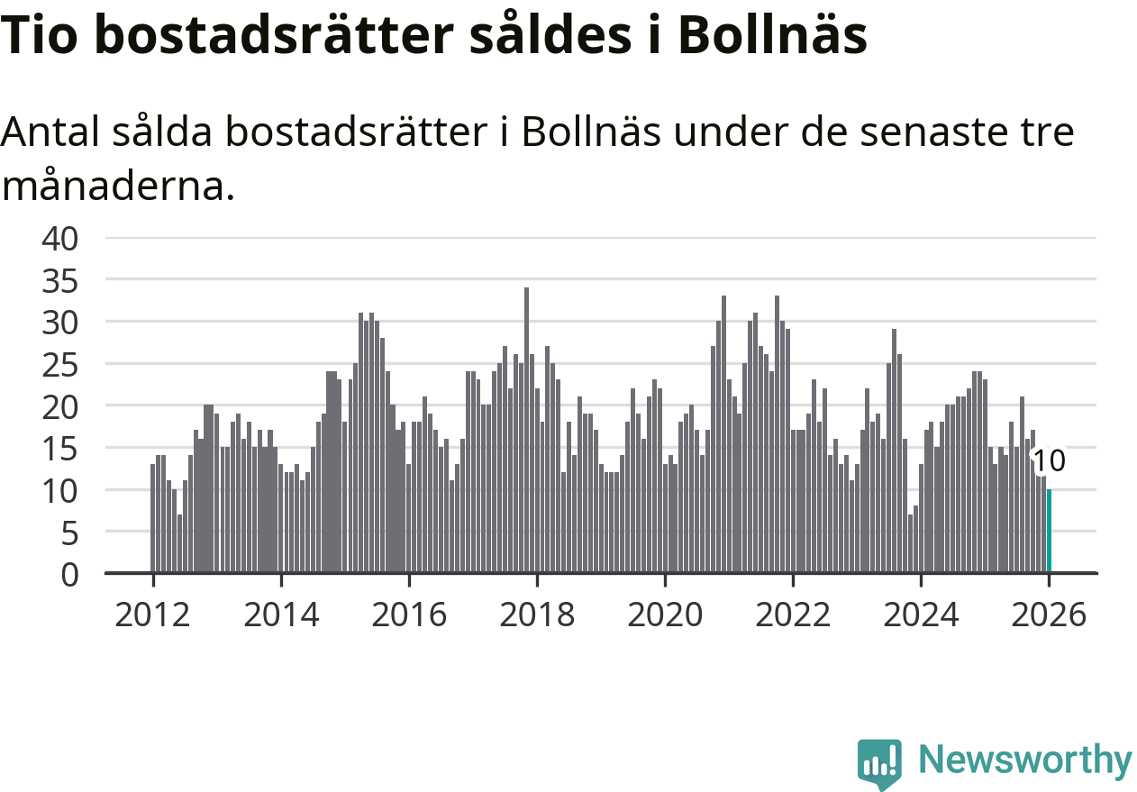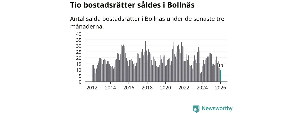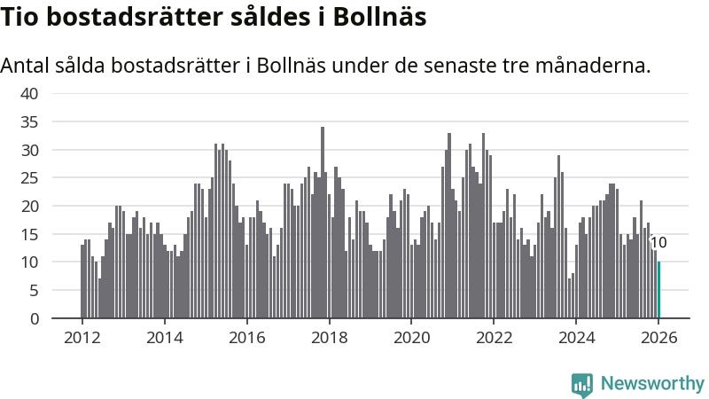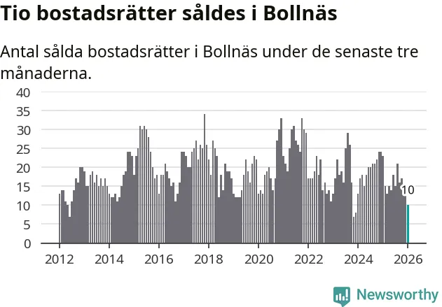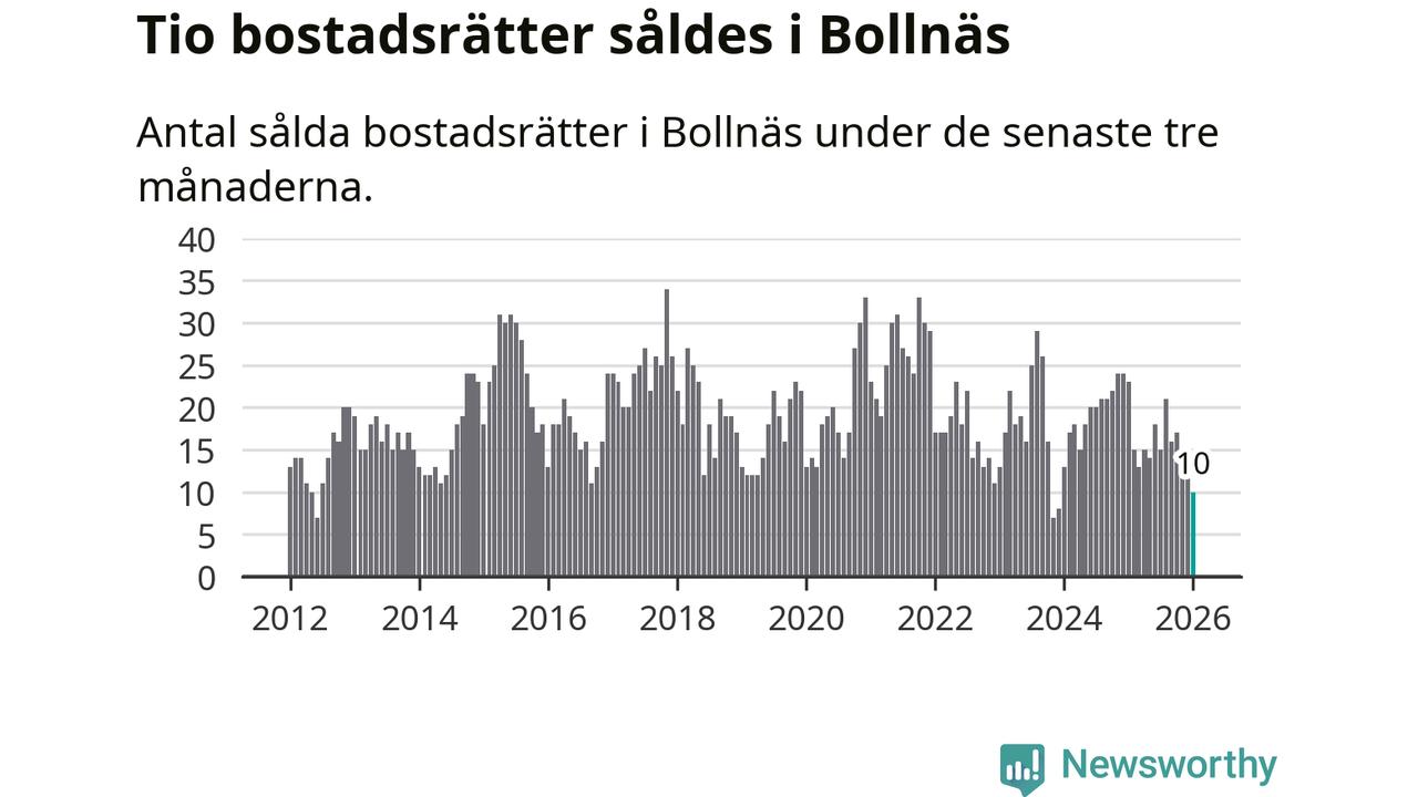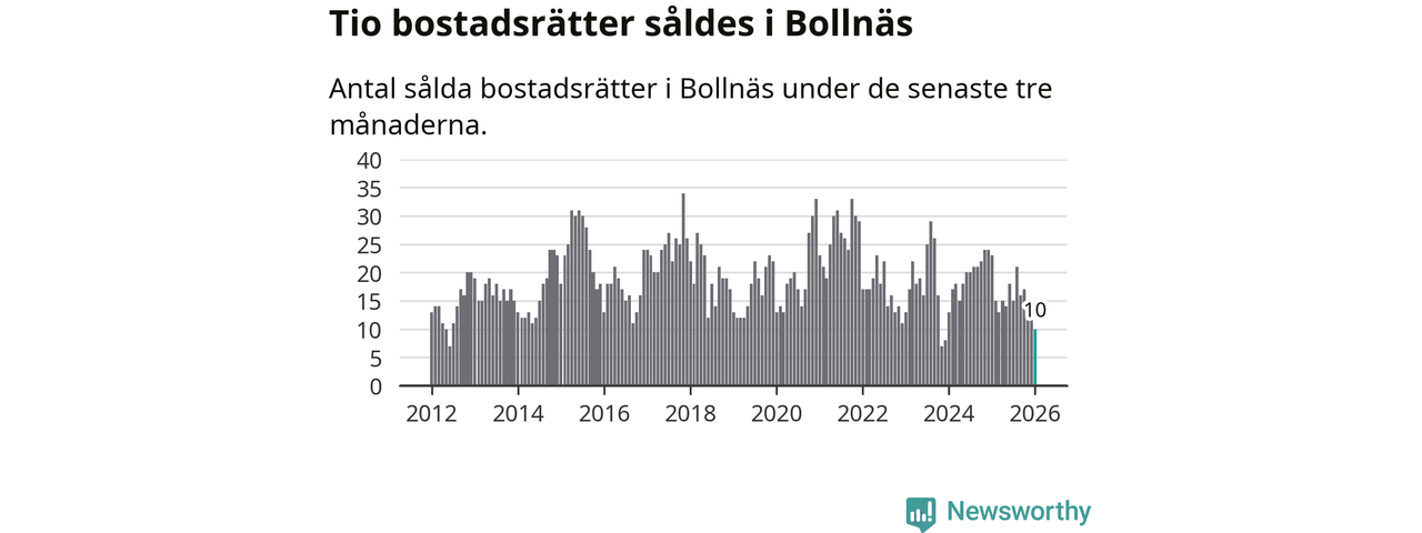 Mellan november och januari gjordes sammanlagt tio affärer med bostadsrätter i Bollnäs kommun. Det kan jämföras med 23 vid motsvarande tid i fjol.