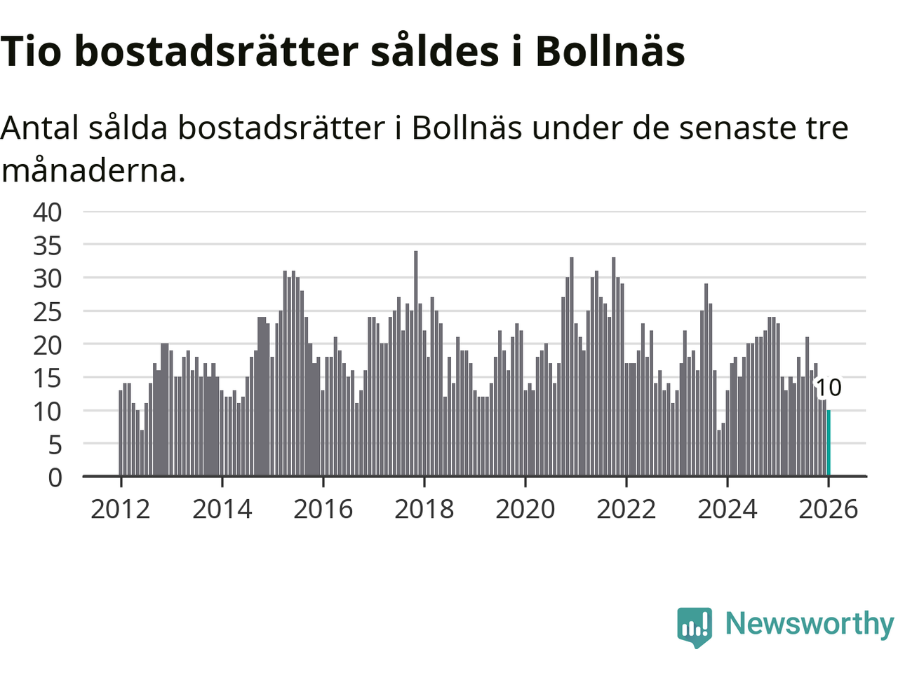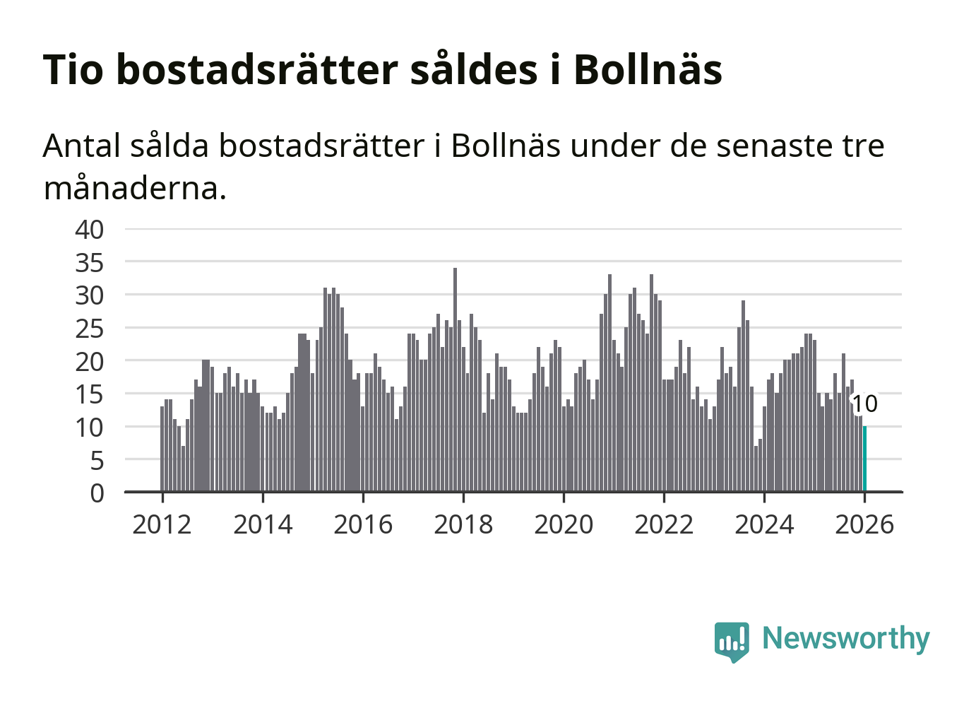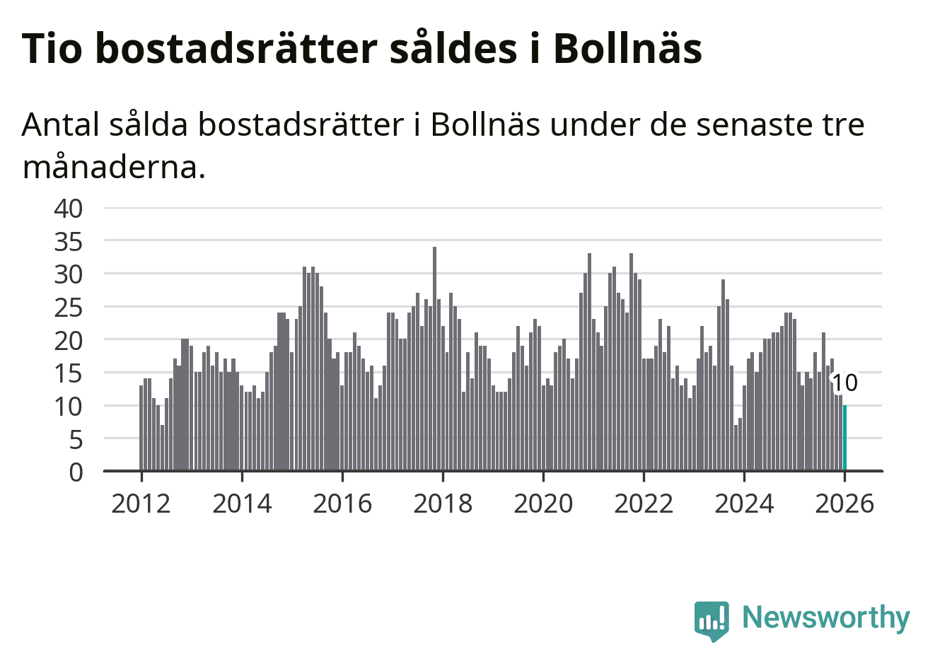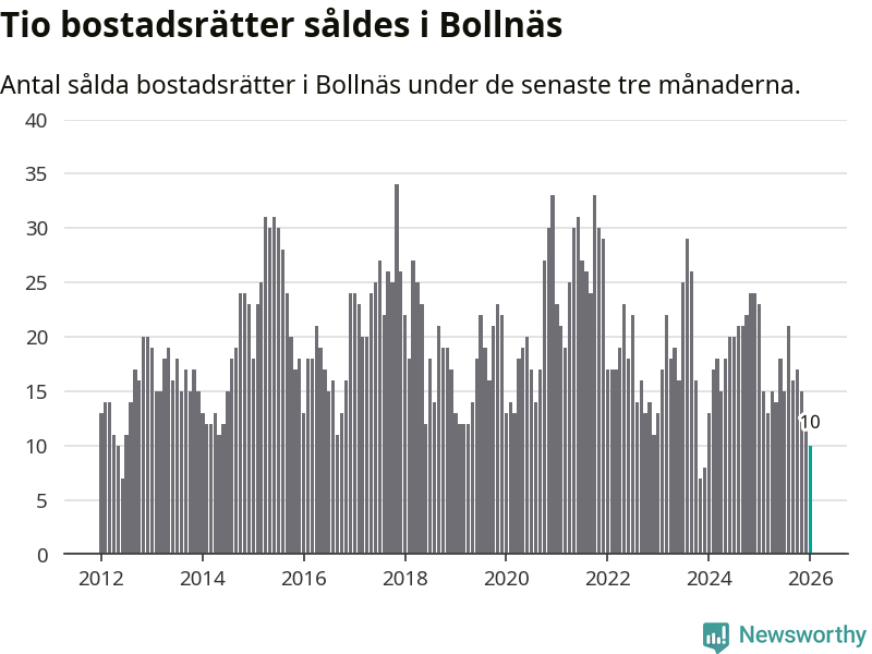 Mellan november och januari gjordes sammanlagt tio affärer med bostadsrätter i Bollnäs kommun. Det kan jämföras med 23 vid motsvarande tid i fjol.