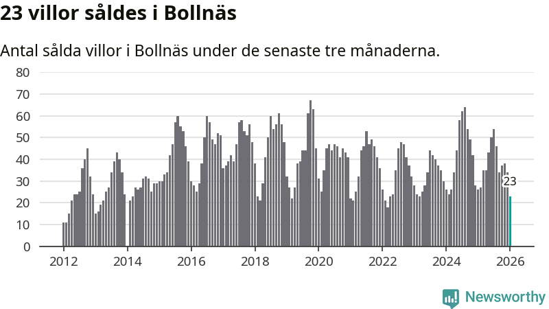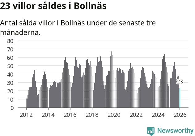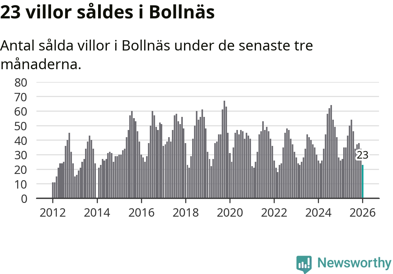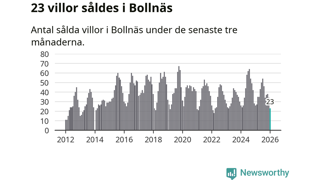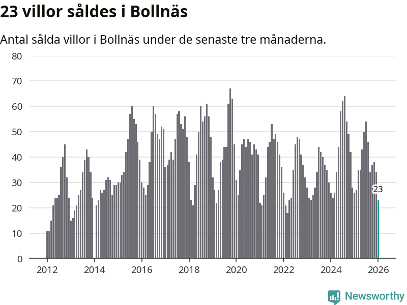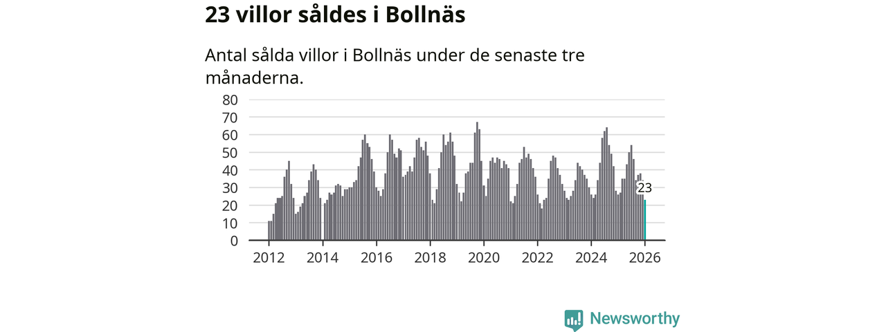 Mellan november och januari gjordes sammanlagt 23 affärer med villor i Bollnäs kommun. Det kan jämföras med 26 vid motsvarande tid i fjol.