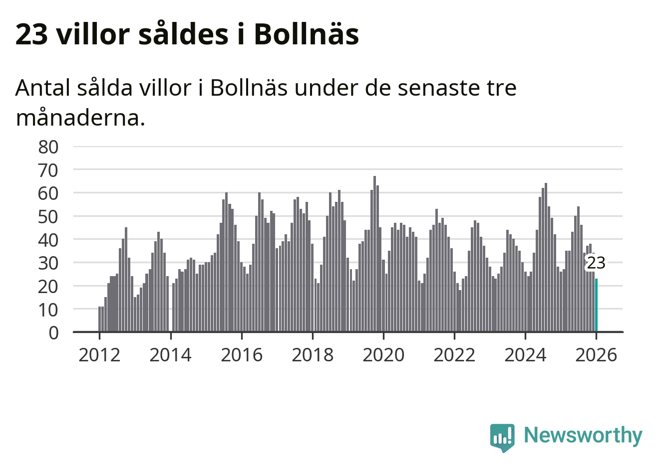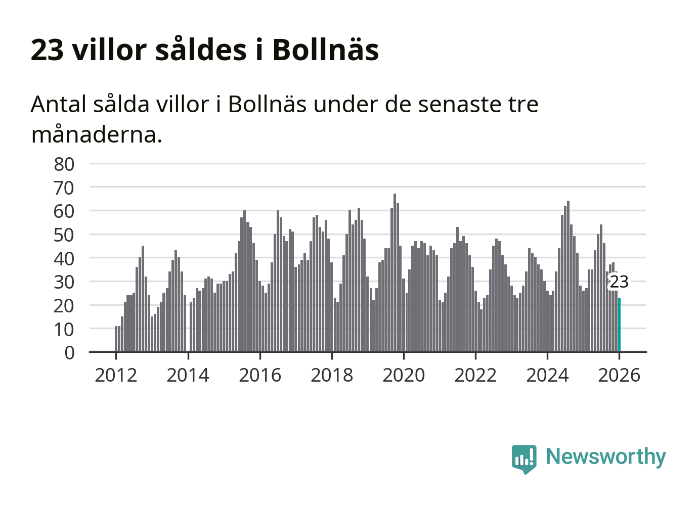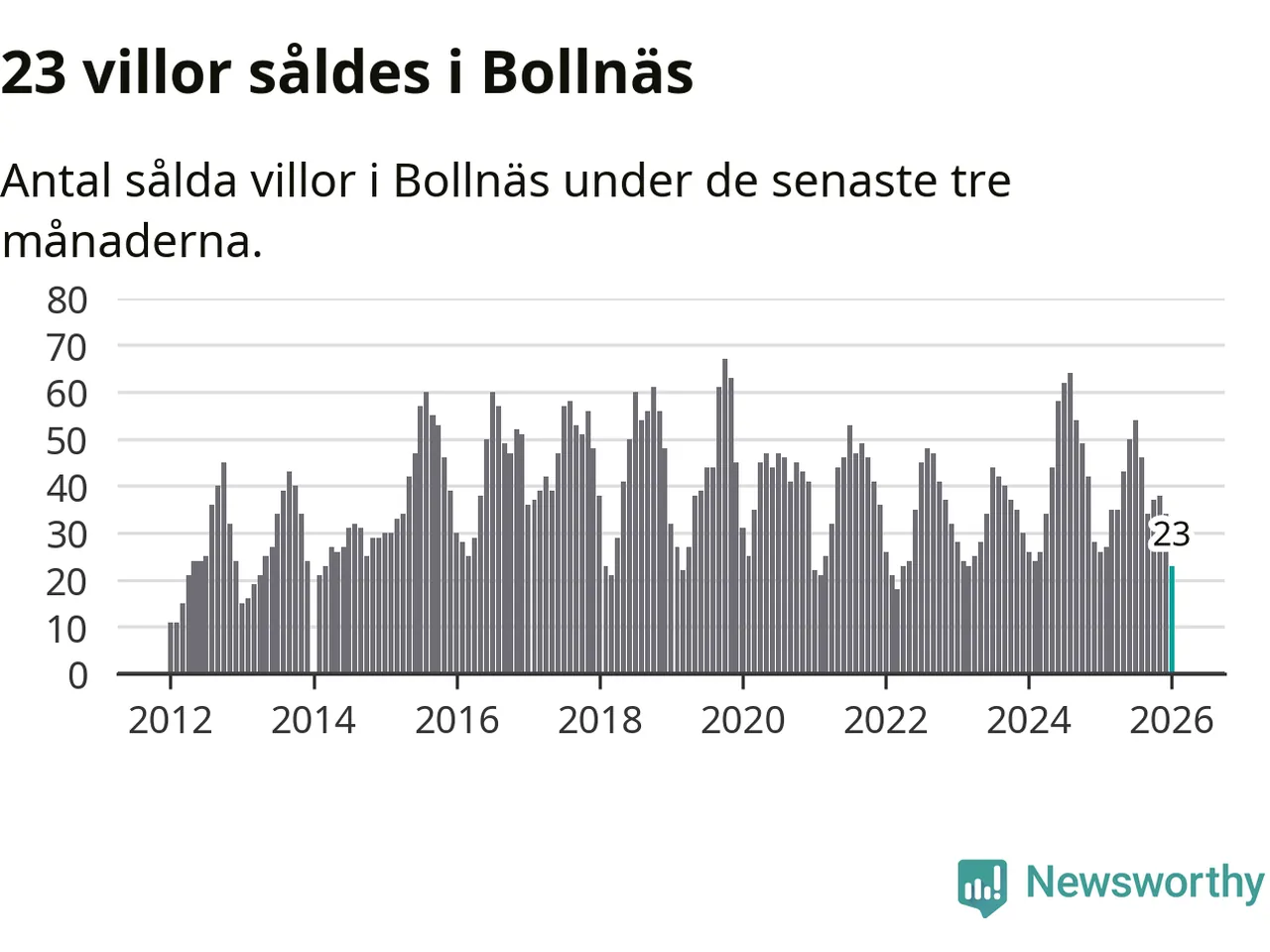 Mellan november och januari gjordes sammanlagt 23 affärer med villor i Bollnäs kommun. Det kan jämföras med 26 vid motsvarande tid i fjol.