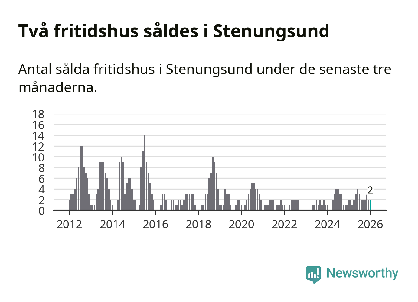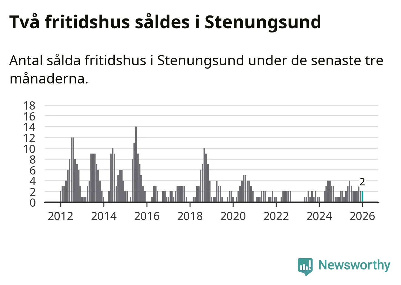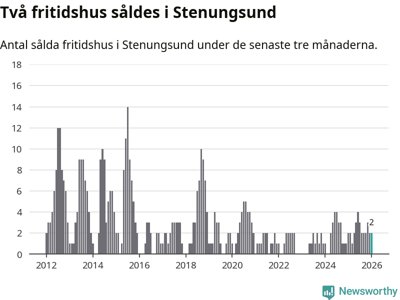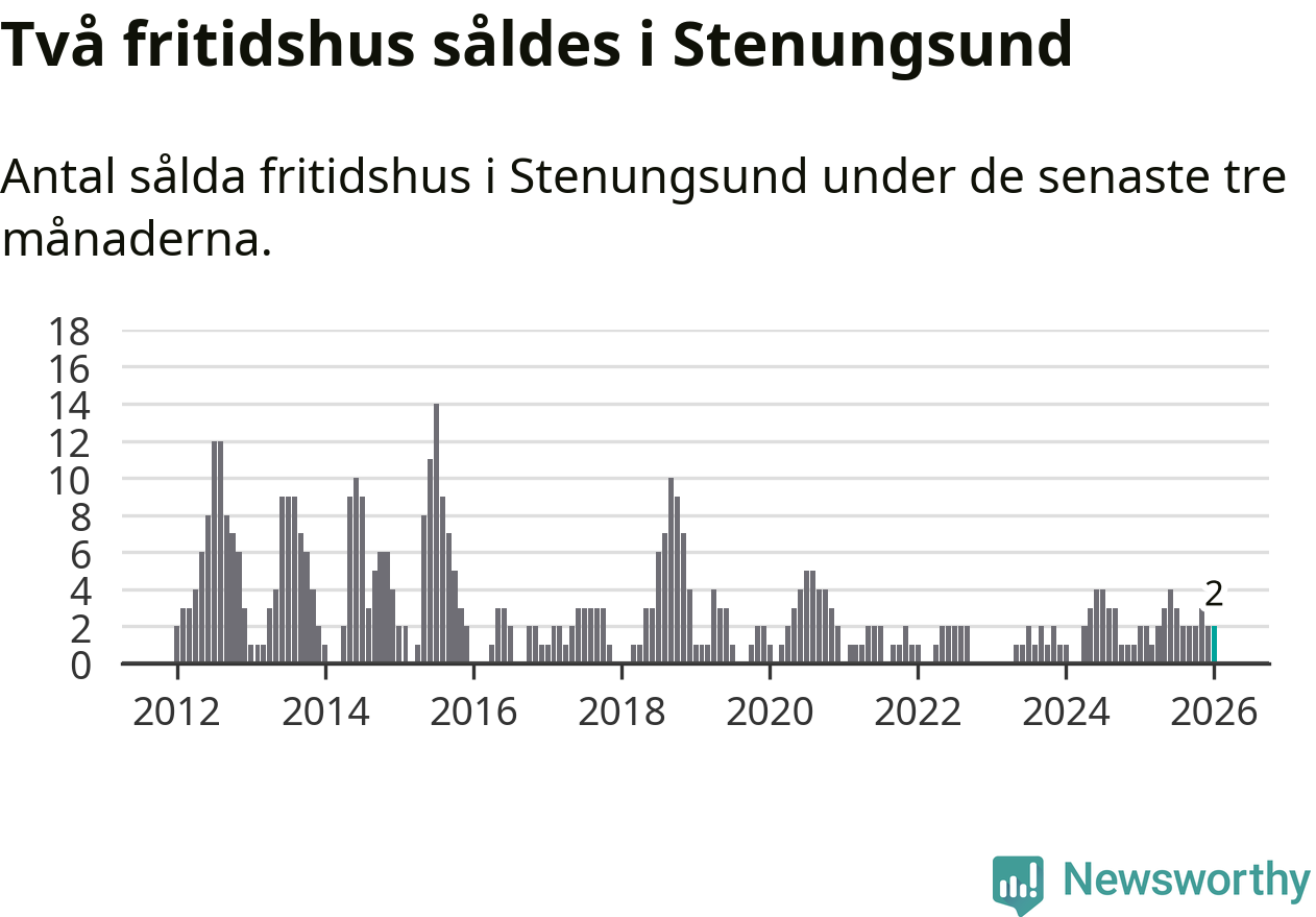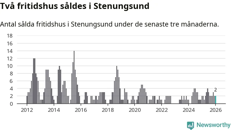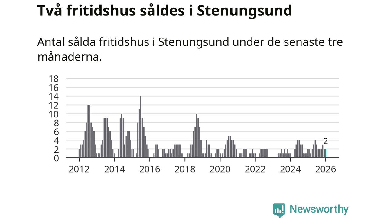 Mellan november och januari gjordes sammanlagt två affärer med fritidshus i Stenungsunds kommun. Det är lika många affärer som vid motsvarande tid i fjol.