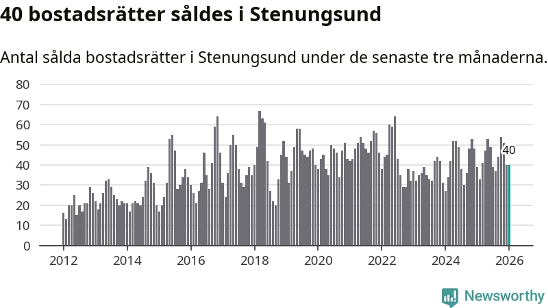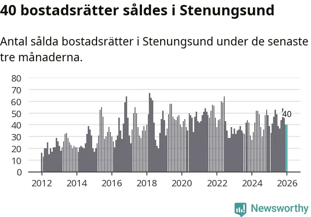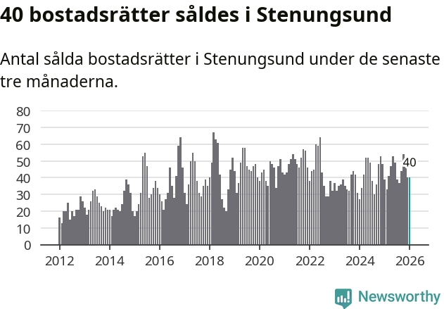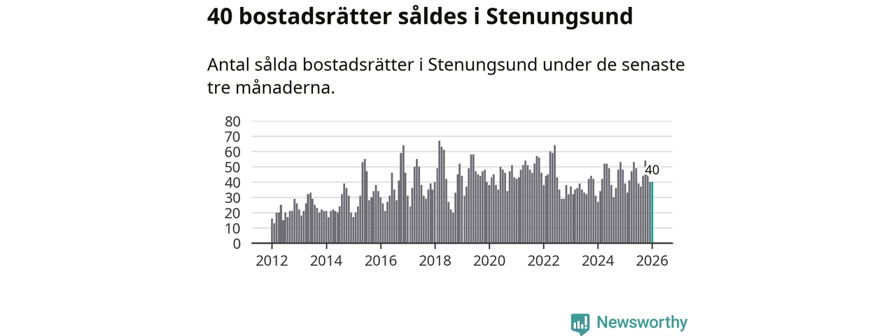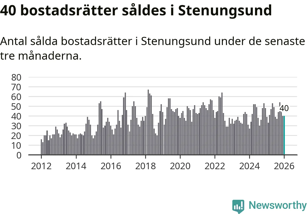Sammanlagt såldes 40 bostadsrätter i Stenungsunds kommun mellan november och januari till ett genomsnittligt pris på 2,5 miljoner kronor. I fjol gjordes 39 affärer vid den här tiden på året.