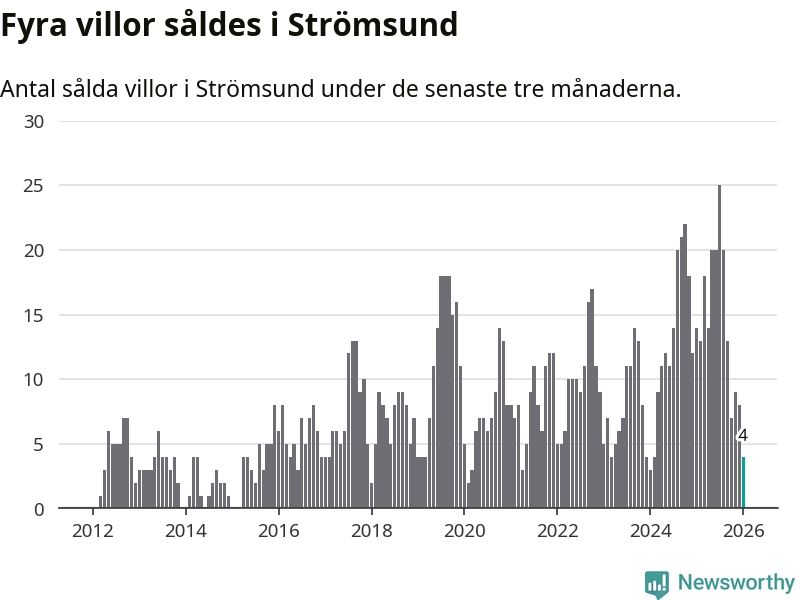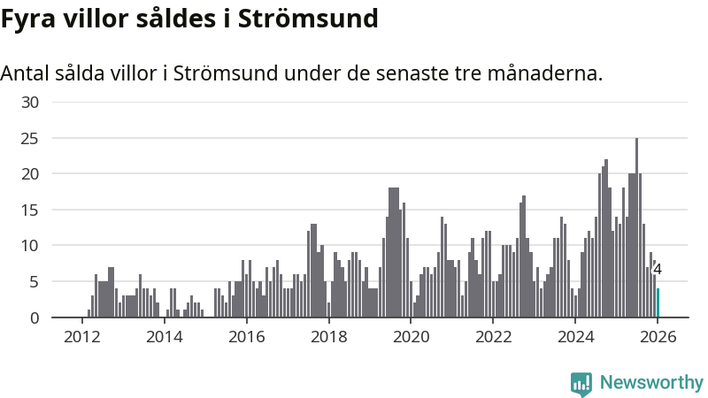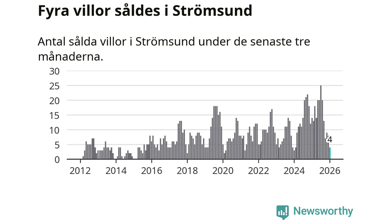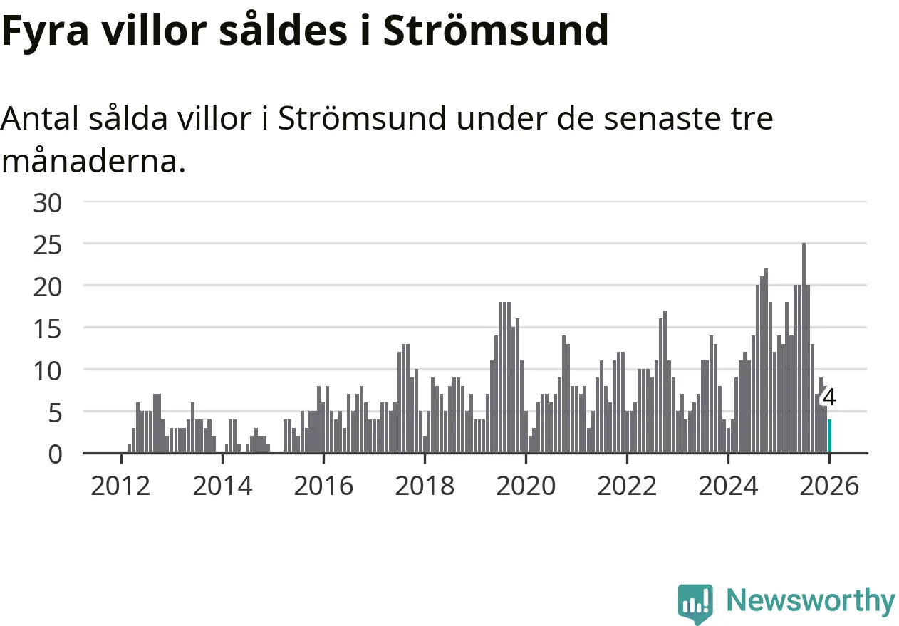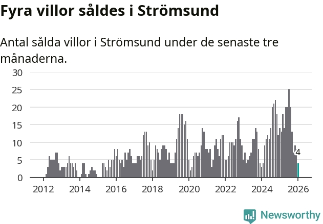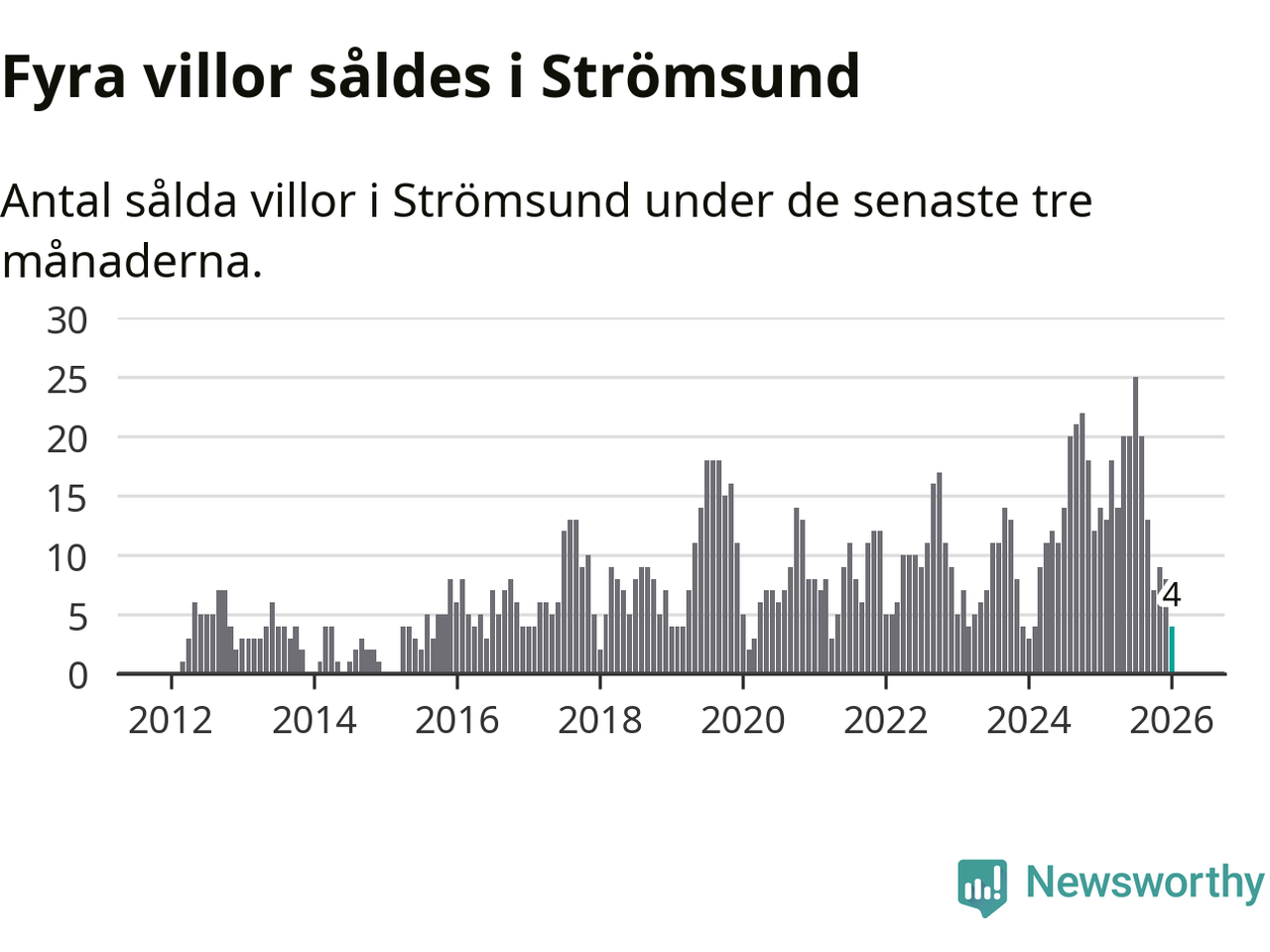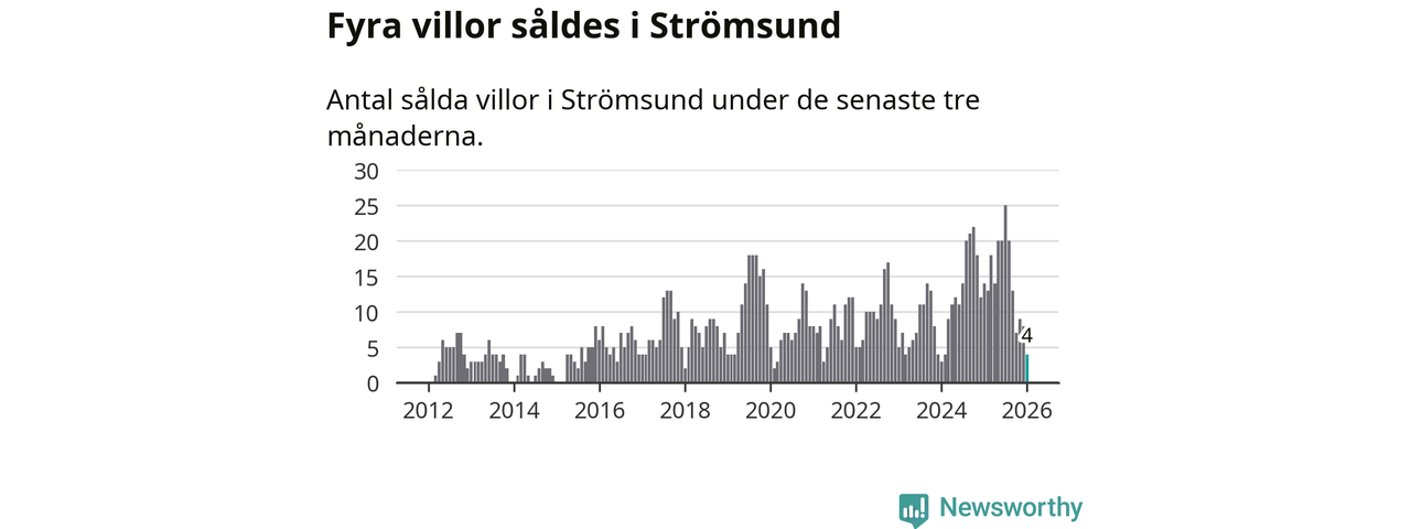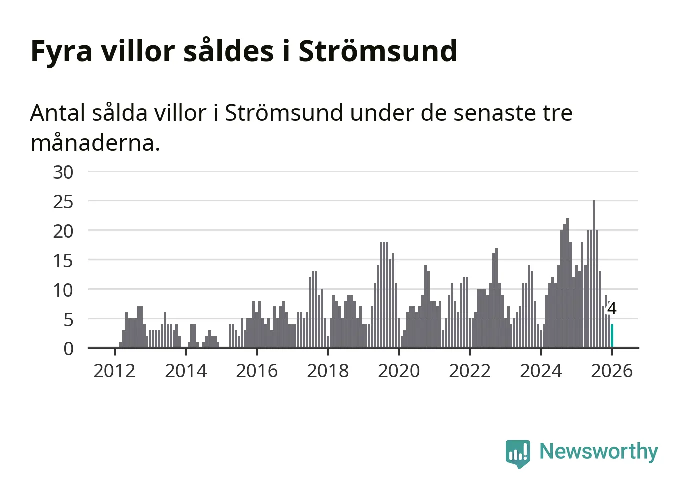 Mellan november och januari gjordes sammanlagt fyra affärer med villor i Strömsunds kommun. Det kan jämföras med 14 vid motsvarande tid i fjol.
