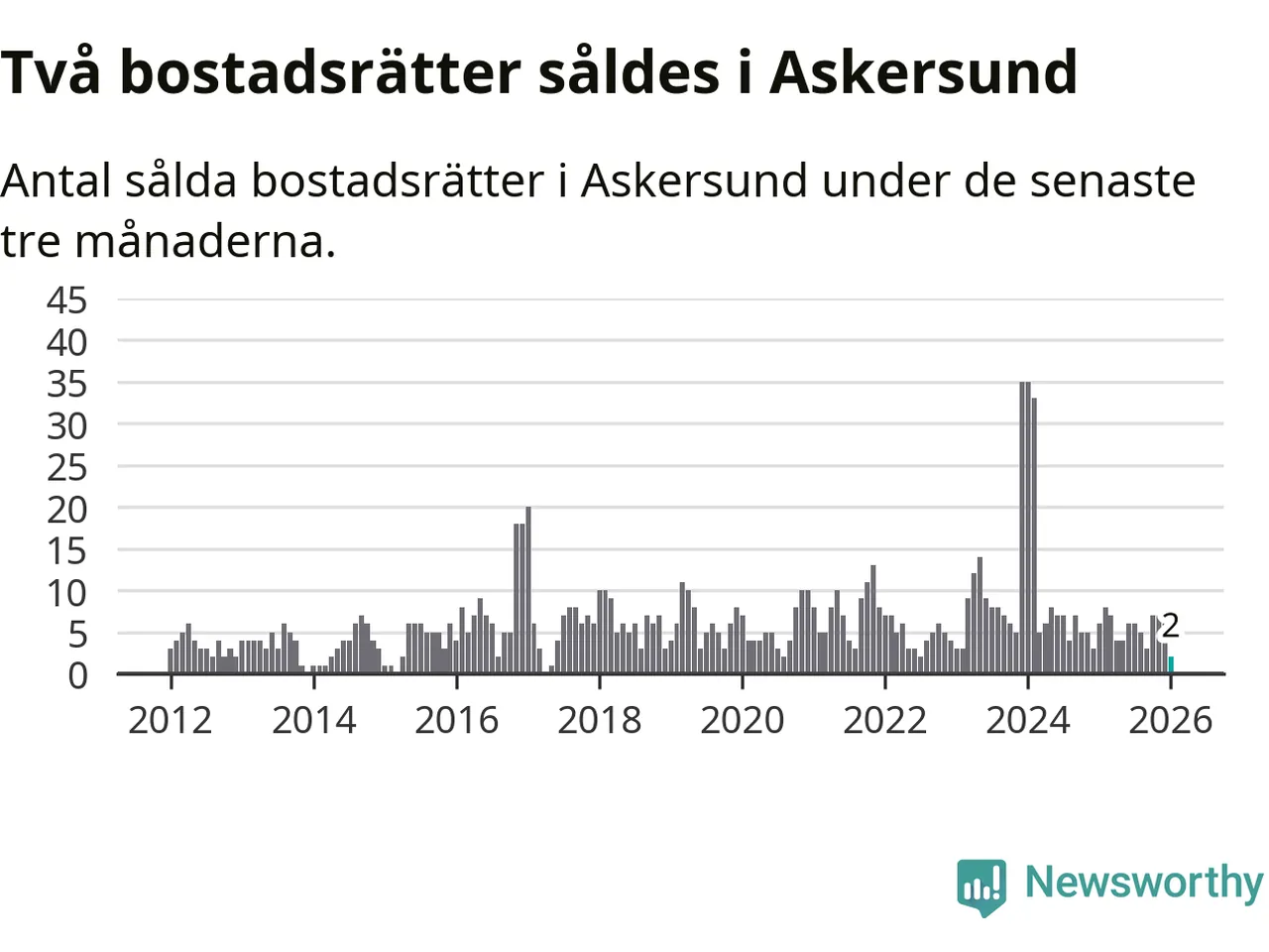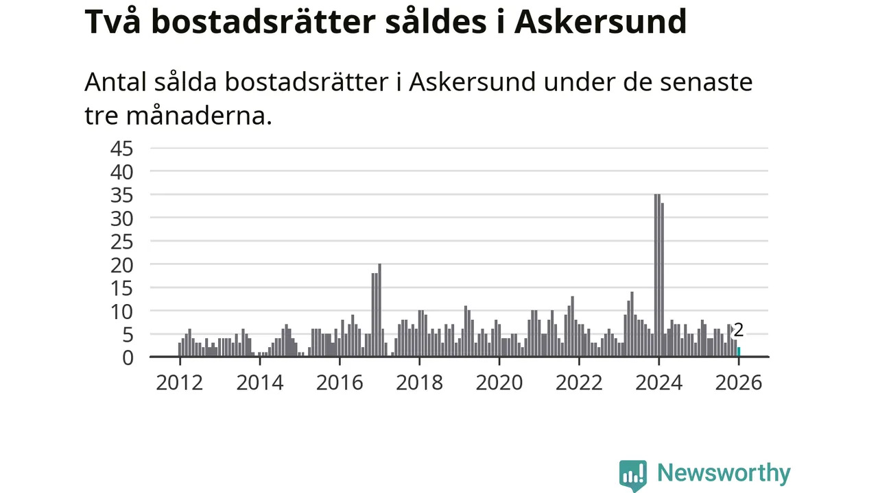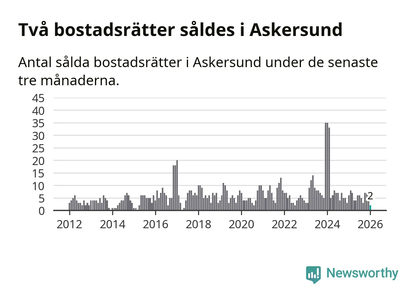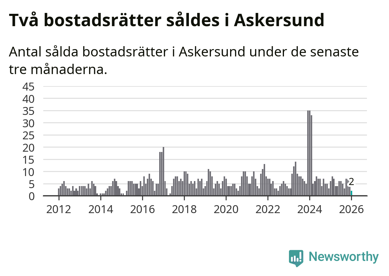 Mellan november och januari gjordes sammanlagt två affärer med bostadsrätter i Askersunds kommun. Det kan jämföras med sex vid motsvarande tid i fjol.