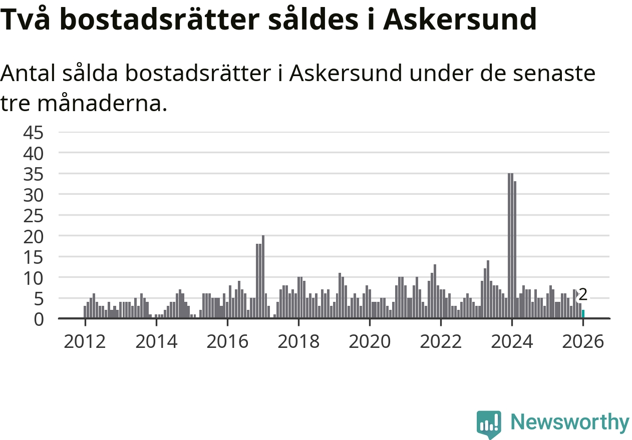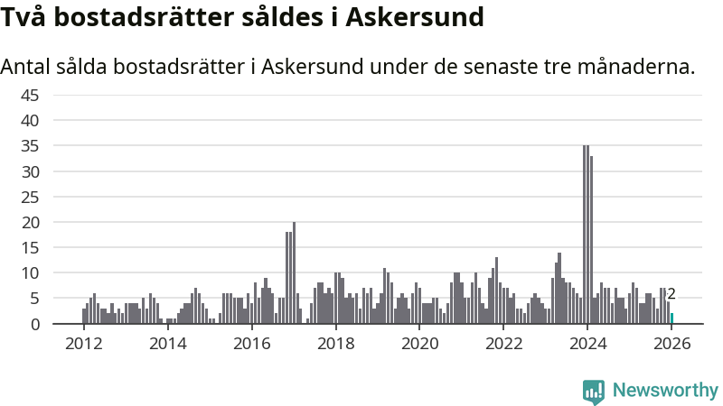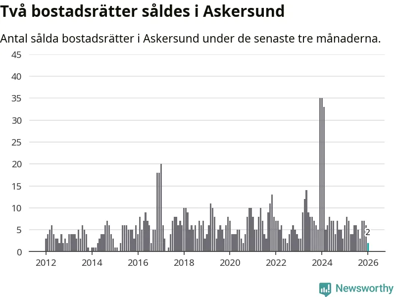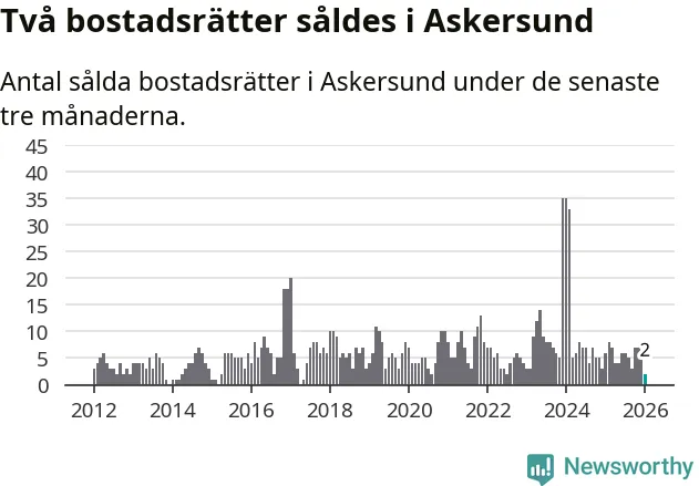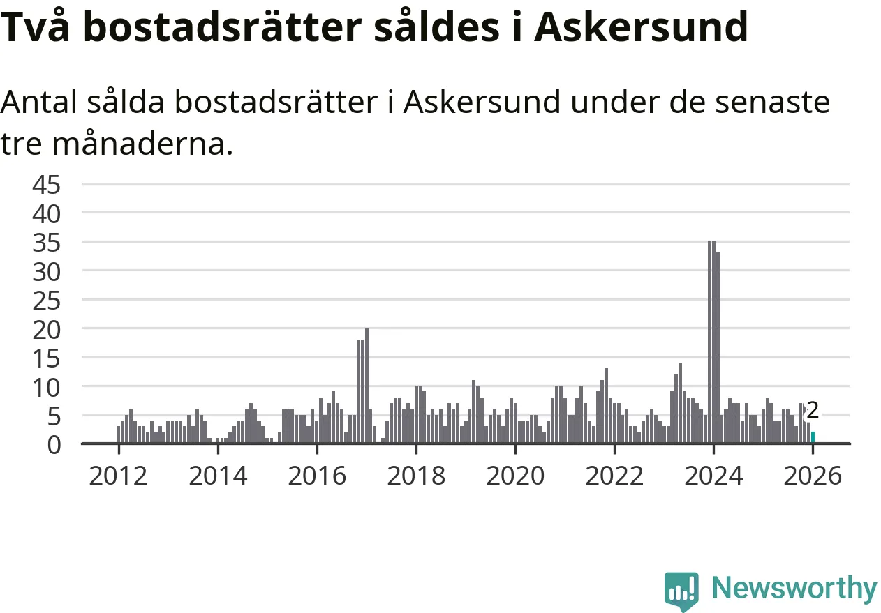 Mellan november och januari gjordes sammanlagt två affärer med bostadsrätter i Askersunds kommun. Det kan jämföras med sex vid motsvarande tid i fjol.
