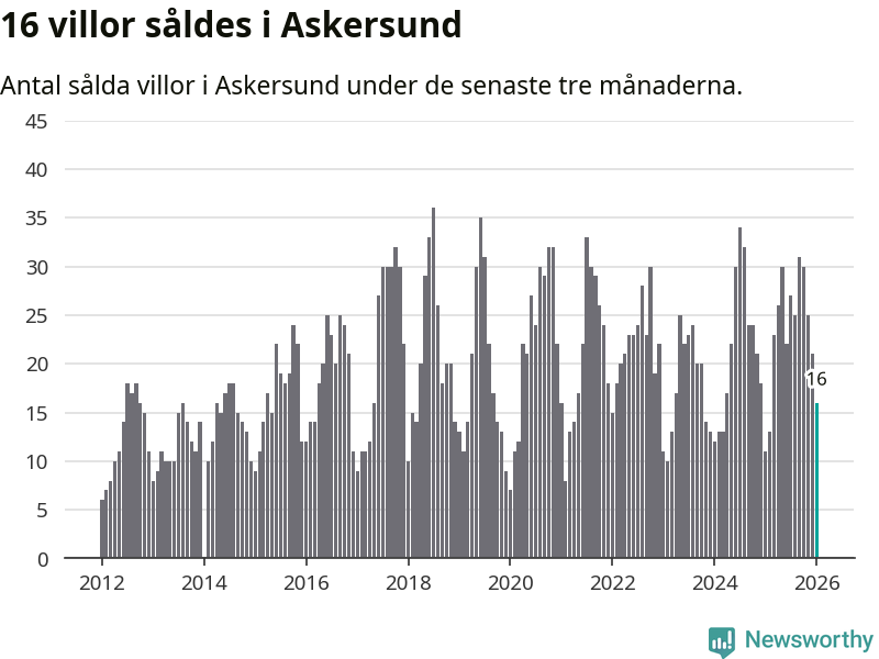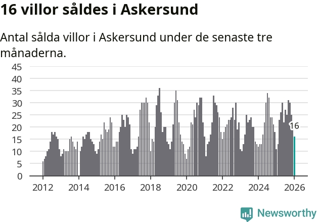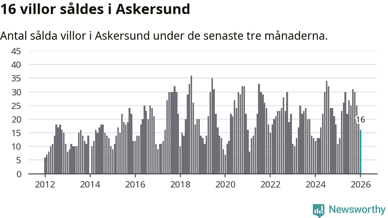 Mellan november och januari gjordes sammanlagt 16 affärer med villor i Askersunds kommun. Det kan jämföras med elva vid motsvarande tid i fjol.