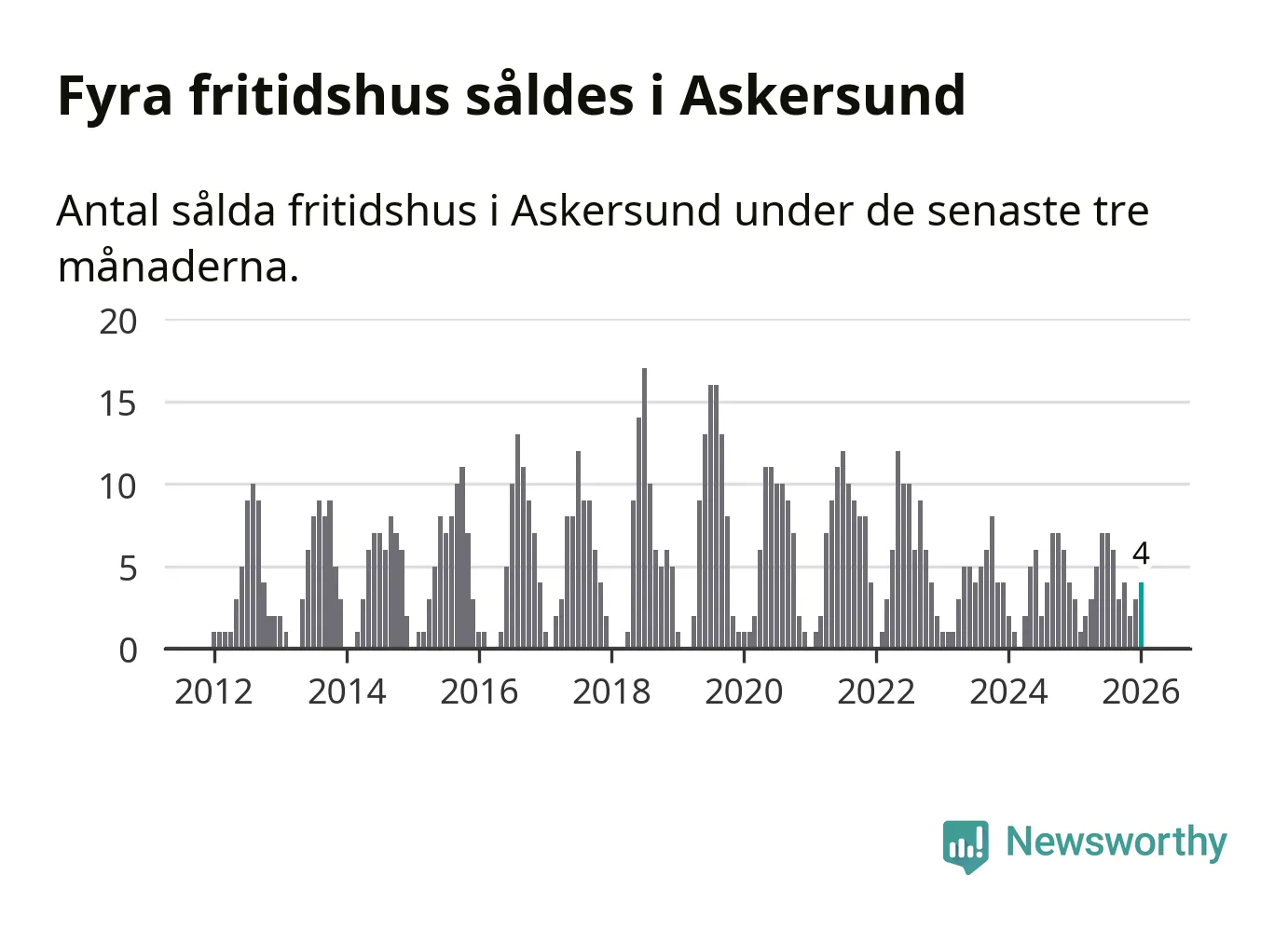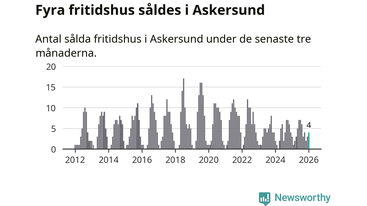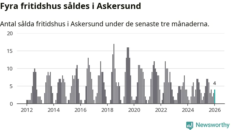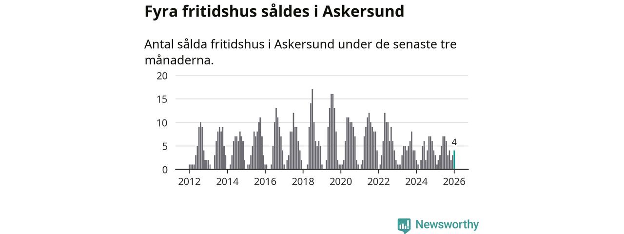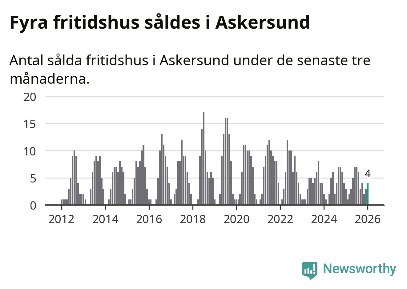 Mellan november och januari gjordes sammanlagt fyra affärer med fritidshus i Askersunds kommun. Det kan jämföras med tre vid motsvarande tid i fjol.