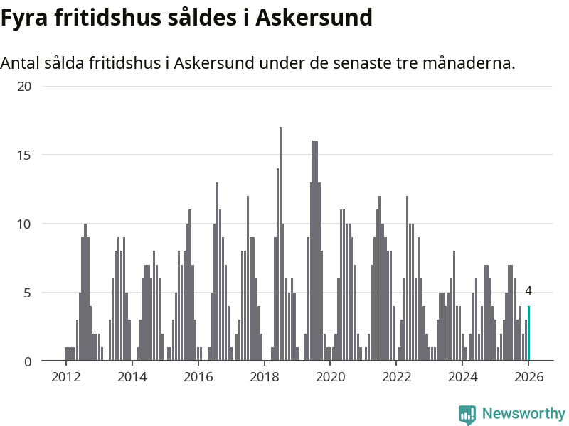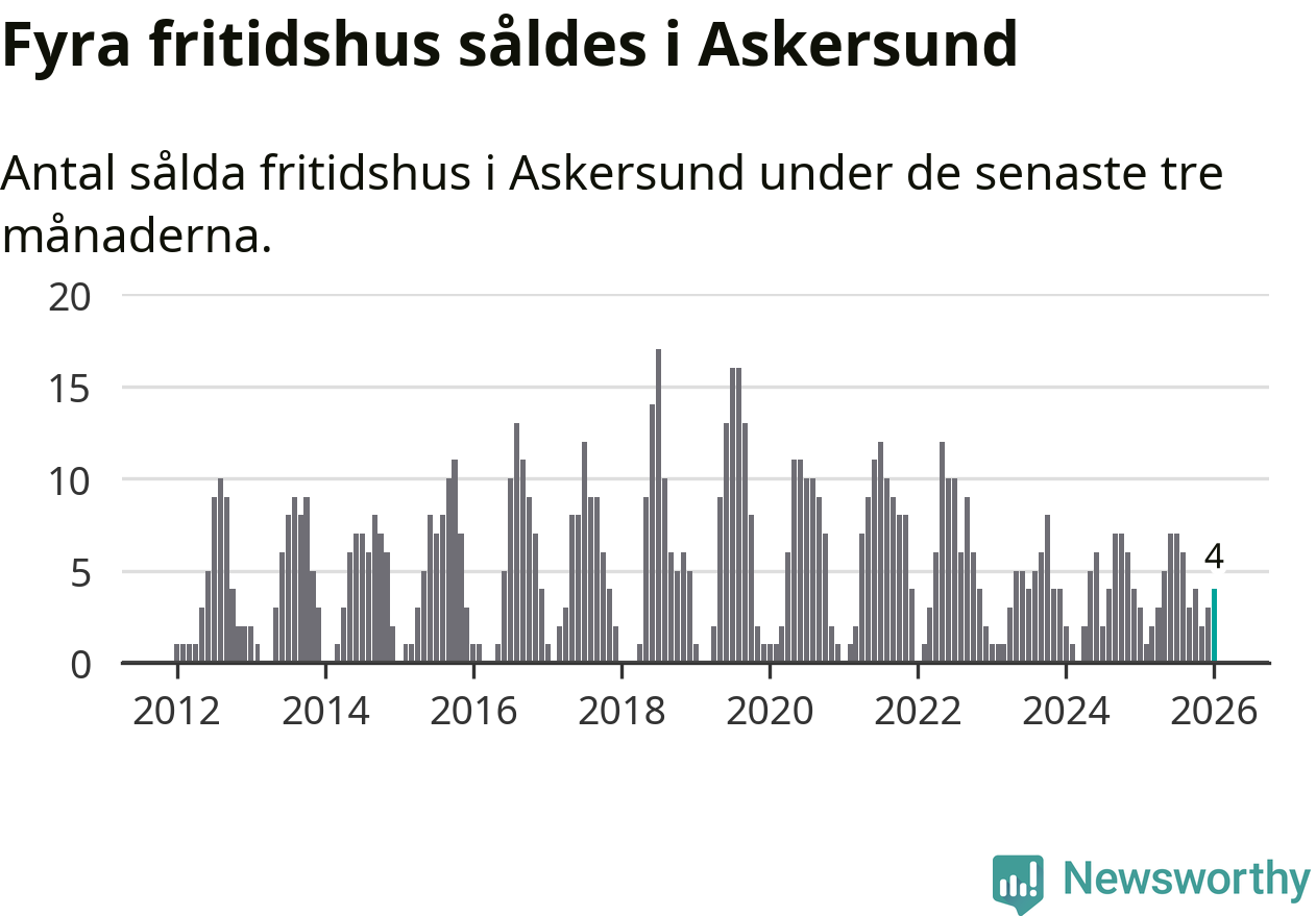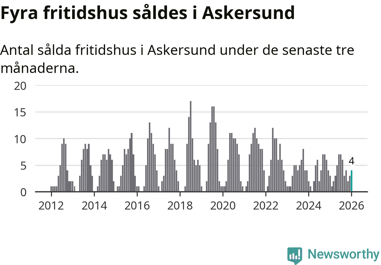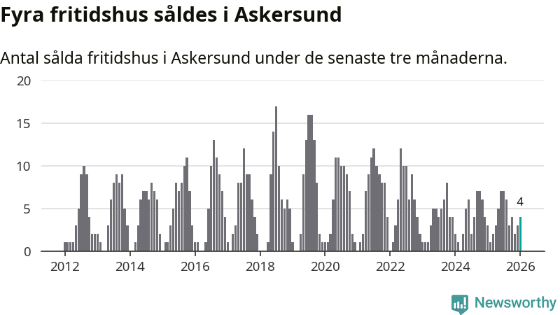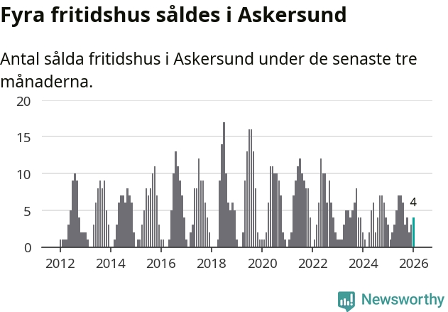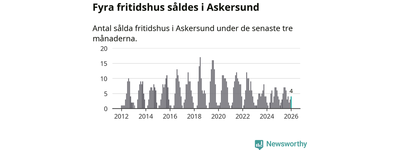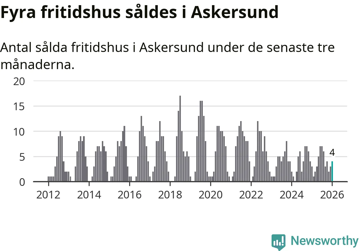 Mellan november och januari gjordes sammanlagt fyra affärer med fritidshus i Askersunds kommun. Det kan jämföras med tre vid motsvarande tid i fjol.