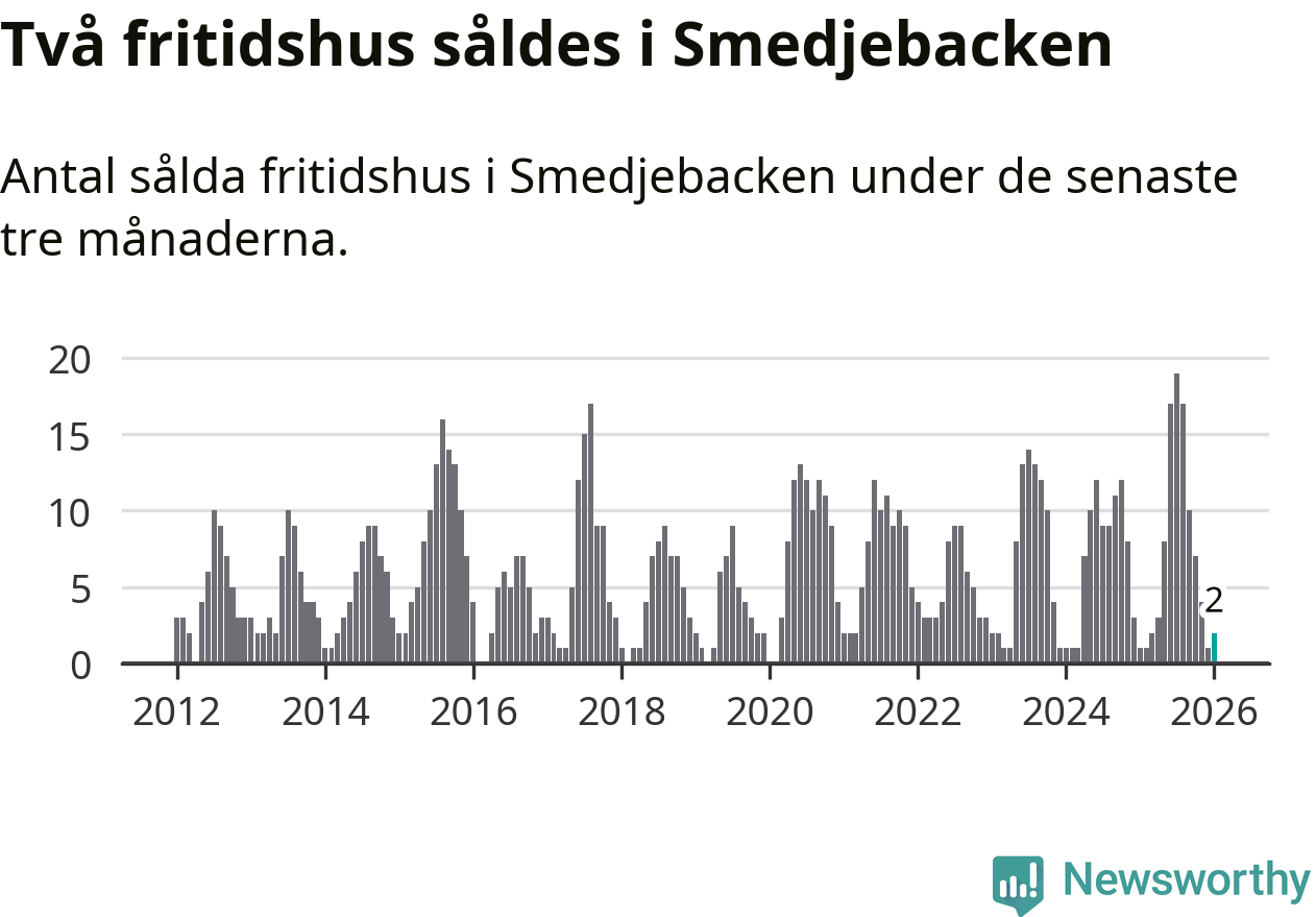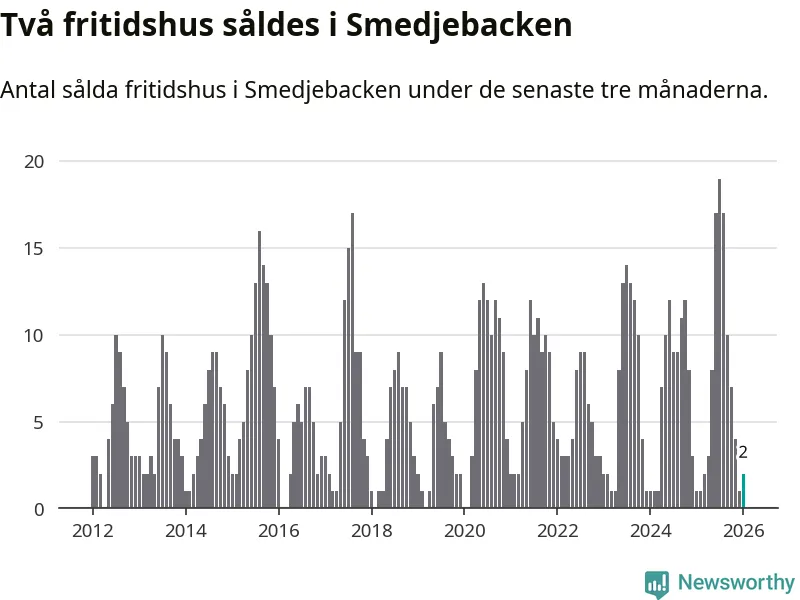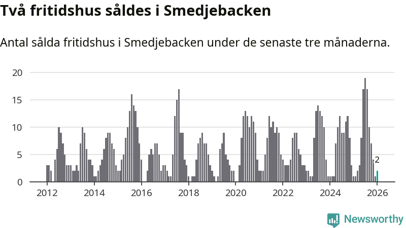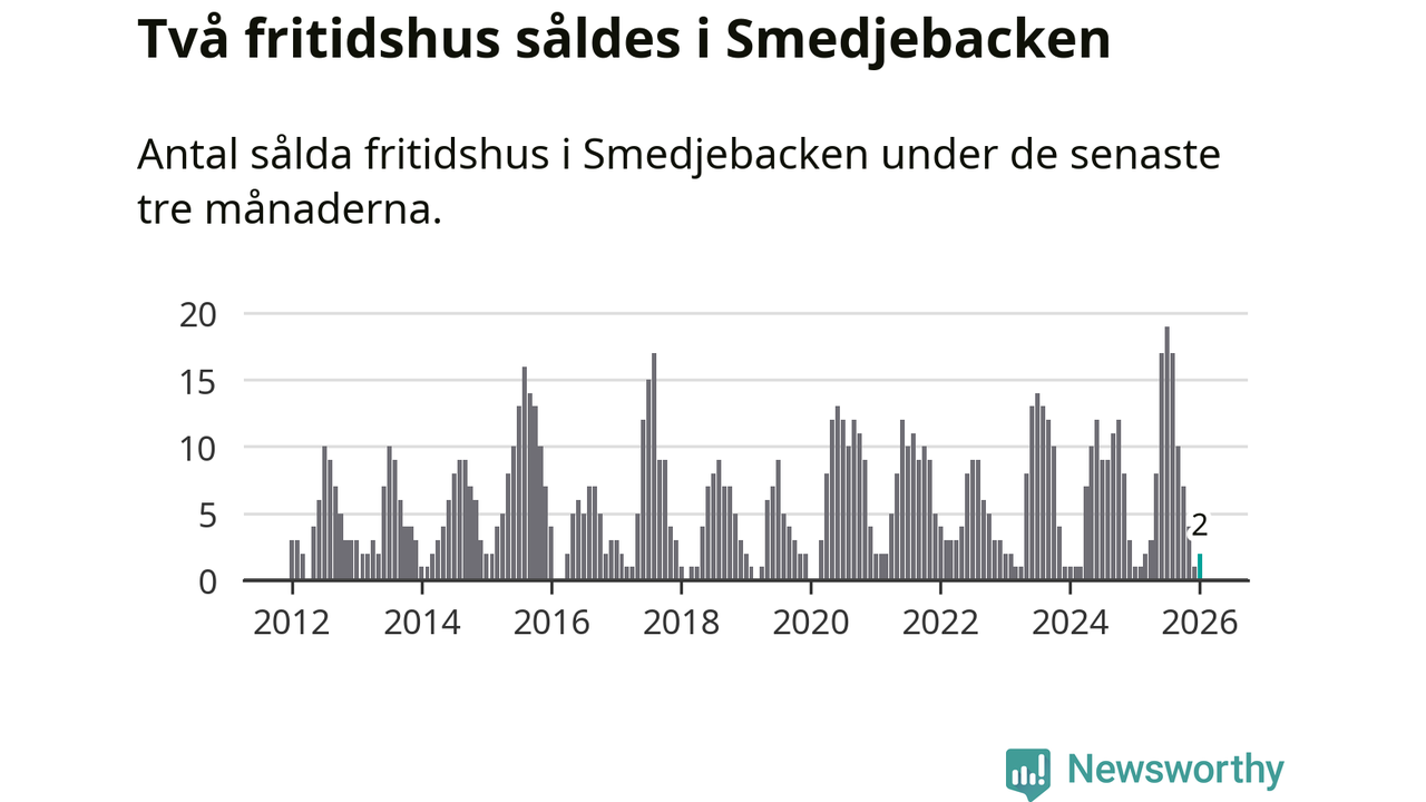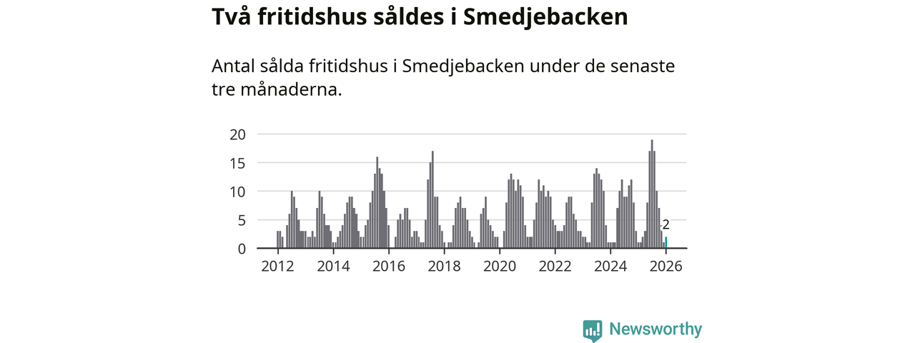 Mellan november och januari gjordes sammanlagt två affärer med fritidshus i Smedjebackens kommun. Det kan jämföras med ett vid motsvarande tid i fjol.