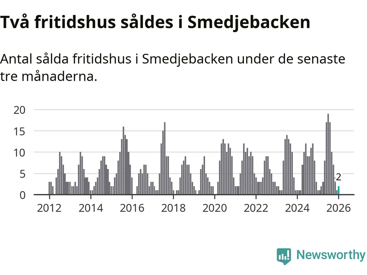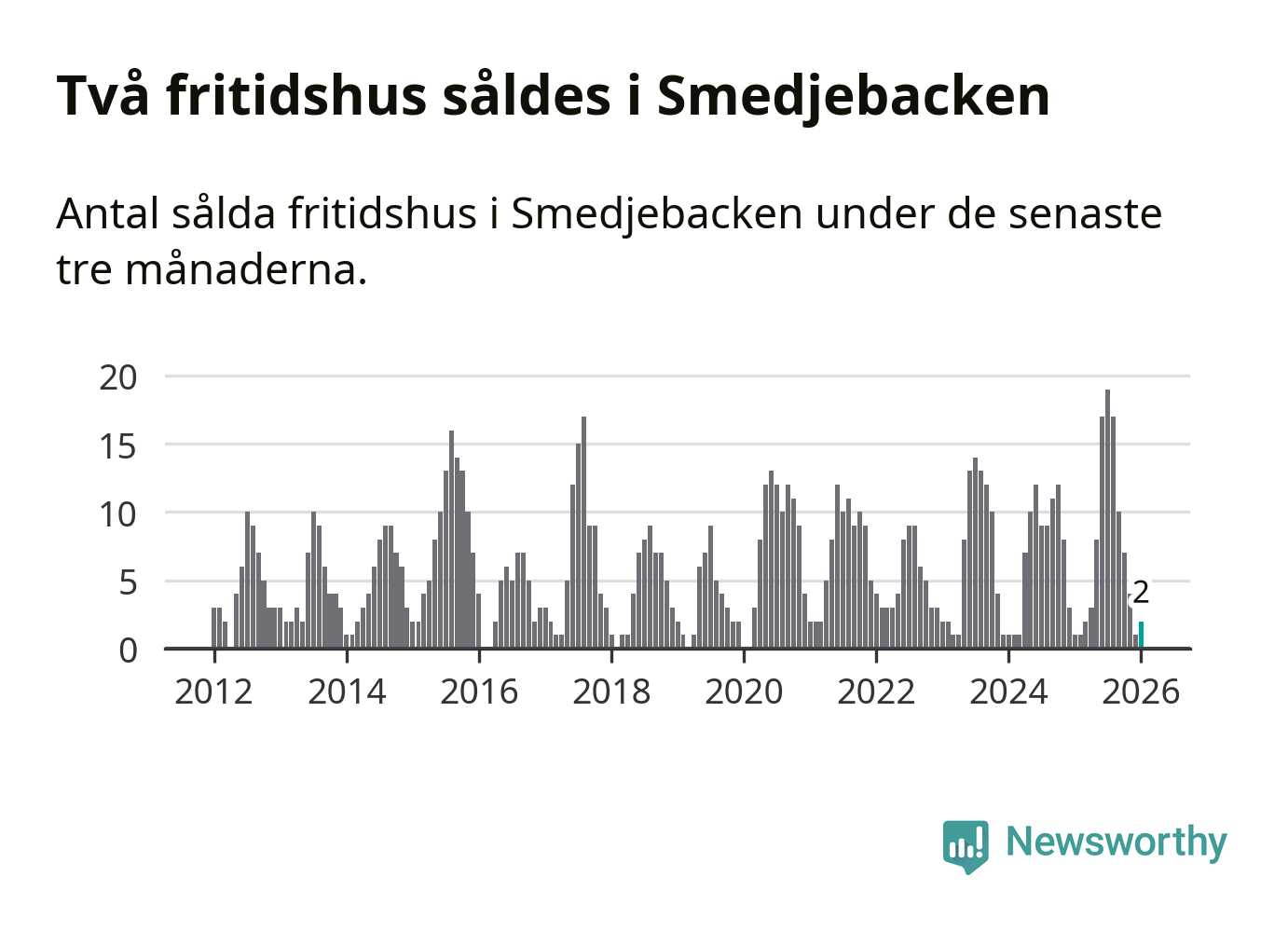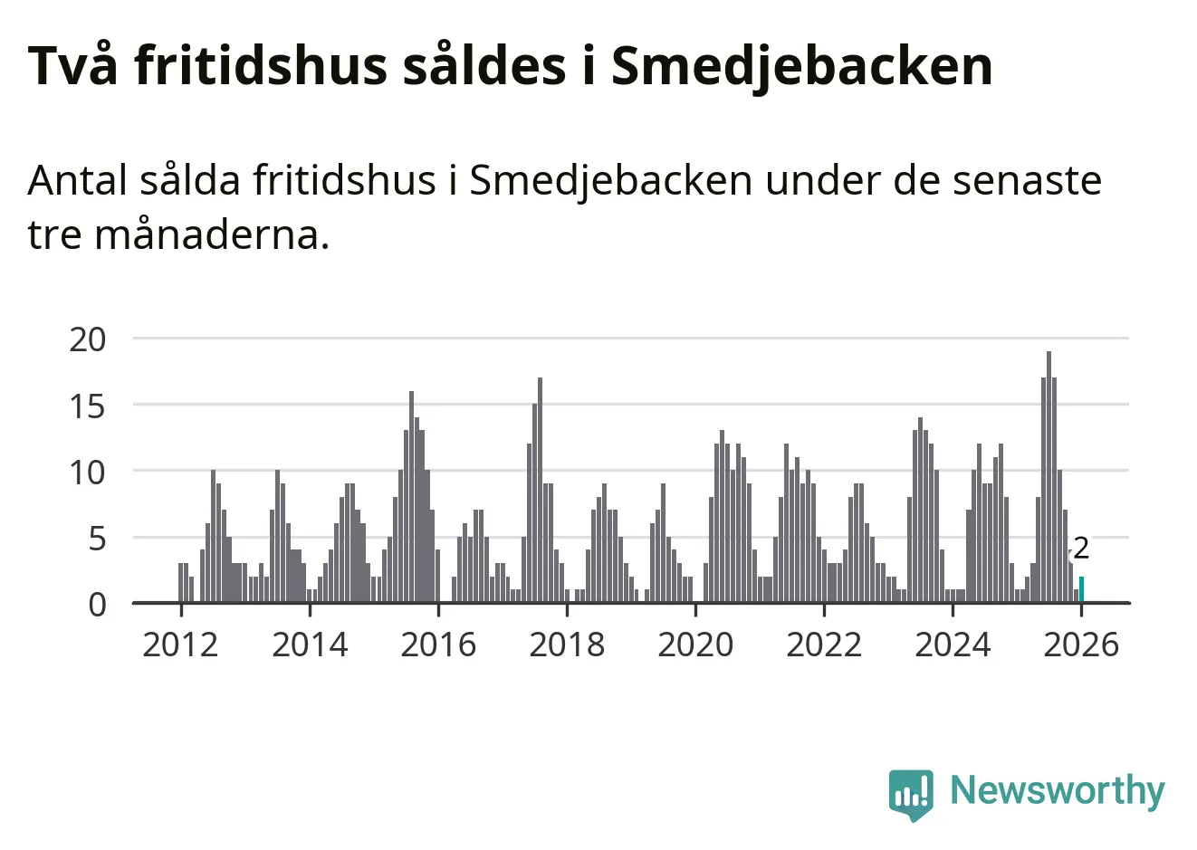 Mellan november och januari gjordes sammanlagt två affärer med fritidshus i Smedjebackens kommun. Det kan jämföras med ett vid motsvarande tid i fjol.