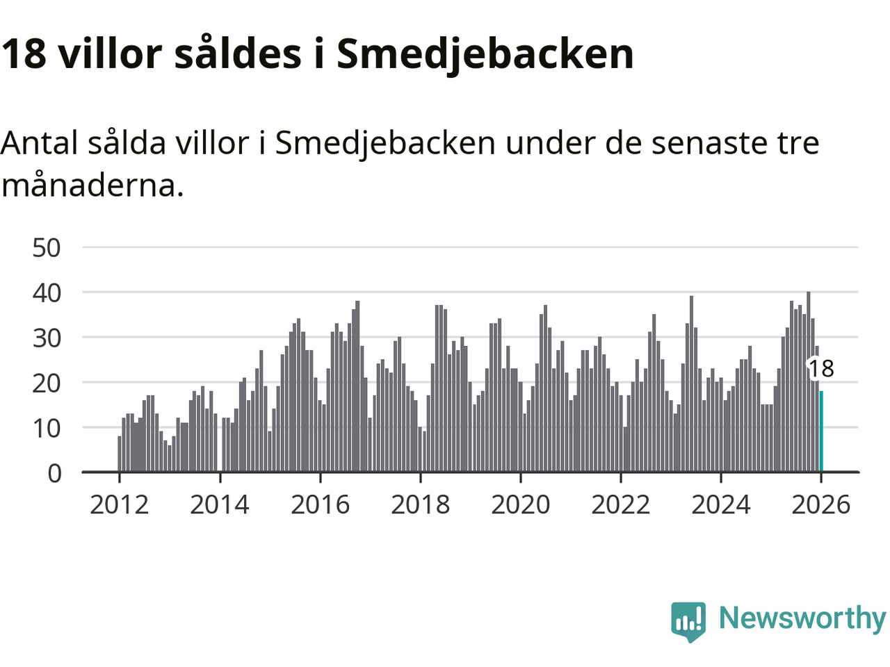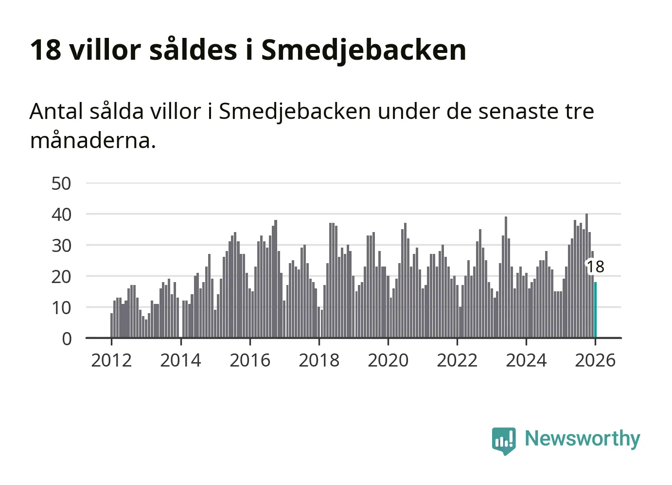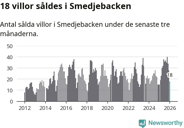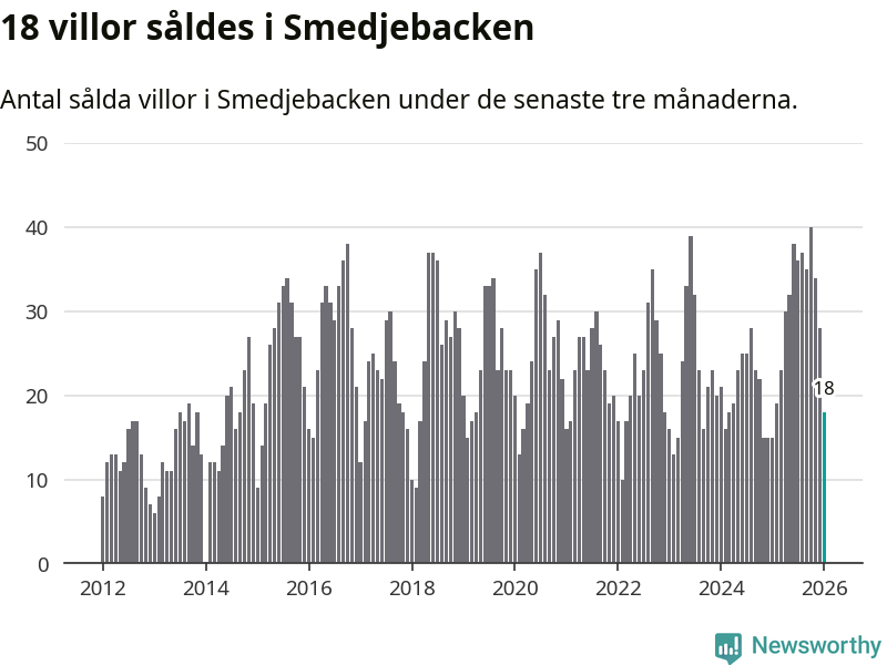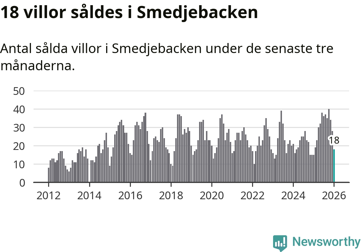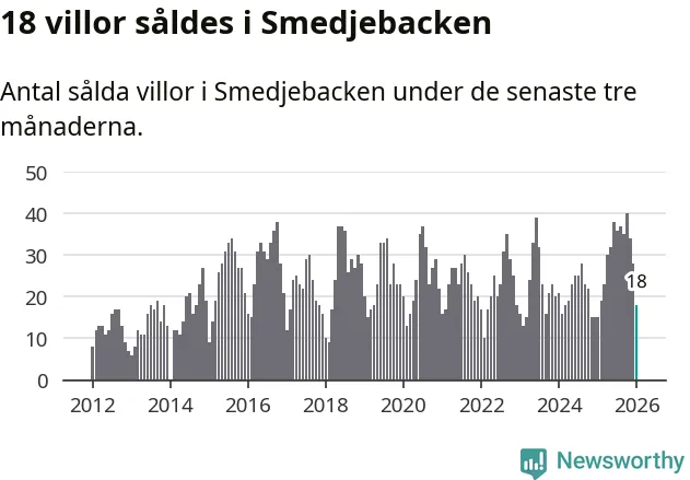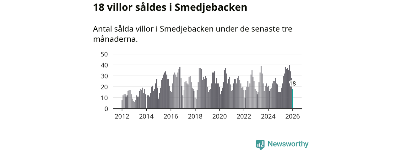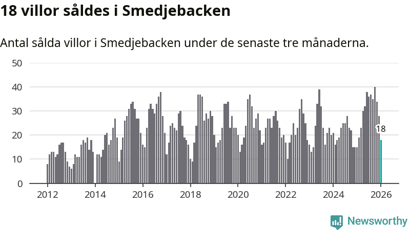 Mellan november och januari gjordes sammanlagt 18 affärer med villor i Smedjebackens kommun. Det kan jämföras med 15 vid motsvarande tid i fjol.