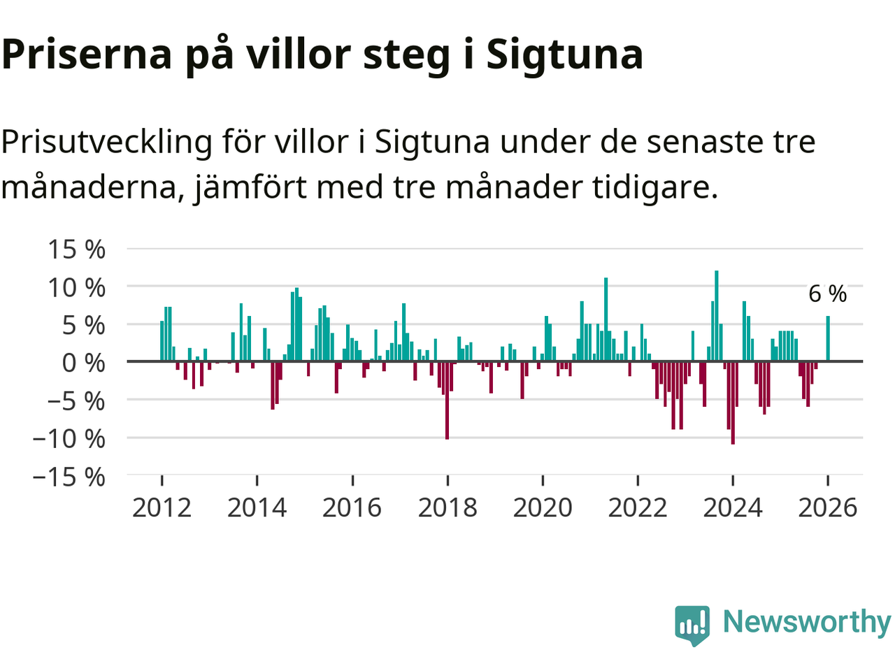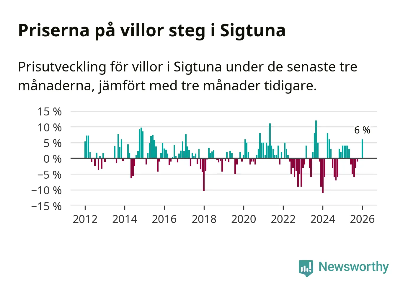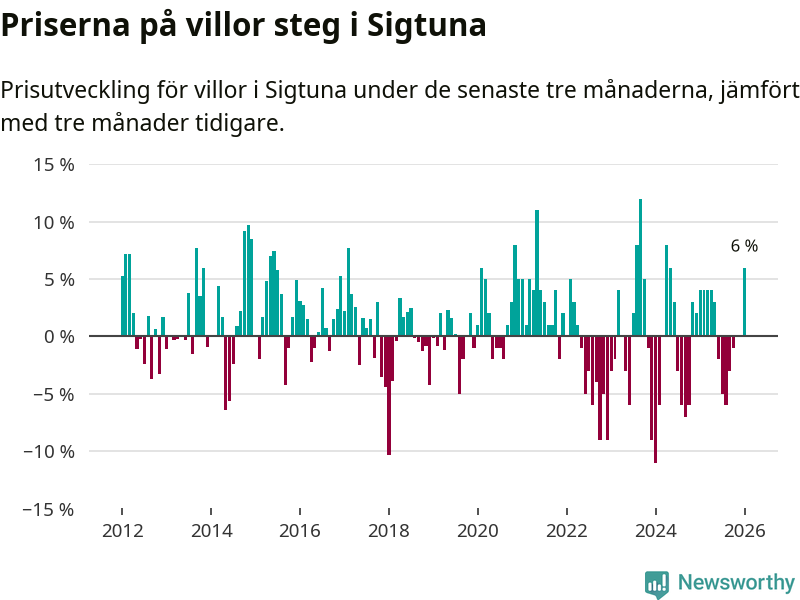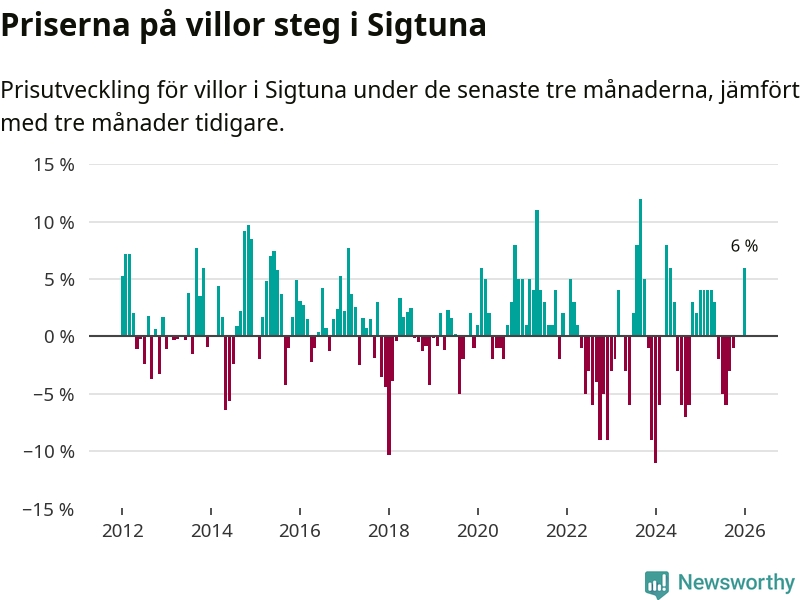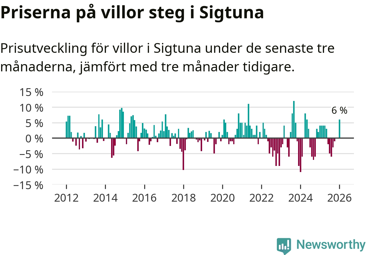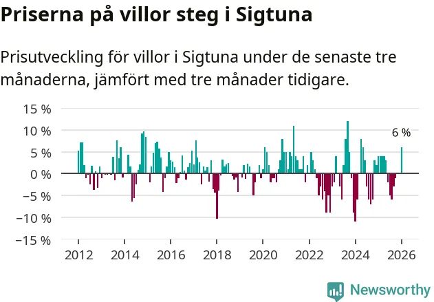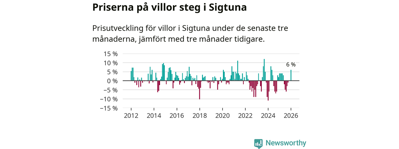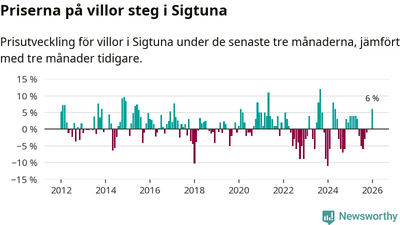 Villapriserna steg mellan november och januari med 6 procent i Sigtuna kommun. Det är en betydande uppgång jämfört med det gångna året då priserna i snitt stått stilla.